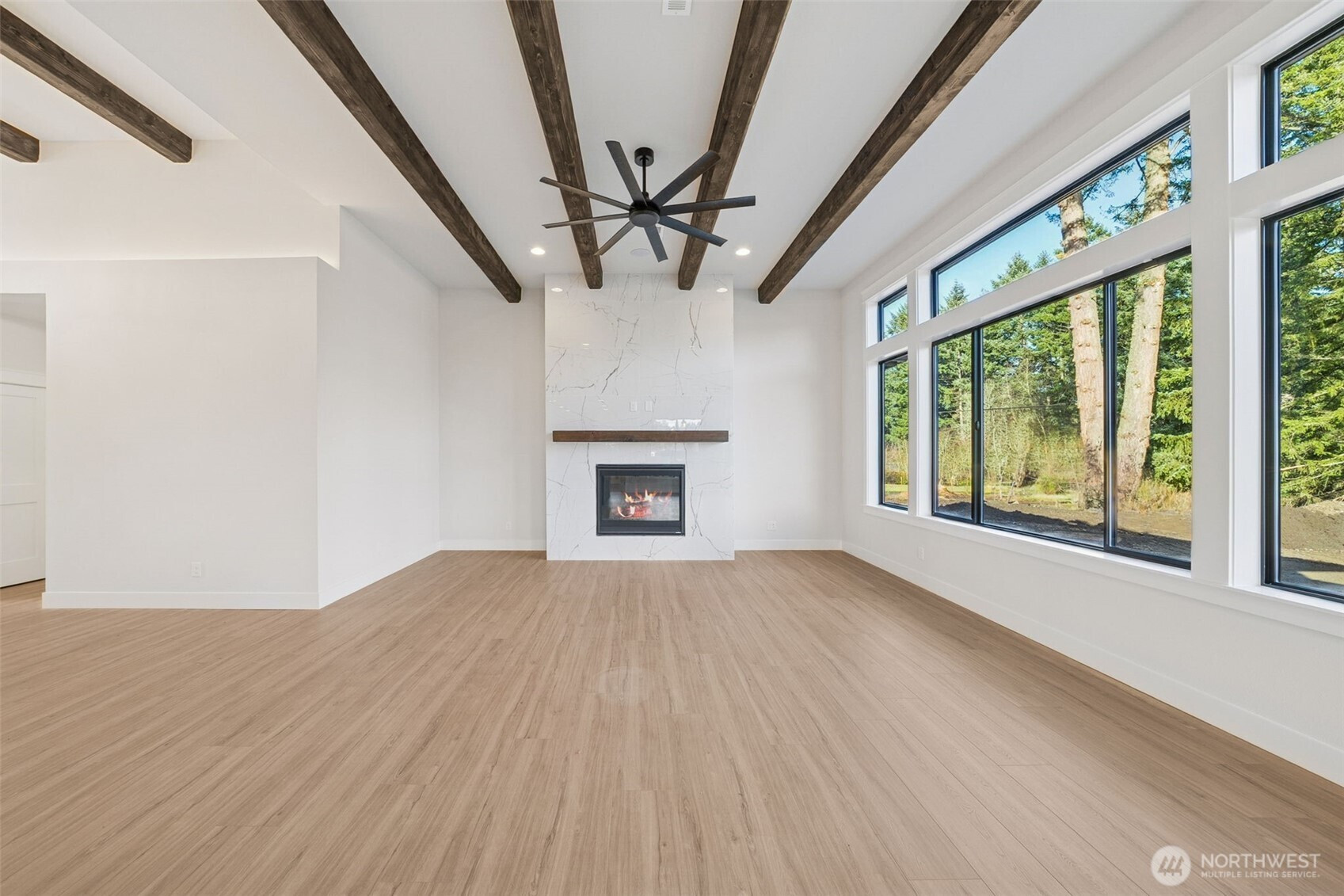 Built by Stennes Homes.. This spectacular PRESALE custom home on 2.07 Acres modern upgrades throughout! Grand entry, chandelier, & custom walls! Open living W/gas FP ft. tile surround W/Doug Fir mantle & dbl slider to patio! 10ft ceilings on main and exposed 8x8 Cedar beams! Chef’s kitchen W/quartz counters, full height back splash, Boxwood cabinets in Charcol W/42” uppers & Crown Molding, SS appliances including Forno 36” gas range! Primary W/vaulted ceiling, HUGE WI closet & spa-like bath W/quartz counters, free standing soaker tub, & floor to ceiling shower! 3 addtl bdrms & full bth w/dual sink vanity! Sonos sound syst. Back patio with gas firepit! Detached 1,584 Sq Ft shop!