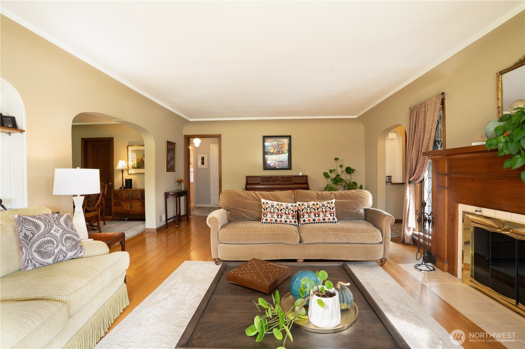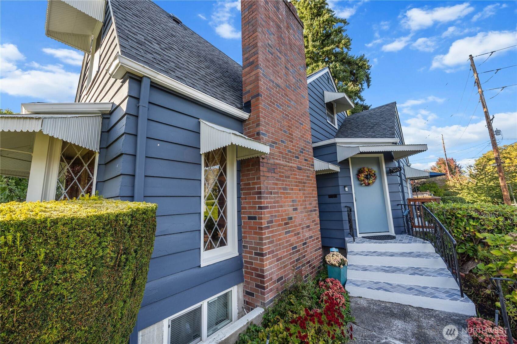 Discover timeless elegance in the heart of the Proctor District! This 3,436 sq ft home blends classic charm, mahogany woodwork, hardwood floors, leaded glass windows, coves & arches, with modern upgrades, including smart home features. With 5+ bedrooms, 2.75 baths, a 2 car garage, & 3 fully finished levels, there's space for all. The 950 sq ft lower-level offers a private entrance, living & dining rooms, a sweet sleep spot, fireplace, & ¾ bath—ideal for primary suite, multi-generational living, or income potential. 2 beds & full bath on main floor. The large patio is perfect for alfresco dining & entertaining w/ views of Mt. Rainier. Walk to the Farmer's Market or to Old Town & the waterfront. A rare gem in a perfect location! Welcome.