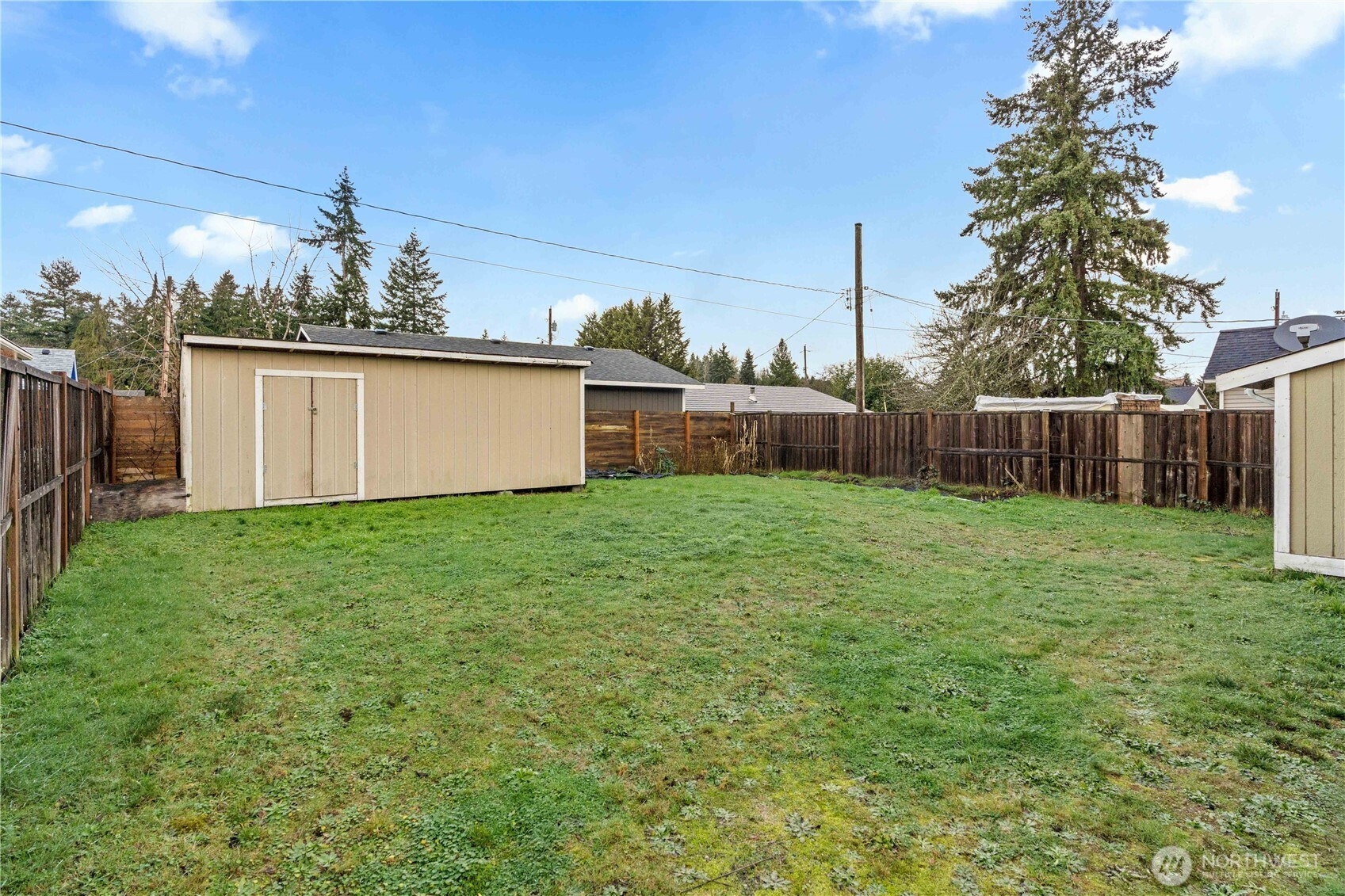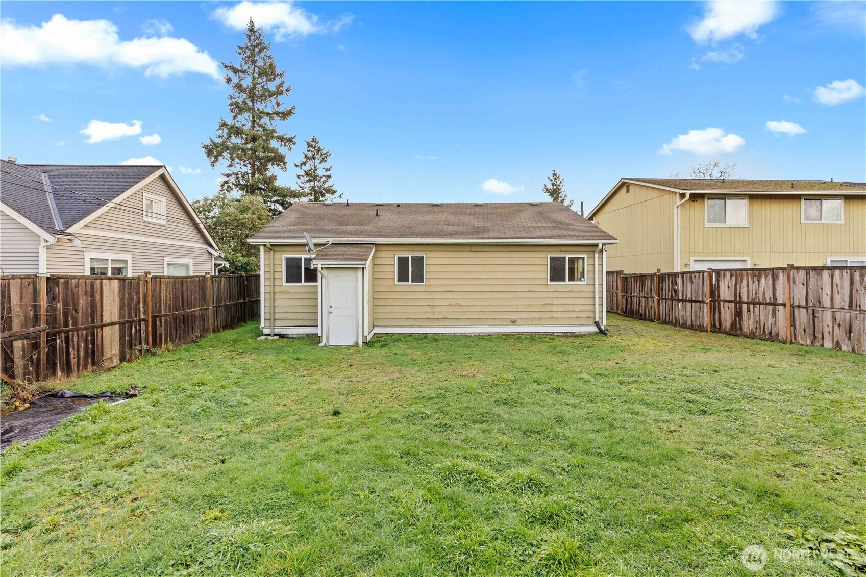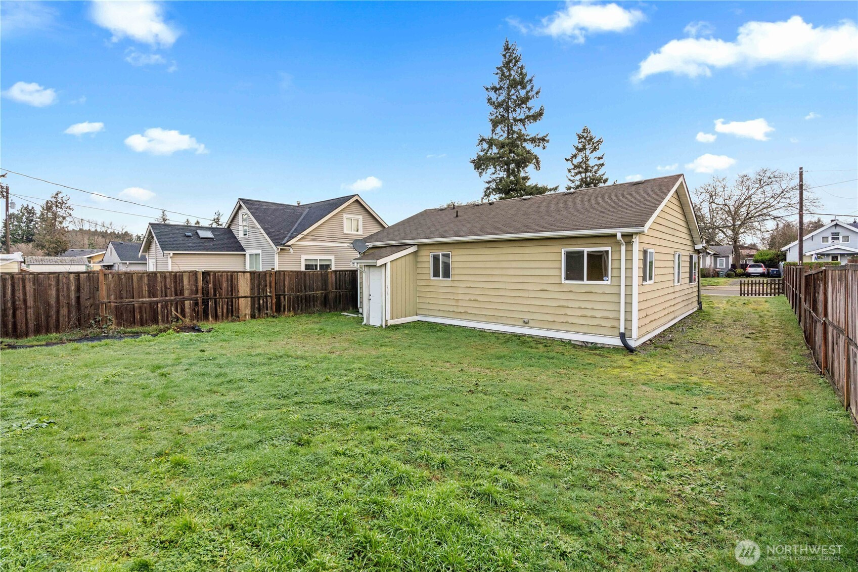 Welcome to this thoughtfully laid out home offering flexibility, space, and convenience. The main level features three bedrooms and a full bathroom, along with a welcoming living room that flows into a spacious kitchen. Downstairs, enjoy a large open area with a ¾ bath and a separate entrance, ideal for a guest space, home office, or extended living flexibility. The fully fenced yard provides added privacy, and there is room for RV parking. Home has energy efficient windows and low maintenance siding. Conveniently located near dining options, major commuter routes, and public transportation.