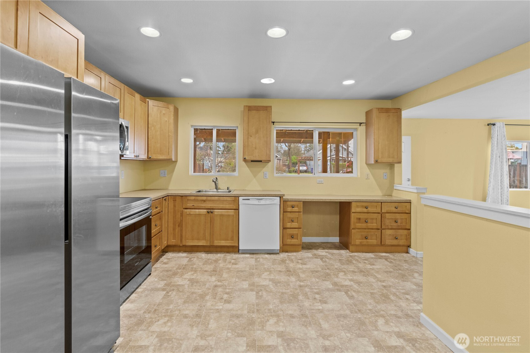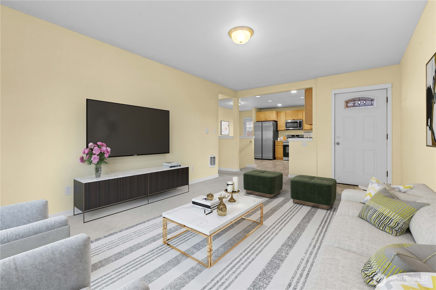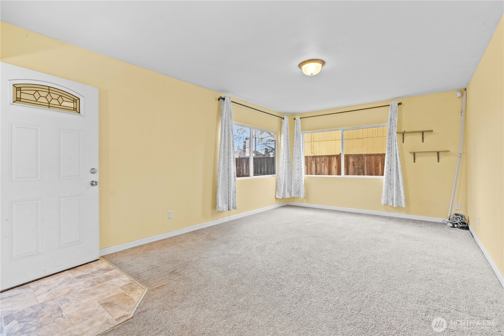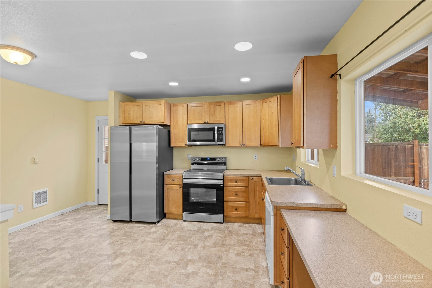 Welcome to this thoughtfully laid out home offering flexibility, space, and convenience. The main level features three bedrooms and a full bathroom, along with a welcoming living room that flows into a spacious kitchen. Downstairs, enjoy a large open area with a ¾ bath and a separate entrance, ideal for a guest space, home office, or extended living flexibility. The fully fenced yard provides added privacy, and there is room for RV parking. Home has energy efficient windows and low maintenance siding. Conveniently located near dining options, major commuter routes, and public transportation.