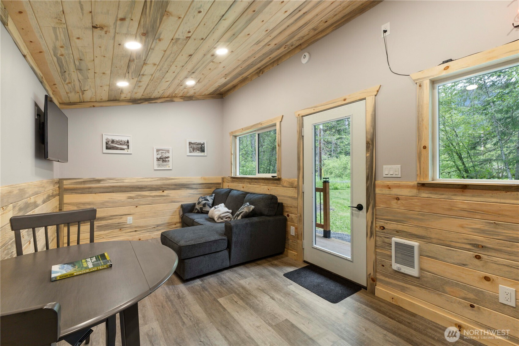 Great Vacation Rental Spot w/ 2 RV spots plus a brand new mini Cabin on a quiet lot in Alpine Village. This Building lot is ready to build primary residents with the brand new septic design and home plans. Free custom plans included for 840sf 2 bed & 1 bath or design your own. Being just 5 minutes from Mt Rainier Park entrance and short couple minute walk to the Nisqually River you are in a great LOCATION to build. Currently the lot includes this function mini cabin features blue pine tongue & grove wood ceilings & walls, premium vinyl plank flooring, charcoal color real wood cabinets w/ self closing hinges, SS Fridge & Microwave, white quartz countertops, exterior cedar trim and a dark natural color paint to fit the trees & mountain look. Brand new Hot tub w/ warranty. We have rented RV lots on Hipcamp in the past for income producing rental and had it for $40-50 per RV space a night. Cabin comes Fully Furnished never used all brand new. The firepit is ready for smores just throw some split dry firewood on the firepit and enjoy today. Come see it today! Ready for you to build your own primary home or custom cabin design included with sale! You could also just add a bathroom to the current cabin or bring your RV up ere and enjoy. Lots of options here in this fast-growing area of Ashford! Owner Financing possible with a large down payment.