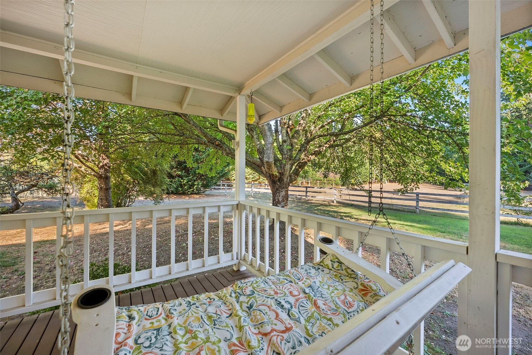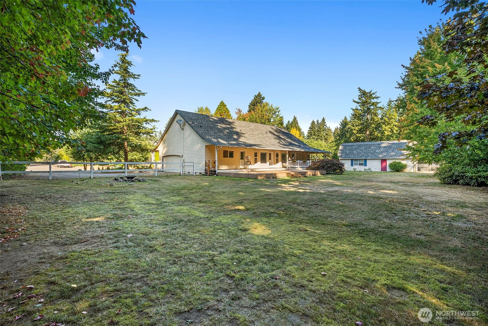Welcome to the gated, equestrian neighborhood of Whitewater Estates! This beautifully maintained 3-bedroom, 2.5-bath home that sits on 1.86 acres, with a 2-car garage has it all. The expansive primary suite boasts a 5-piece bath and walk-in closet, while the thoughtful floor plan offers comfort and flow. This home also features A/C to keep you cool during those warm summer days. Outdoor living is unmatched—enjoy a ¾ wraparound porch, an oversized back deck overlooking the fully fenced yard, and yes… there’s even a barn!