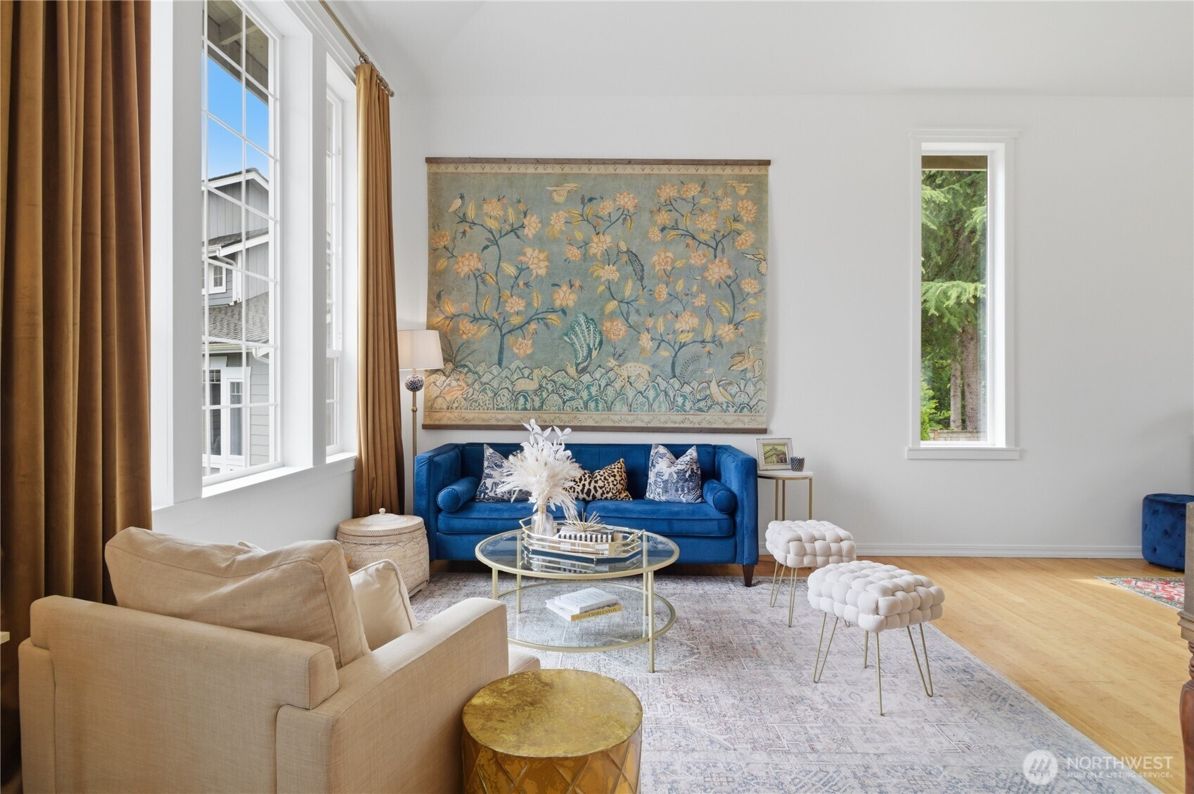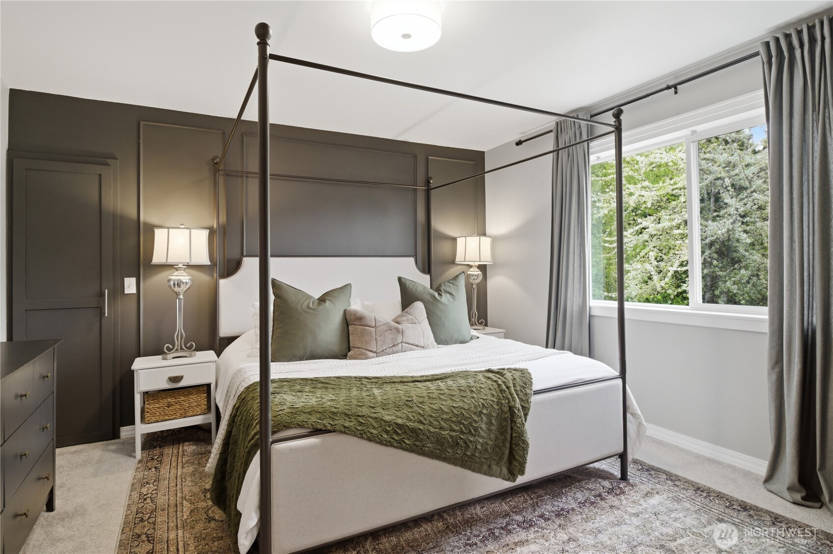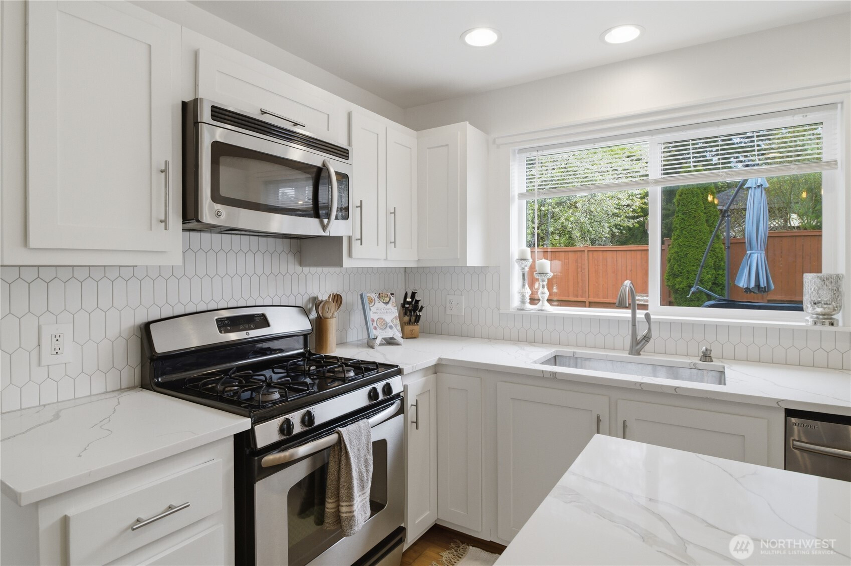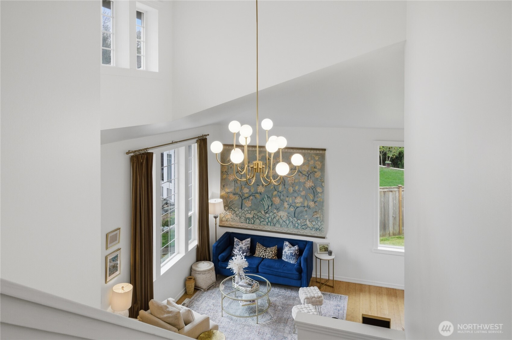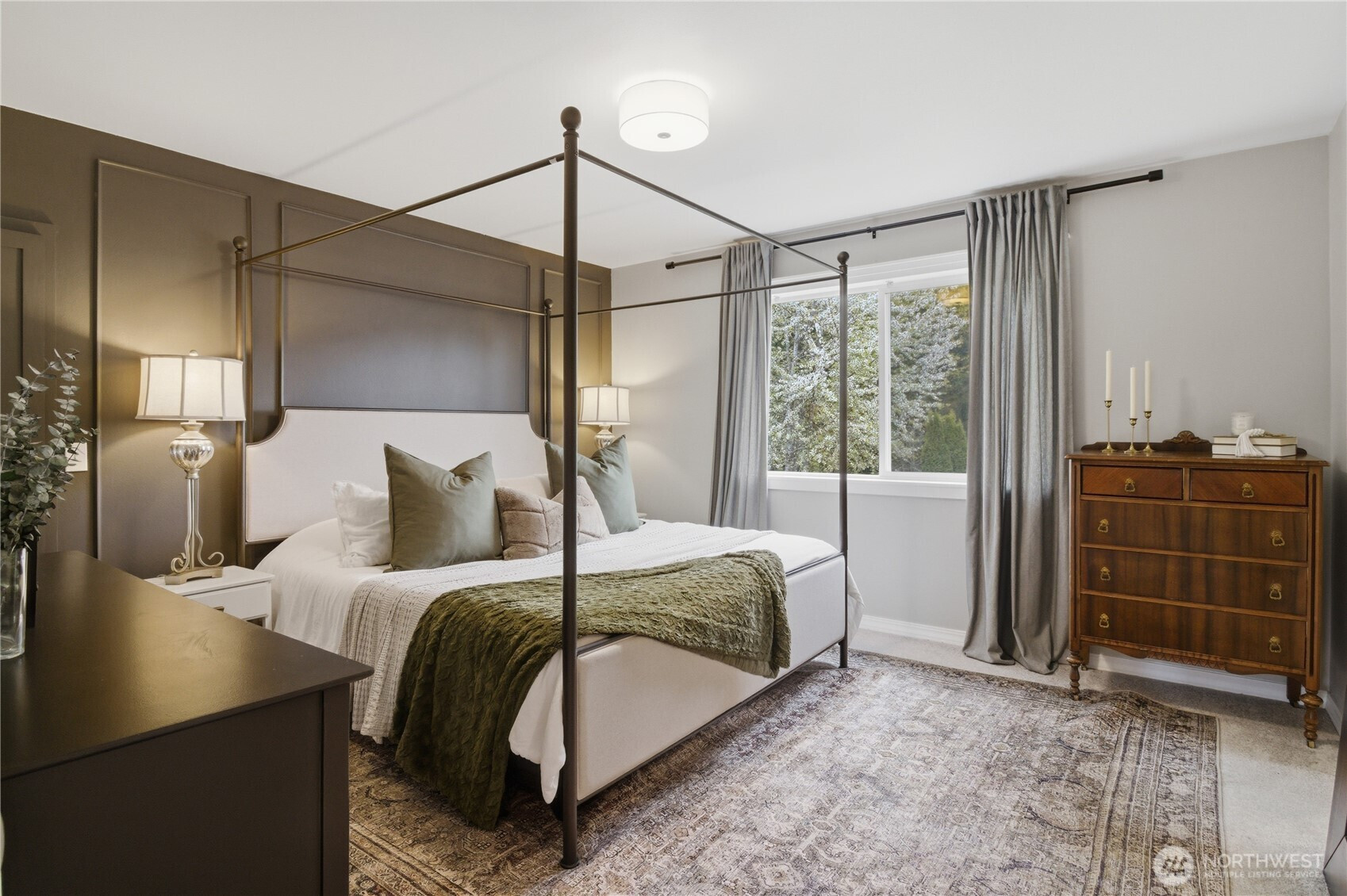 Perched above it all in sought-after Crystal Ridge, this 4-bedroom home offers an elevated lifestyle in every sense. Just shy of 2,000 sq ft, the design lives far beyond its size, defined by light, privacy, and beautifully curated finishes. Set on a quarter-acre cul-de-sac lot with lush greenbelt views, every inch has been thoughtfully updated. Soaring ceilings and dramatic windows fill the home with natural light, highlighting bamboo floors, statement lighting, and high-end details throughout. The kitchen stuns with quartz counters, custom backsplash, gas range, and pendant lighting. Cozy family room with wood-burning fireplace, statement powder bath, main floor laundry, and garage with storage. Upstairs, a true primary retreat features an accent wall, hidden access to a large walk-in closet, second closet, and dual vanity ensuite. Three additional bedrooms, full bath, and a spacious landing complete the upper level. Expansive deck with pergola overlooks a lush backyard with new fencing, ideal for entertaining. New A/C in 2024. Minutes to Puyallup, Sumner, Sounder station, and JBLM- this is where lifestyle and design truly come together.