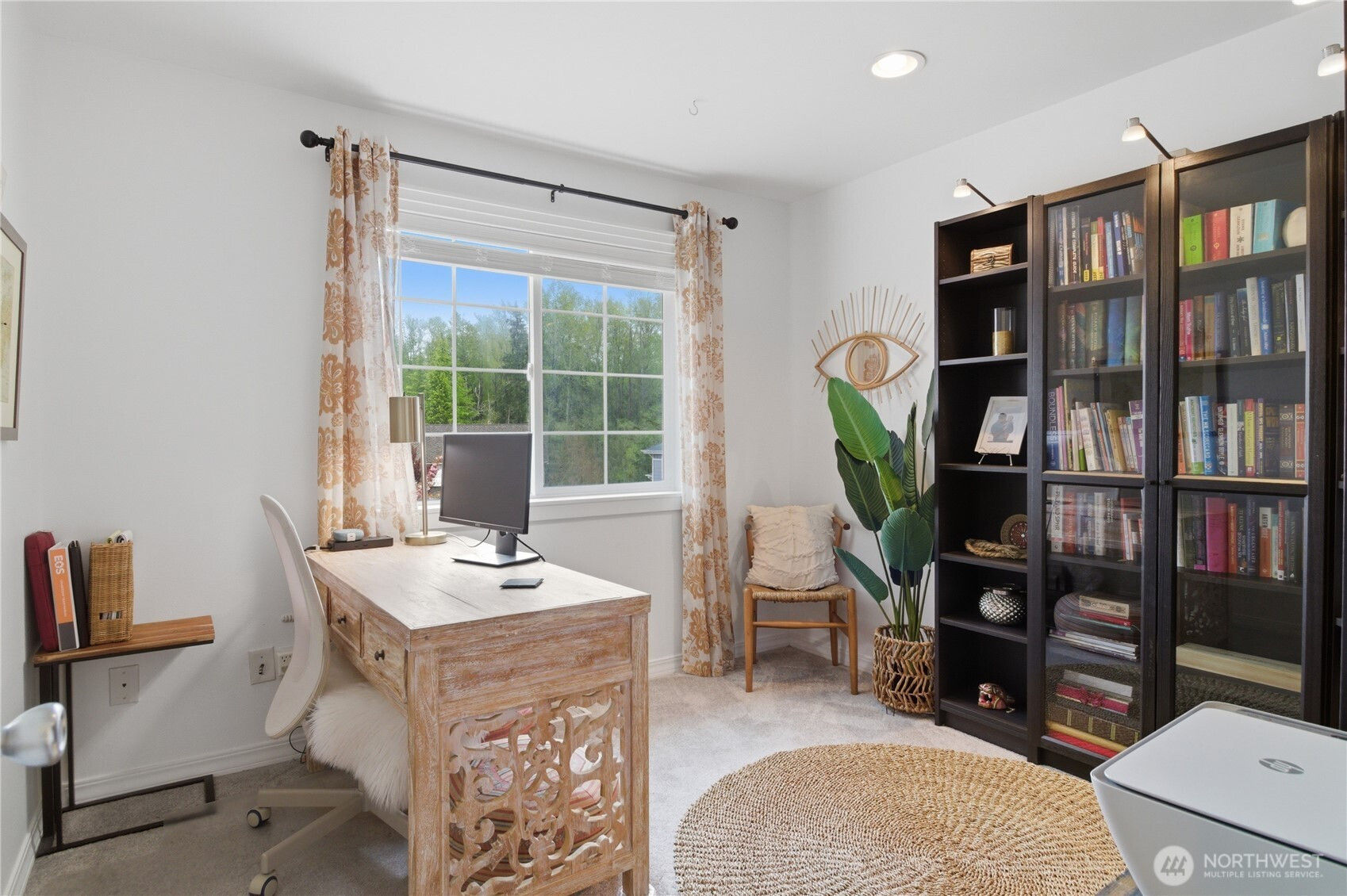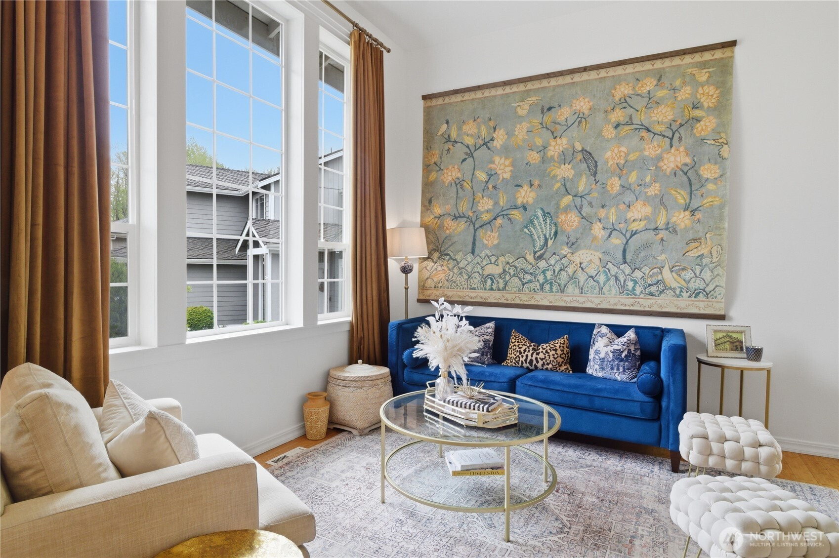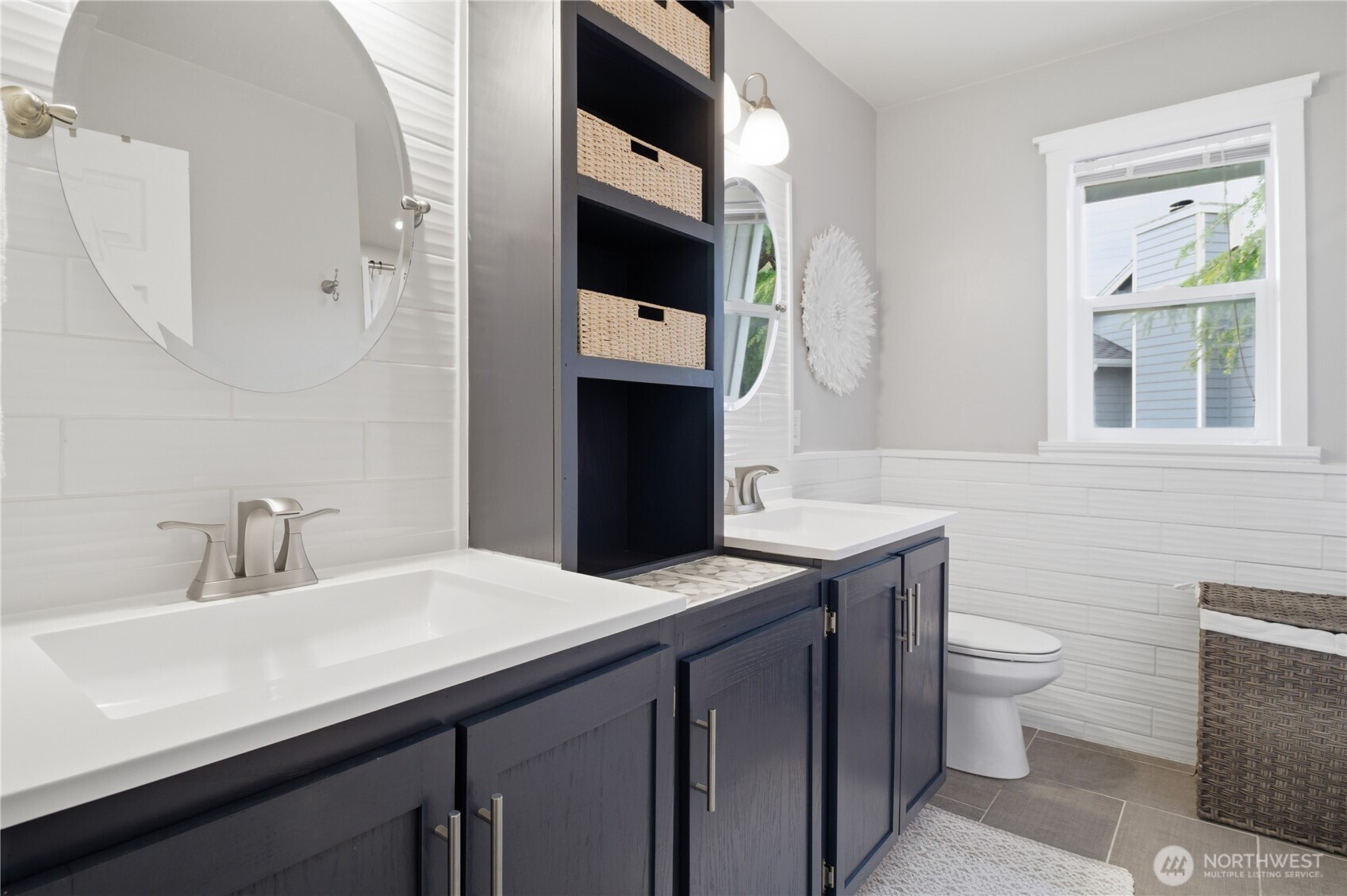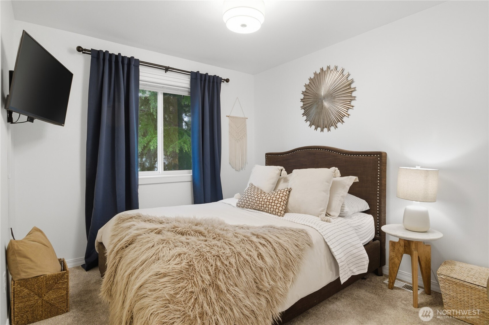 Perched above it all in sought-after Crystal Ridge, this 4-bedroom home offers an elevated lifestyle in every sense. Just shy of 2,000 sq ft, the design lives far beyond its size, defined by light, privacy, and beautifully curated finishes. Set on a quarter-acre cul-de-sac lot with lush greenbelt views, every inch has been thoughtfully updated. Soaring ceilings and dramatic windows fill the home with natural light, highlighting bamboo floors, statement lighting, and high-end details throughout. The kitchen stuns with quartz counters, custom backsplash, gas range, and pendant lighting. Cozy family room with wood-burning fireplace, statement powder bath, main floor laundry, and garage with storage. Upstairs, a true primary retreat features an accent wall, hidden access to a large walk-in closet, second closet, and dual vanity ensuite. Three additional bedrooms, full bath, and a spacious landing complete the upper level. Expansive deck with pergola overlooks a lush backyard with new fencing, ideal for entertaining. New A/C in 2024. Minutes to Puyallup, Sumner, Sounder station, and JBLM- this is where lifestyle and design truly come together.