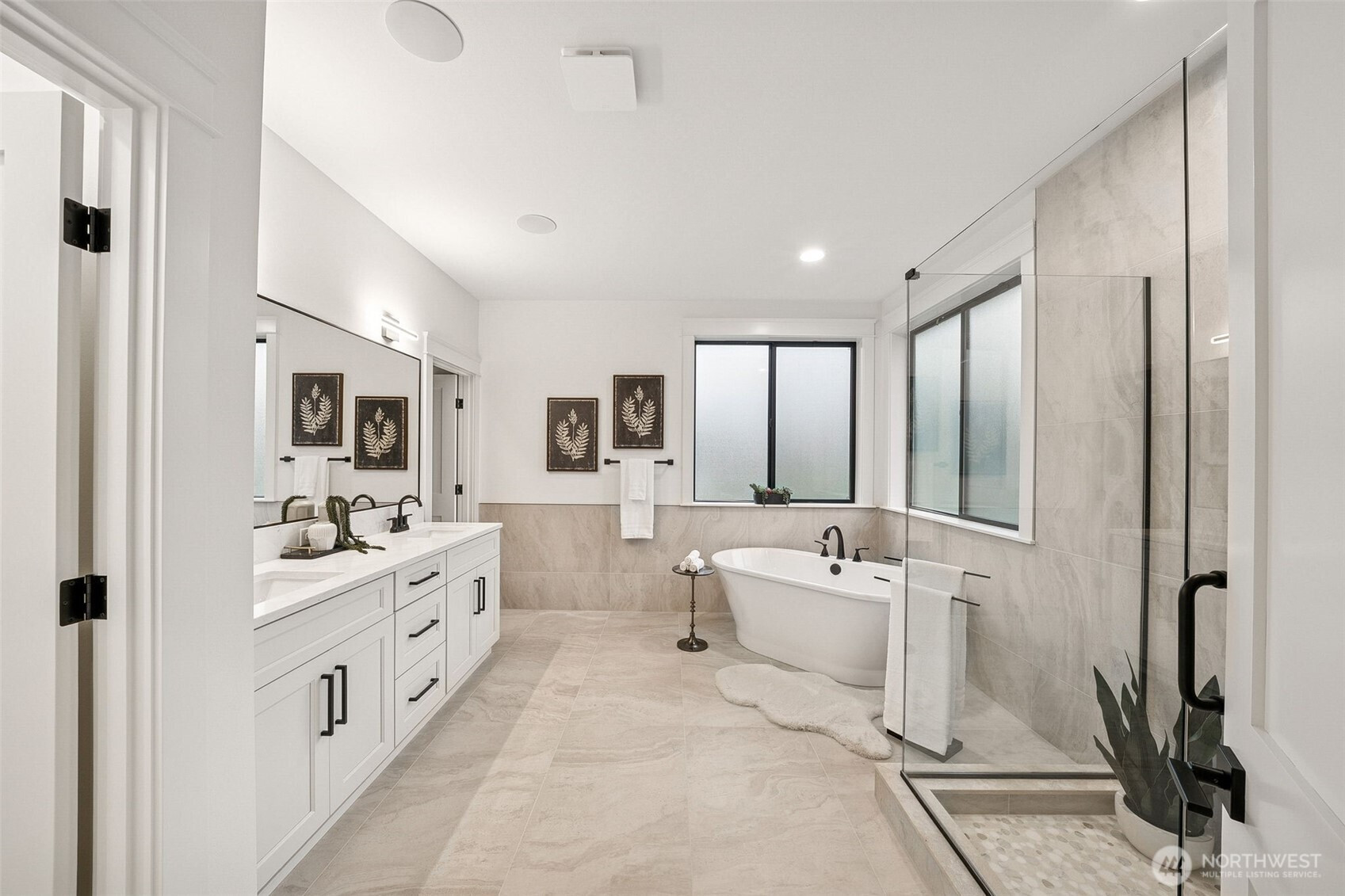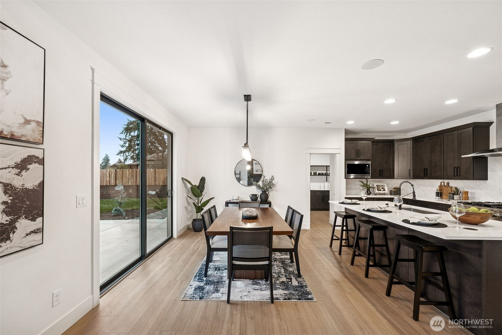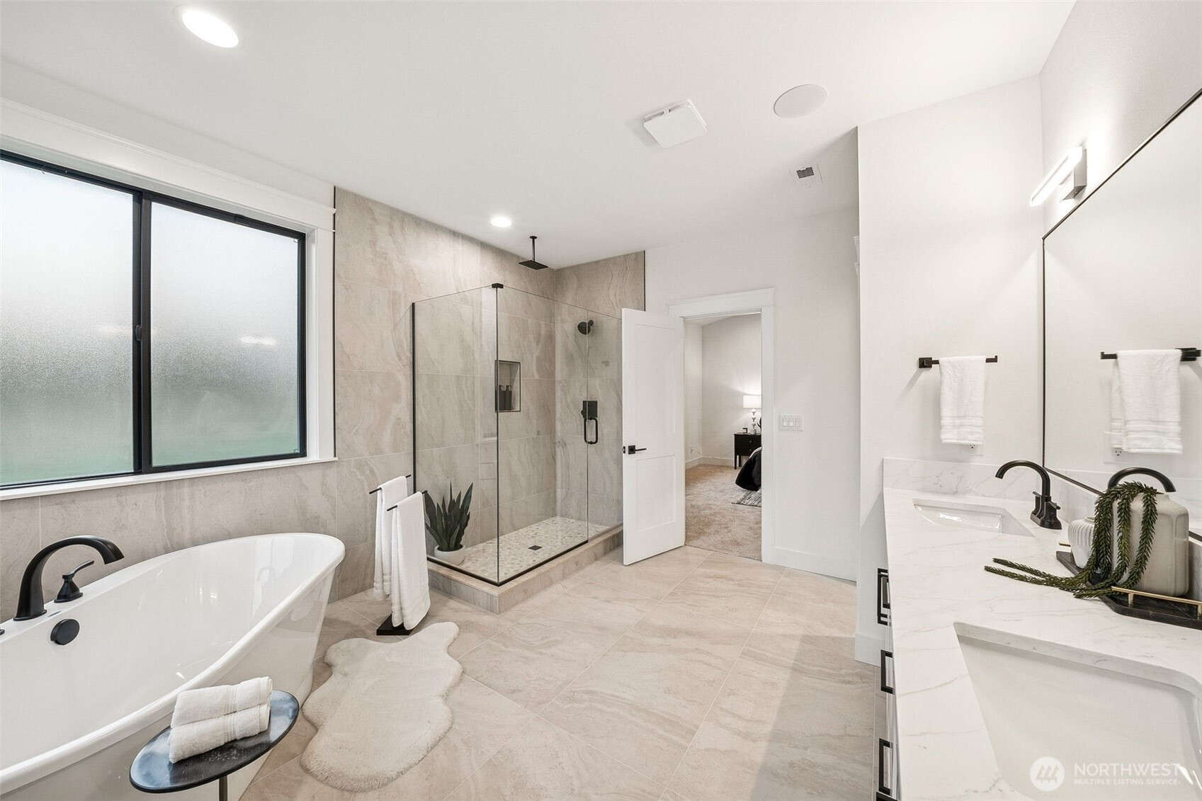 Exceptional new construction home featuring high-end finishes throughout. Step into a bright living room W/vaulted ceilings & stunning custom fireplace wrapped in floor-to-ceiling tile. The gourmet kitchen boasts quartz countertops, a solid full quartz backsplash, 36" Forno range, Frigidaire appliance package, & convenient pot filler. Interior wood-wrapped windows add warmth & craftsmanship, while the luxurious primary suite offers a relaxing spa-inspired bath W/quartz counters, a soaking tub, & beautifully tiled shower. 3 additional bedrooms & full guest bath. RV garage W/14' ceilings, Electric Car charger, & workspace/storage. Fully landscaped front/back + extended back patio complete W/a BBQ stub—ideal for entertaining year-round.