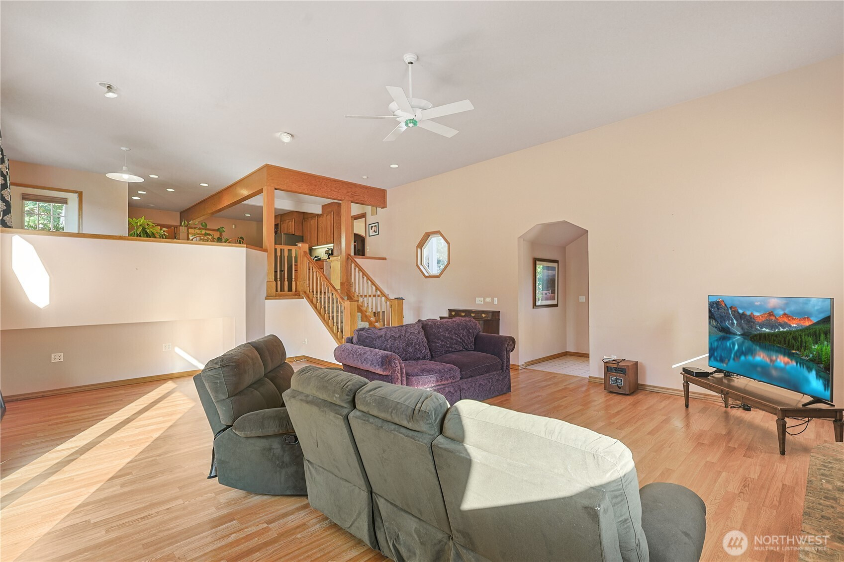 Beautiful 4,278 sq. ft. home on a private 1.09-acre lot with stunning Mt. Rainier views! Enjoy a sport court, outdoor fireplace, RV parking, and a 1,493 sq. ft. detached garage with a 684 sq. ft. apartment above—perfect for guests, income, or a home business. The main level features a spacious primary suite, open kitchen, laundry, and living areas with wide hallways for accessibility. Upstairs offers two bedrooms, while the finished basement adds a large flex space, additional room, and ample storage. A sweeping driveway and lush landscaping create a peaceful, park-like setting any gardener will love.
