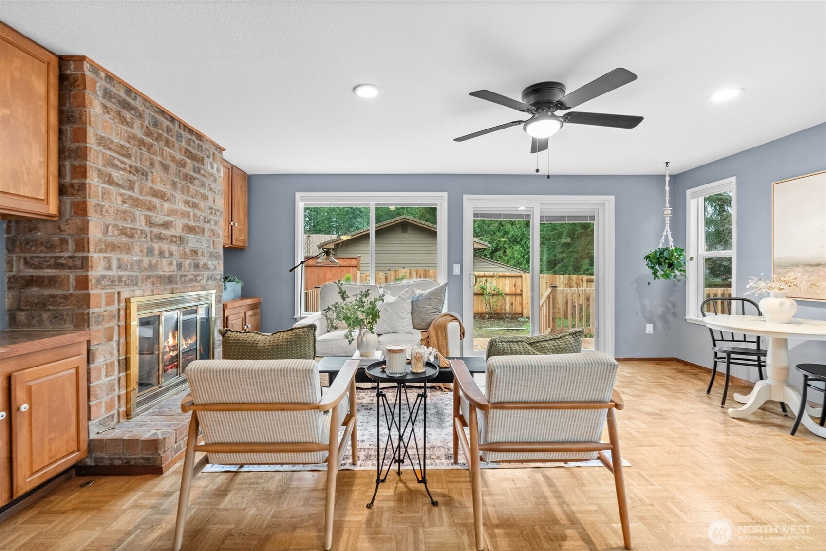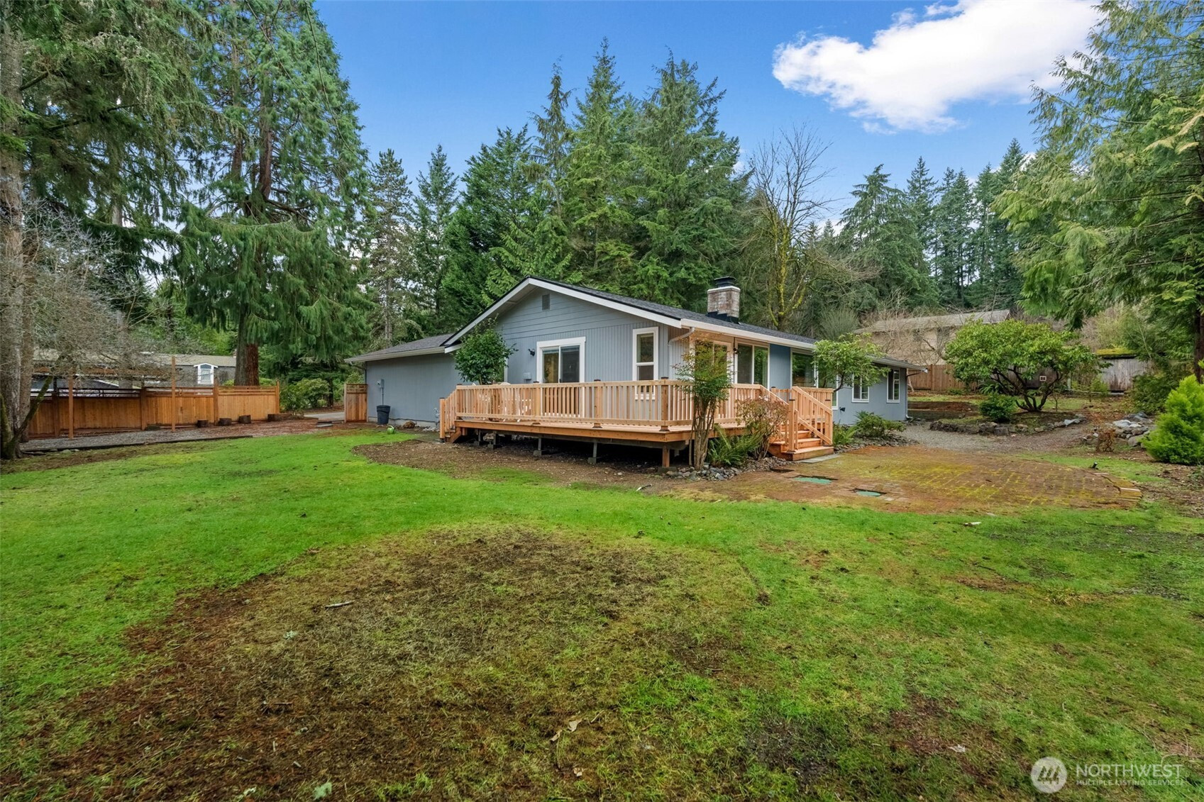Located in the desirable Forest Ridge neighborhood, this move-in-ready rambler offers the perfect blend of privacy, comfort, & timeless PNW style. The spacious living room is filled w/ natural light from new windows that frame beautiful views of the mature landscaping & oversized lot. French doors open to a welcoming family room that flows effortlessly into the kitchen & out to a generous NEW wrap-around deck, ideal for entertaining, hosting summer gatherings, or enjoying quiet evenings in the mostly fenced backyard with NEW fence. Dual-sided gas fireplace anchors the living spaces, adding warmth & character, while built-in cabinetry on both sides provides smart storage & display. Set on a large lot, the property feels peaceful & private, yet remains conveniently close to Gig Harbor N. shopping, dining, downtown waterfront amenities, & easy access to HWY16. W/ space to bring your chickens, build a garden, & truly enjoy the outdoors, this property offers flexibility for a variety of lifestyles. Just minutes away, walkable, the new City of Gig Harbor park features a fantastic playground, multiple pickleball courts, & turf soccer/football fields, adding incredible lifestyle value. NEW roof and deck in 2025. NO HOA is a rare bonus. Well cared for & ideally positioned on a quiet dead end culdesac, this home delivers comfort, convenience, and community in one of Gig Harbor’s most desirable areas.