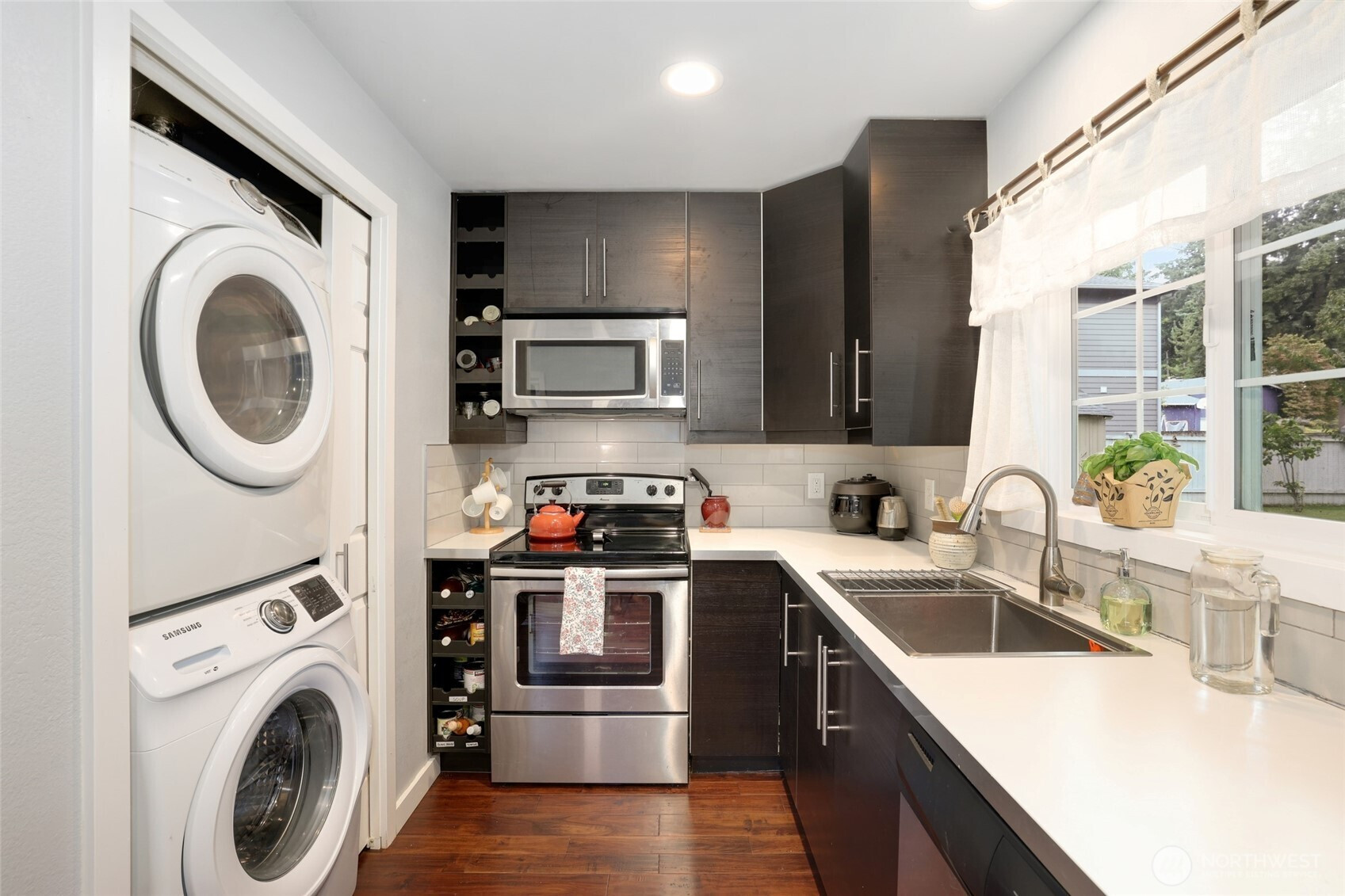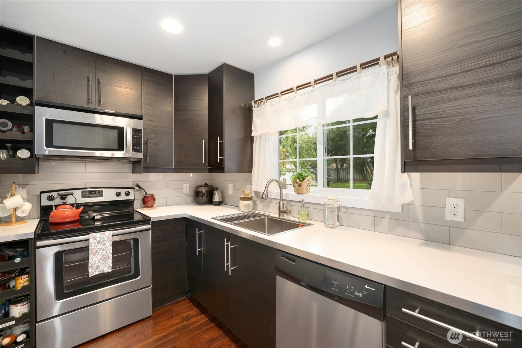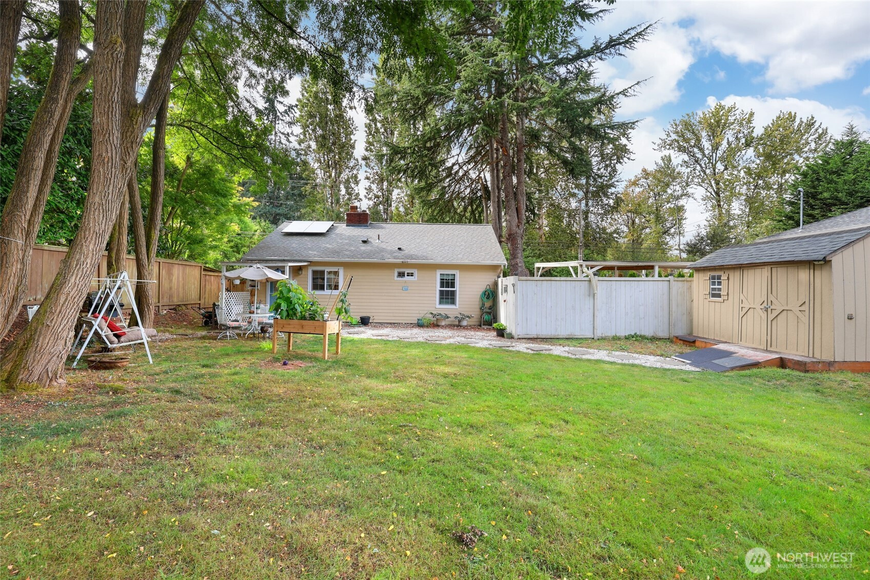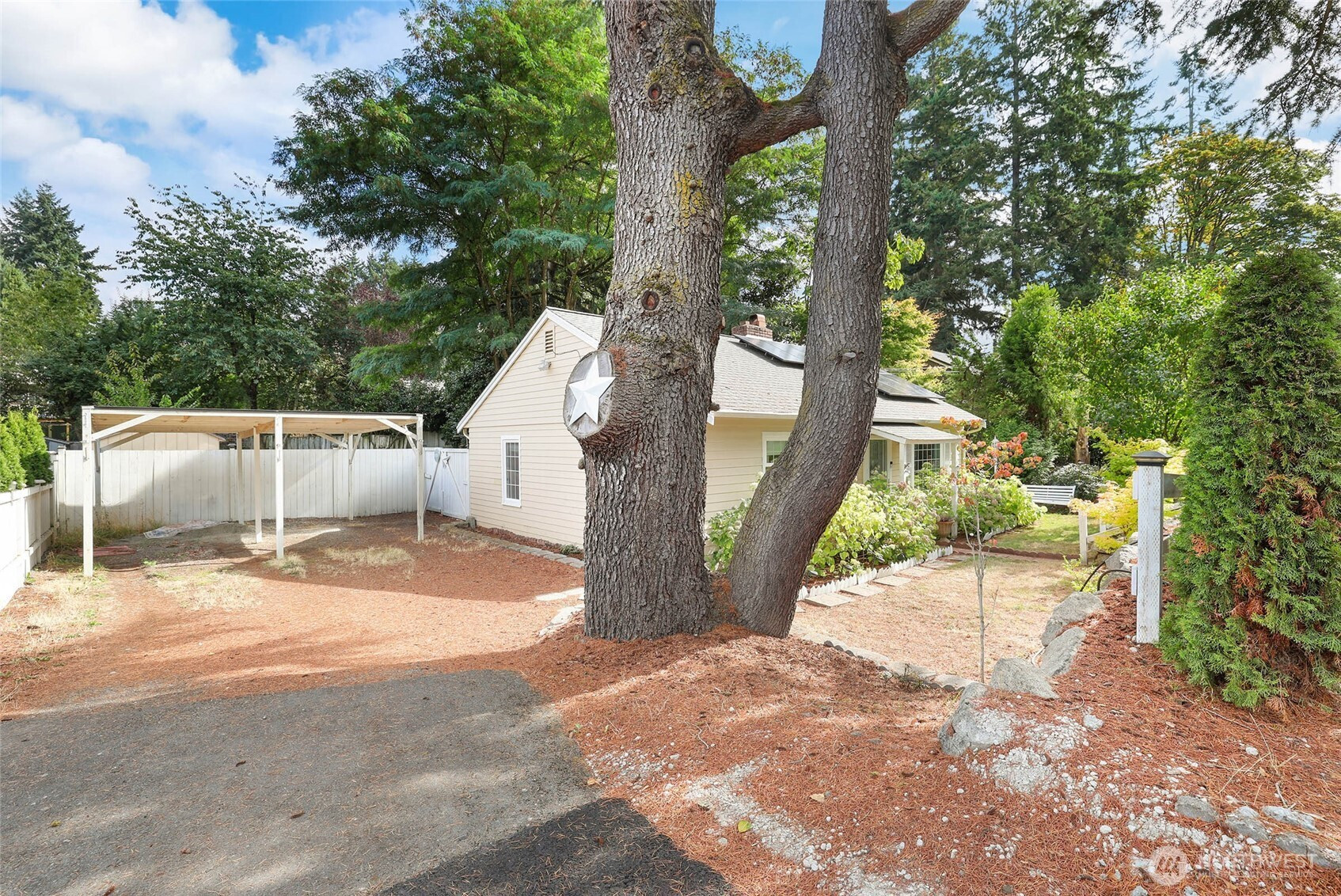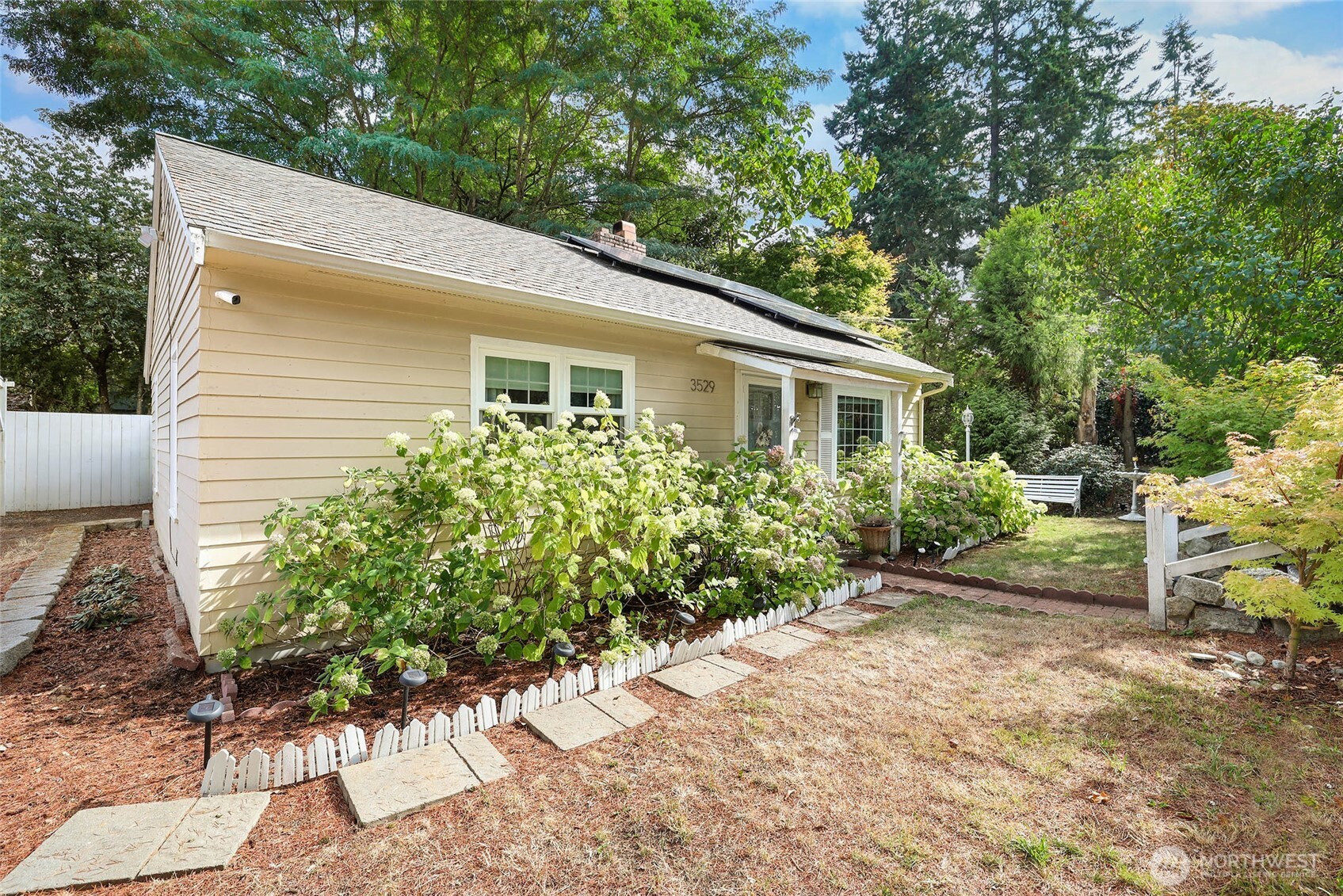 Step inside this charming University Place rambler! Move-in ready 2 bed, 1 bath home features a modern kitchen with stainless steel appliances and solar panels for energy savings. Stay cozy year-round with a ductless mini-split system. The beautifully landscaped front yard and private, spacious fenced backyard are perfect for entertaining, gardening, or enjoying a sunny afternoon under apple, pear, cherry, and plum trees. Additional perks include a 2-car carport and handy storage shed. Just minutes from shopping, dining, waterfront adventures, and Hwy 16, this home blends comfort, charm, and a lifestyle full of fun and convenience—your perfect slice of Pacific Northwest living awaits!