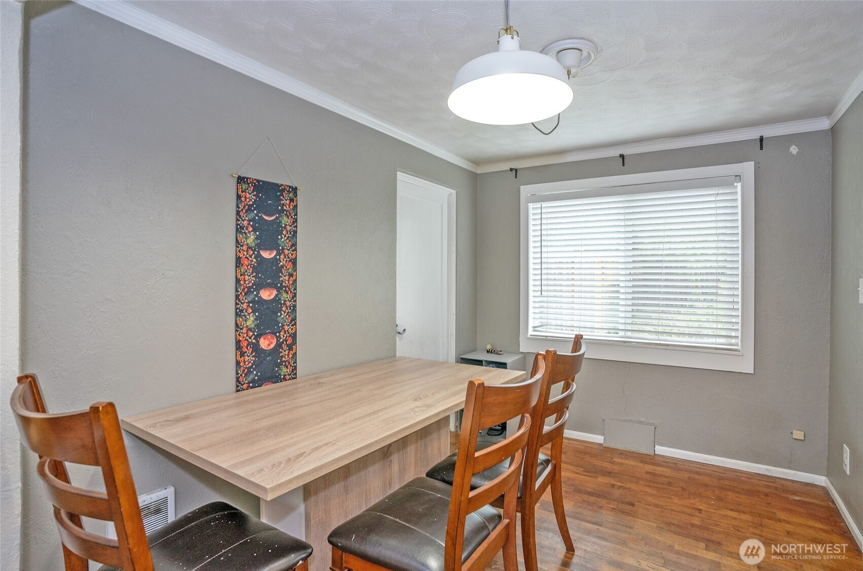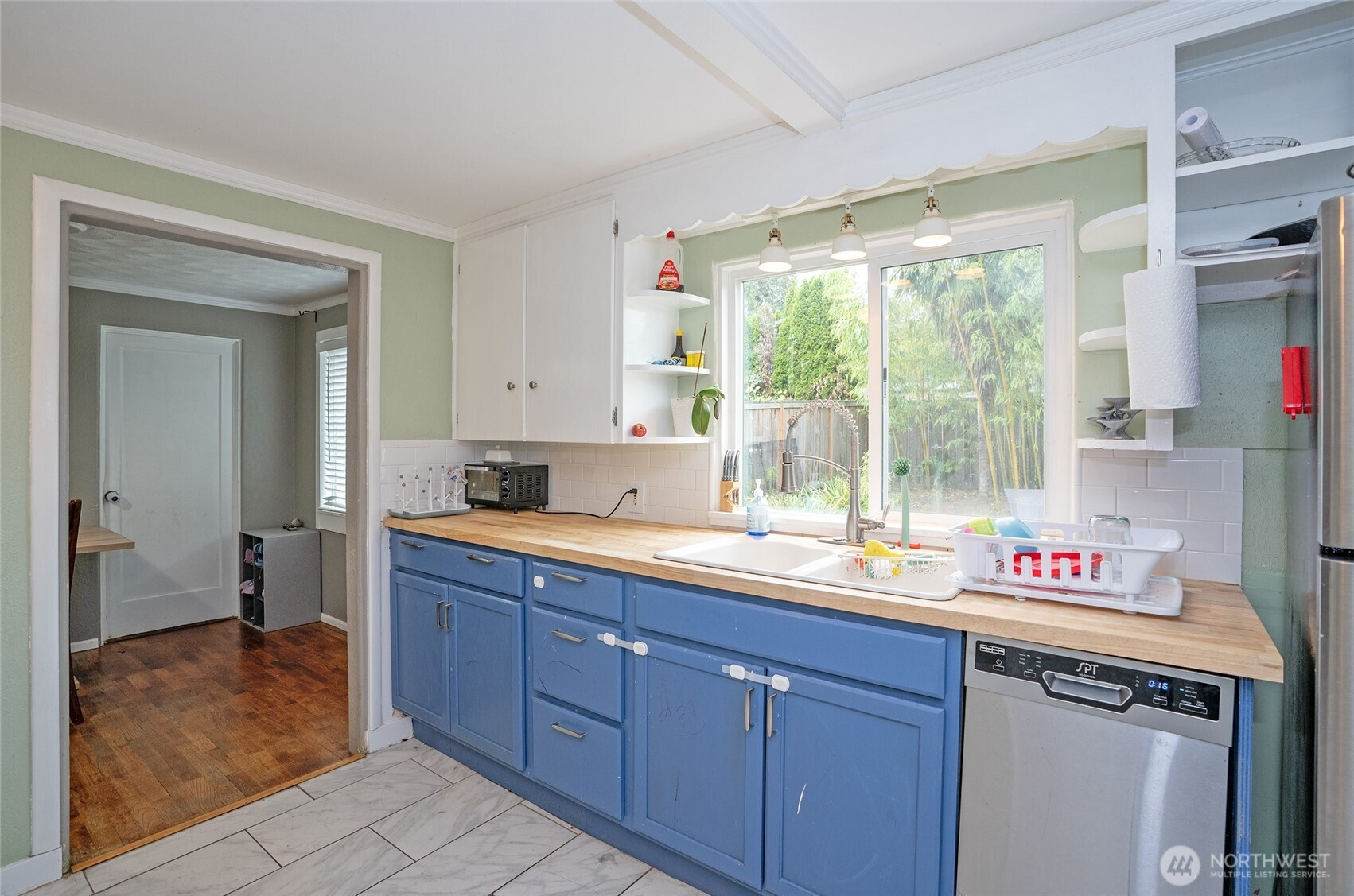 Charming 1950's Rambler is looking for a new owner to make this their home. Crown molding and real hardwood floors throughout. The kitchen has stainless steel appliances, a full backsplash with butcher block countertops. Tile floors in the kitchen. Eating area off the kitchen with room for a good size table. Large living room with a fireplace for those cold evenings. Quarter acre Corner lot home with lots of privacy and huge fenced area in the backyard with plants, palm trees and fruit trees. Relax and enjoy those backyard barbeques. All appliances transfer to buyer with sell. AC when needed with mini split unit. Easy commute north or south. Come take a look today!