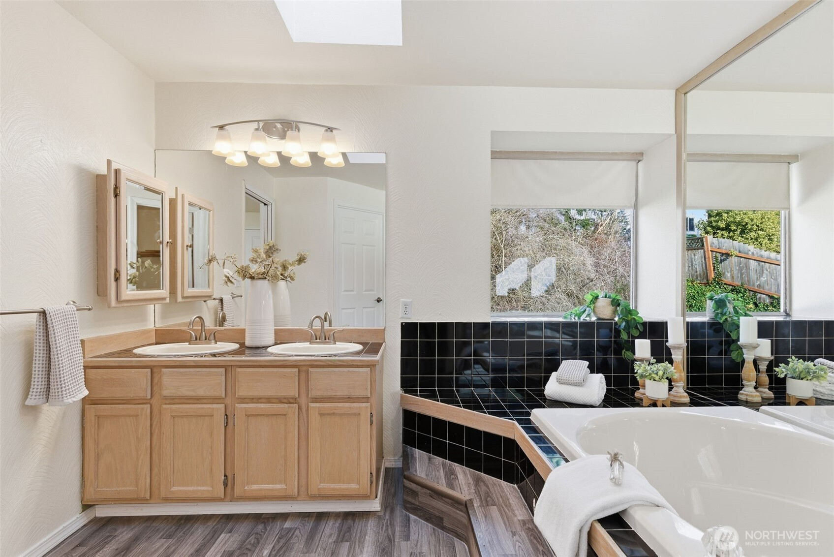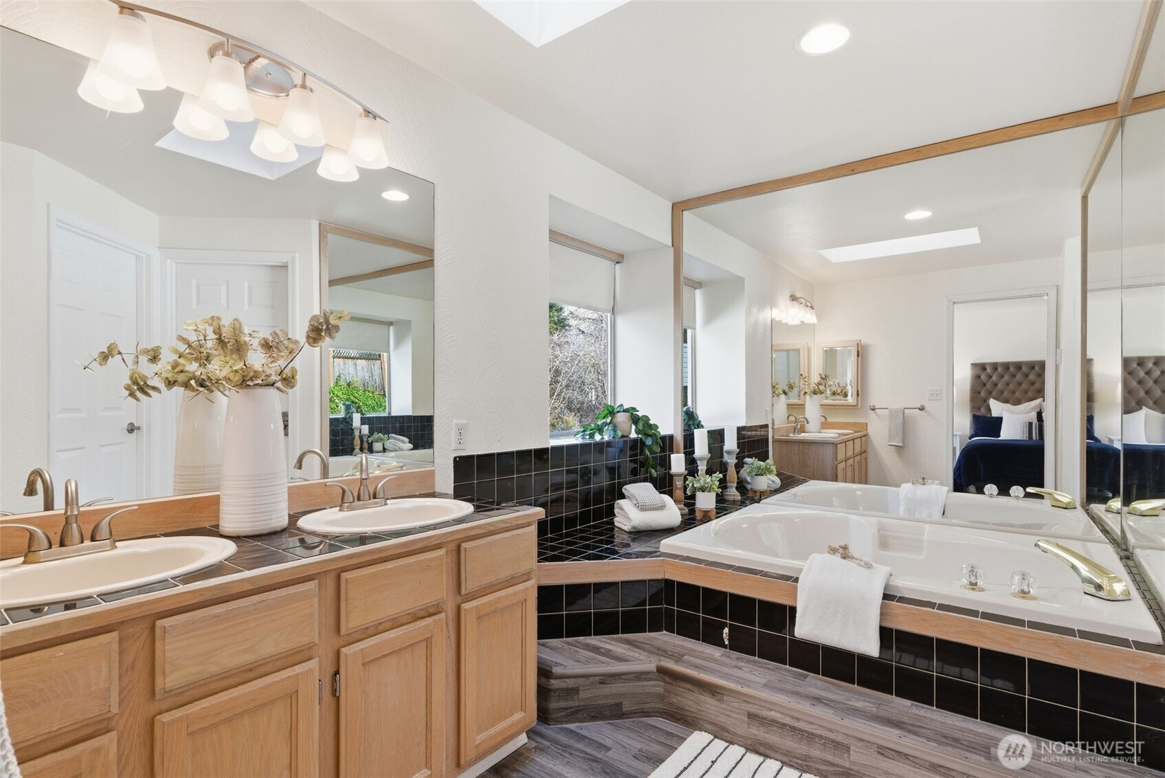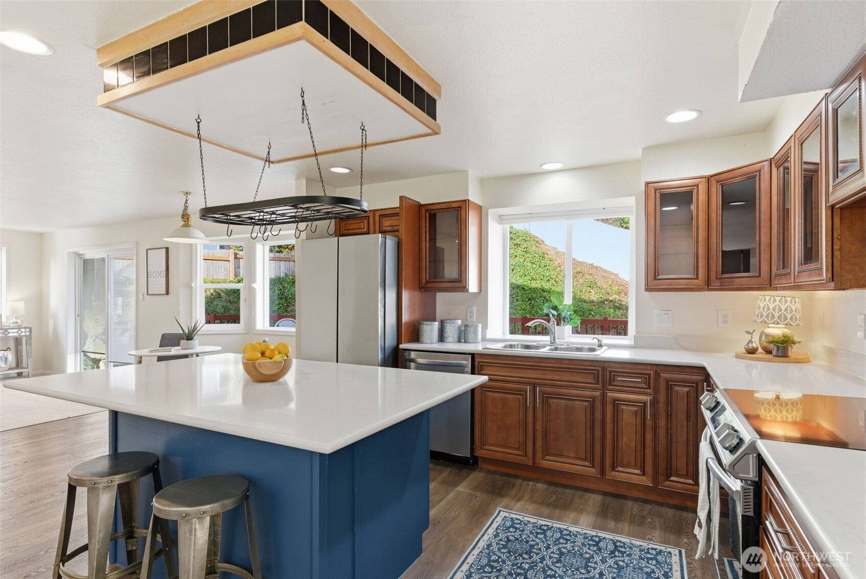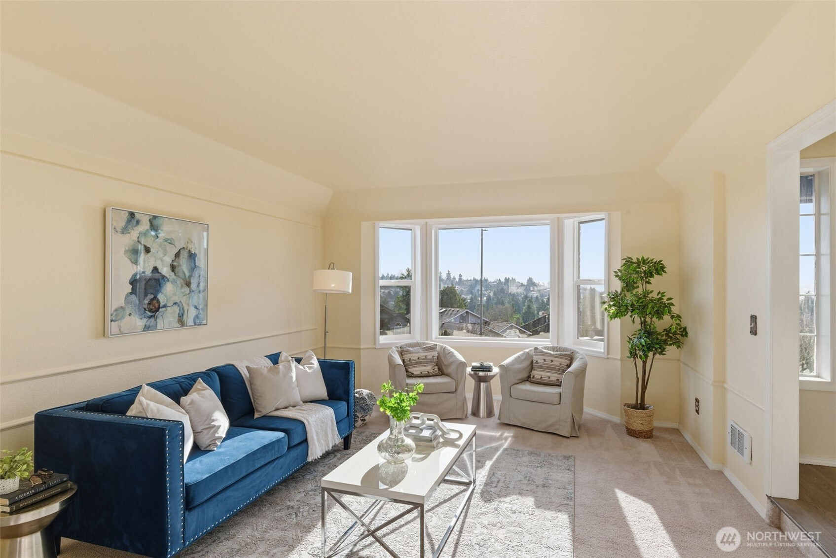 Location truly shines with a large corner lot, and views of the beautiful Mt. Rainier scenery in this spacious 4-bedroom, 2.5-bath NW Contemporary home. Thoughtfully designed at 2,200+ sq ft, the layout offers both comfort and flexibility with formal living and dining spaces, plus an open kitchen and family room with cozy fireplace that's ideal for everyday living and entertaining. Kitchen complete with dining nook, a large useful island with bar seating, walk-in pantry, beautiful cabinetry, stainless appliances, and charming pot rack. Large windows fill the home with natural light, while the expansive deck extends your living space outdoors—perfect for gatherings, relaxing, or enjoying the surrounding scenery. Upstairs, the generous primary suite features a 5-piece bath and ample closet space, accompanied by three additional bedrooms and a full bath. Great sized bedrooms with ample closet space + mini-splits for year round comfort. The attached 2-car garage provides excellent storage, and the corner lot offers added privacy with a fenced yard. Located near Crescent Heights Elementary, Meeker Middle School, North Shore Golf Course, parks, nearby community center, and convenient commuter routes—this is a rare opportunity to own in a sought-after Browns Point area with space, views, and the chance to make it your own.