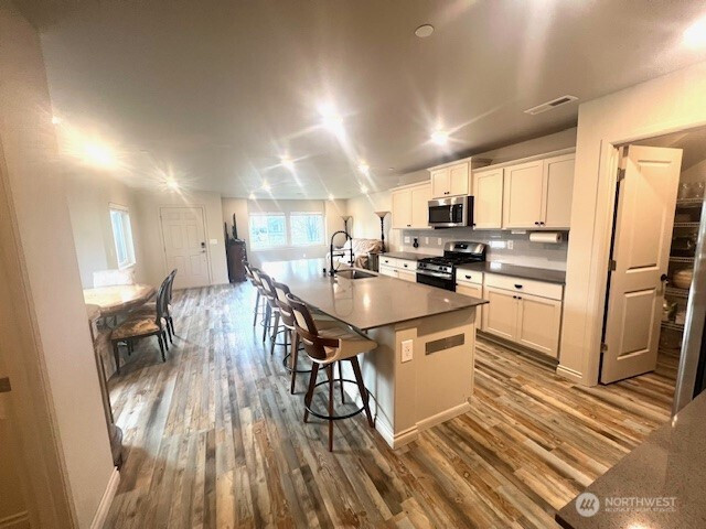 (503) 893-8874AMAZING HOME! Look at the KITCHEN! Excellent Northwest Landing home on corner lot. Fully landscaped. Upgrades galore. This is a newer home in an excellent location. Less than 10 mins to JBLM. Excellent school district. Many parks & walking trials. The biggest kitchen island you may have ever seen. Open floor plan with 1620 sq ft. 3 bedrooms with 2.5 half baths and a 2 car, 444 sq ft, garage. The well designed main bedroom has it's own private bathroom and walk-in closet. Two more spacious rooms with a full bath. A half bath on the main floor for guest. All appliances stay including washer and dryer. Upgrades include EV charge port, electronic door bell, keypad front door lock, underground spigot sprinkler system, fully fencened