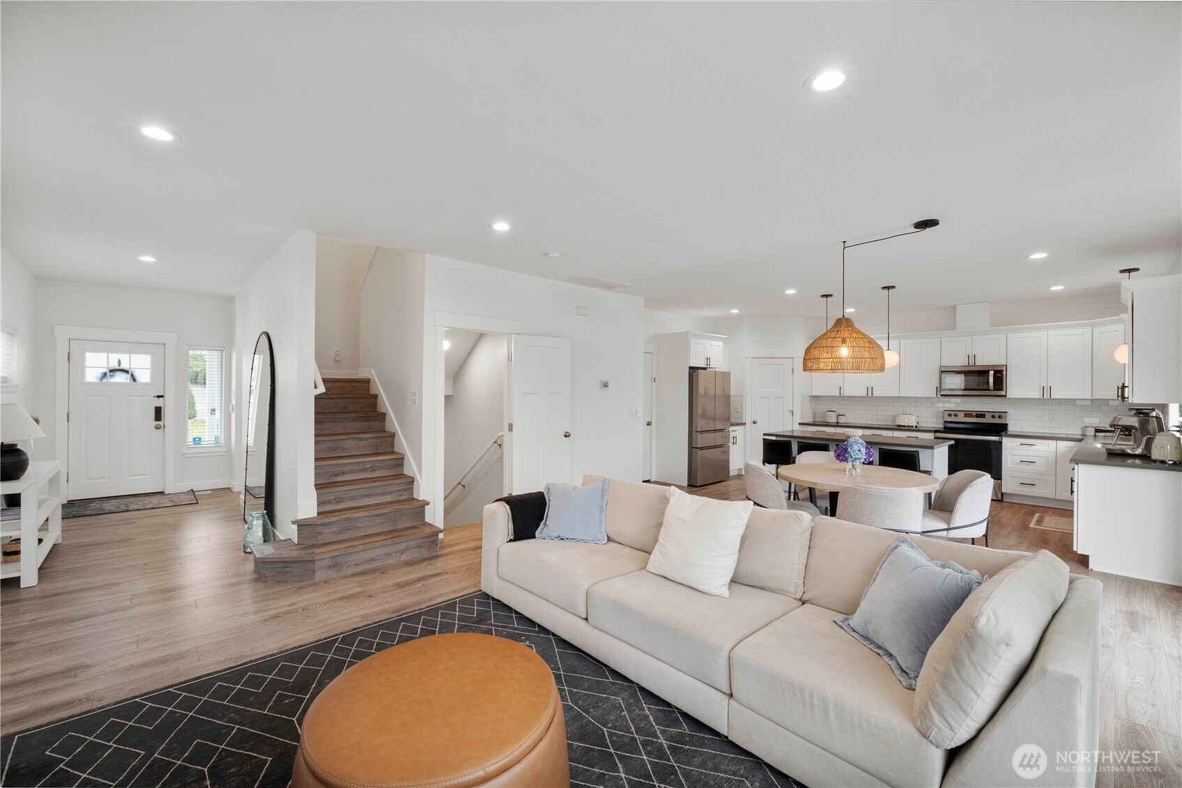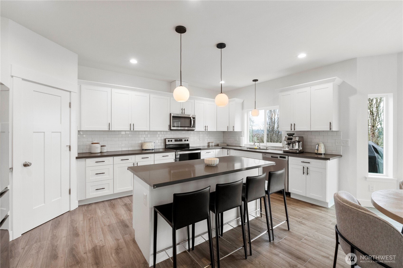 Built just 6 years ago, this 2,829 sqft home offers space, flexibility, and built-in income potential. With 5 bedrooms and 3.5 bathrooms, it’s ideal for investors or owner-occupants looking to offset their mortgage. Situated on a quiet dead-end street with a greenbelt behind the home, you’ll enjoy added privacy and minimal traffic.The main home features an open-concept layout with quartz countertops throughout, shaker-style cabinets, four bedrooms, and a spacious primary suite with a five-piece bath. Step out onto the beautiful deck overlooking the greenbelt to enjoy the privacy and appeal.The separate-entry 835 sq. ft. mother-in-law ADU basement unit includes its own kitchenette and laundry and was previously rented for $2,200/month, offering strong income potential.A great opportunity for modern living with rental income built in.