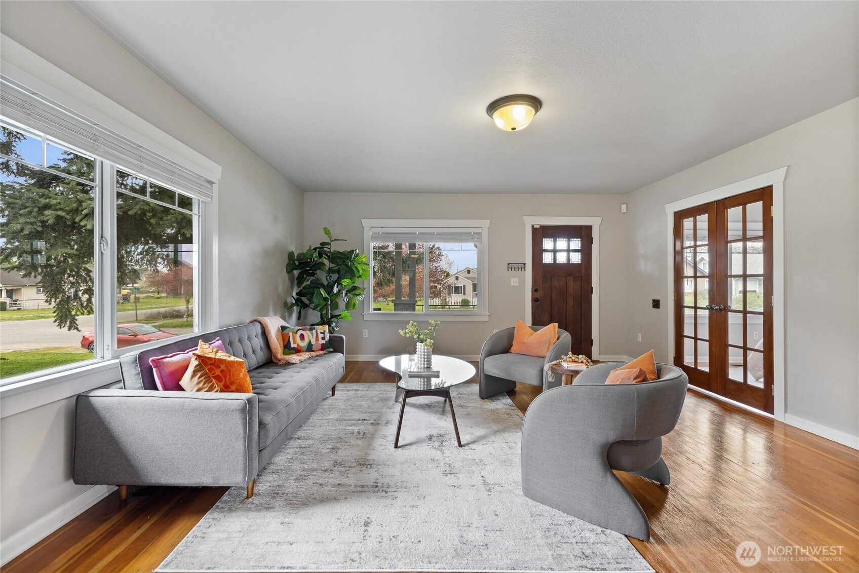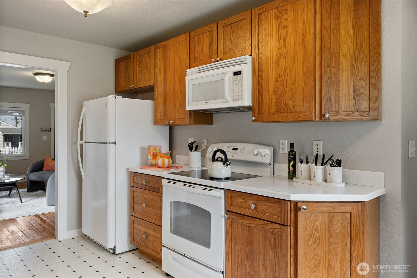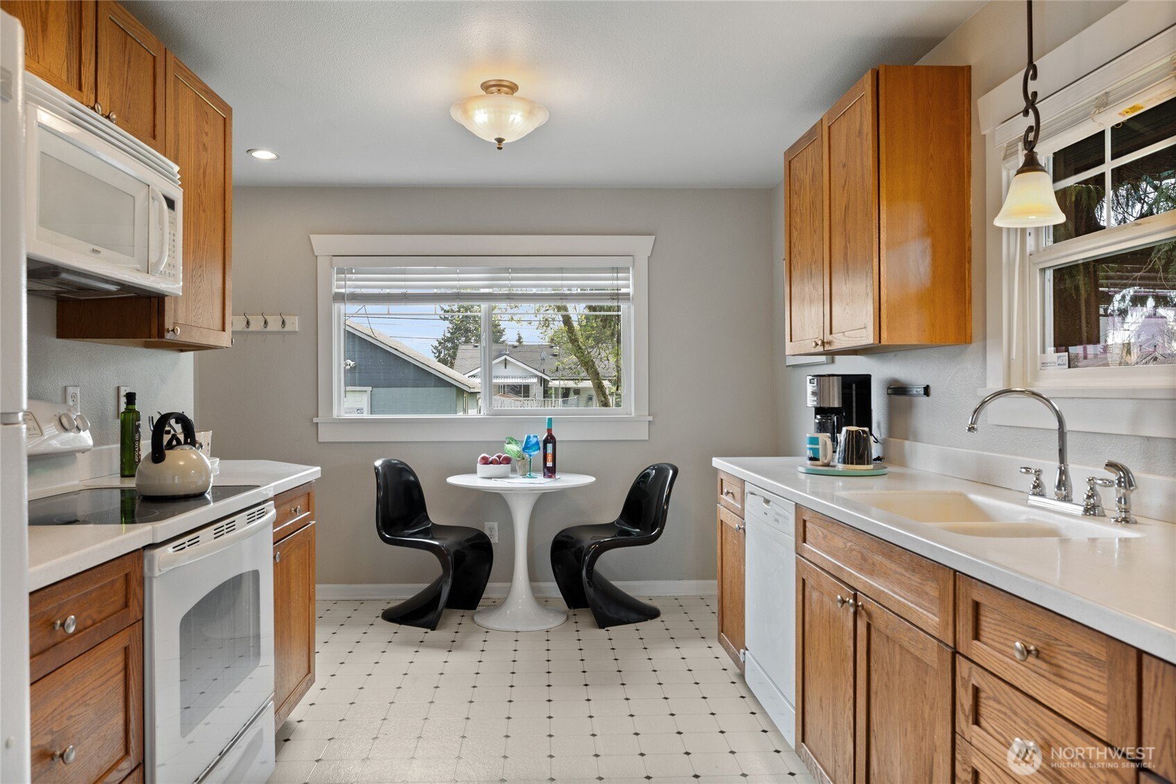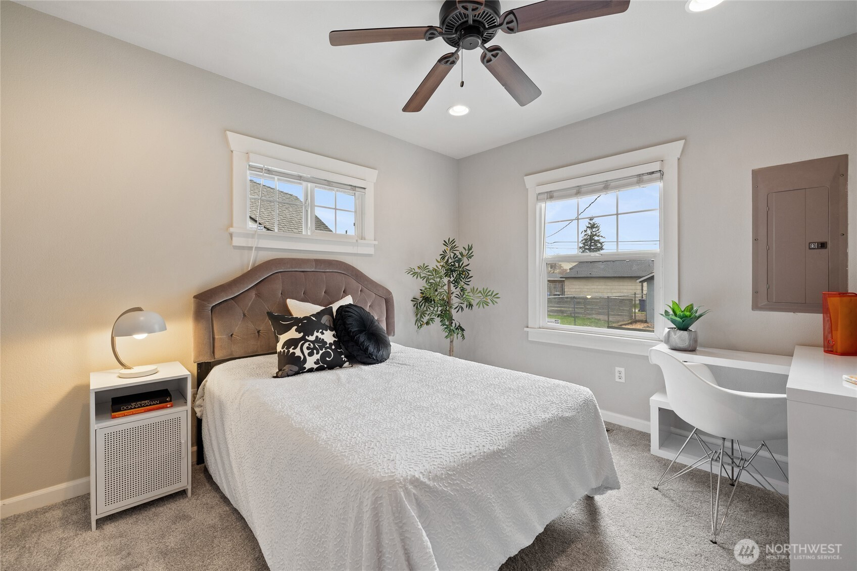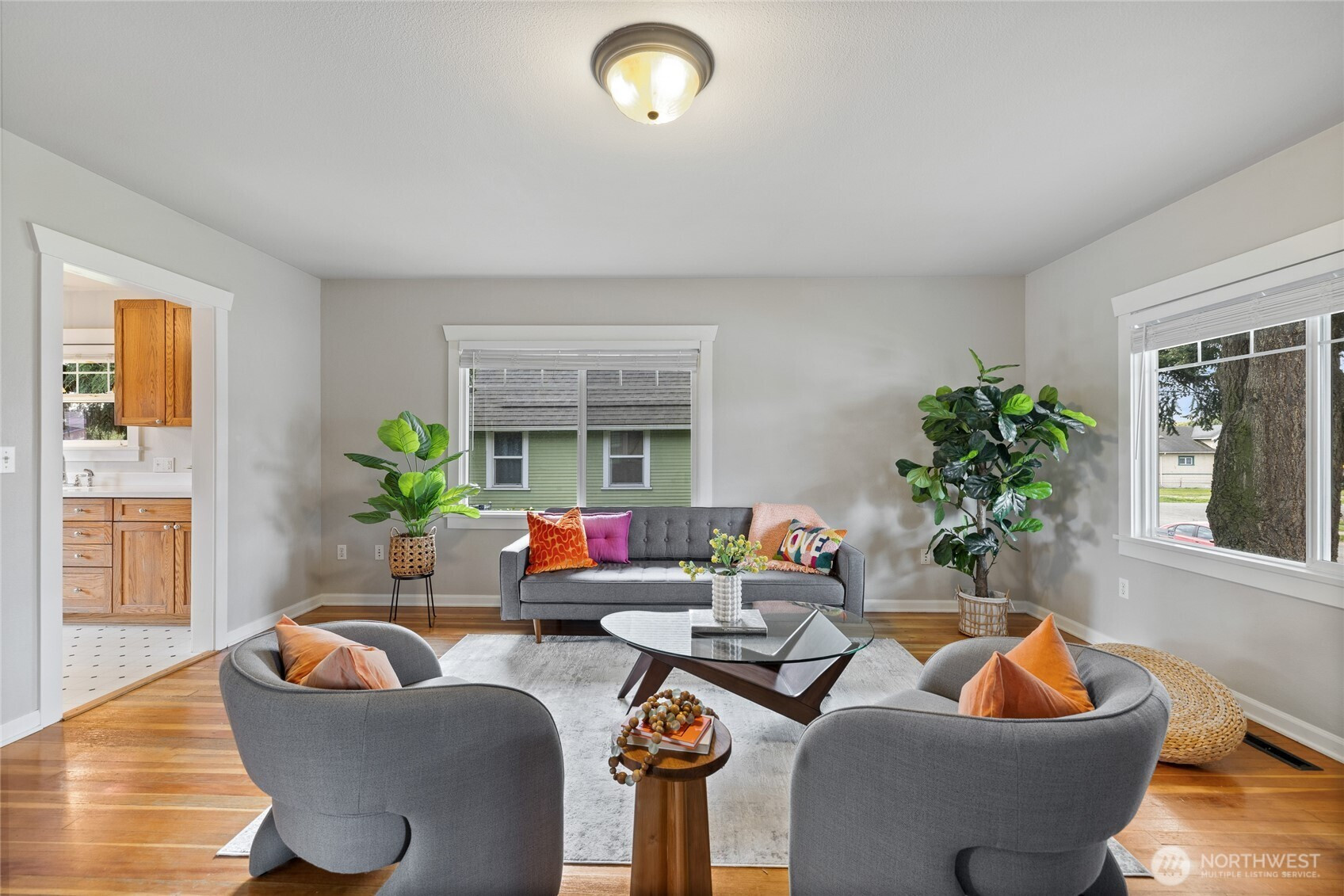 Welcome to this charming 2-bedroom, 1-bath craftsman bungalow in the Historic McKinley Hill neighborhood of East Tacoma. Built in 1924, this 888 SF home features a spacious living room, eat-in kitchen, original hardwood floors in the living area and primary bedroom, and new carpet in the second bedroom. A new roof (Aug 2025) adds peace of mind. The unfinished basement offers great storage or workshop potential. Enjoy a fully fenced backyard with a raised garden bed, ideal for entertaining, gardening, or pets, plus a detached two-car garage with alley access and RV parking. Located near McKinley Park, the Lincoln District, and local favorites like Beware Coffee and Lux Coffee.