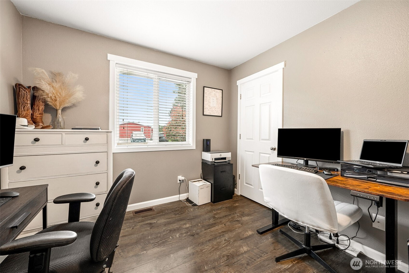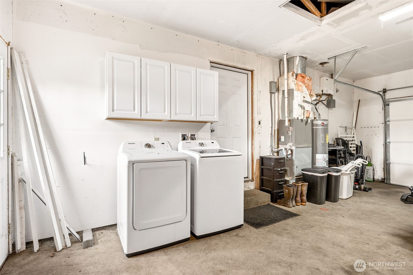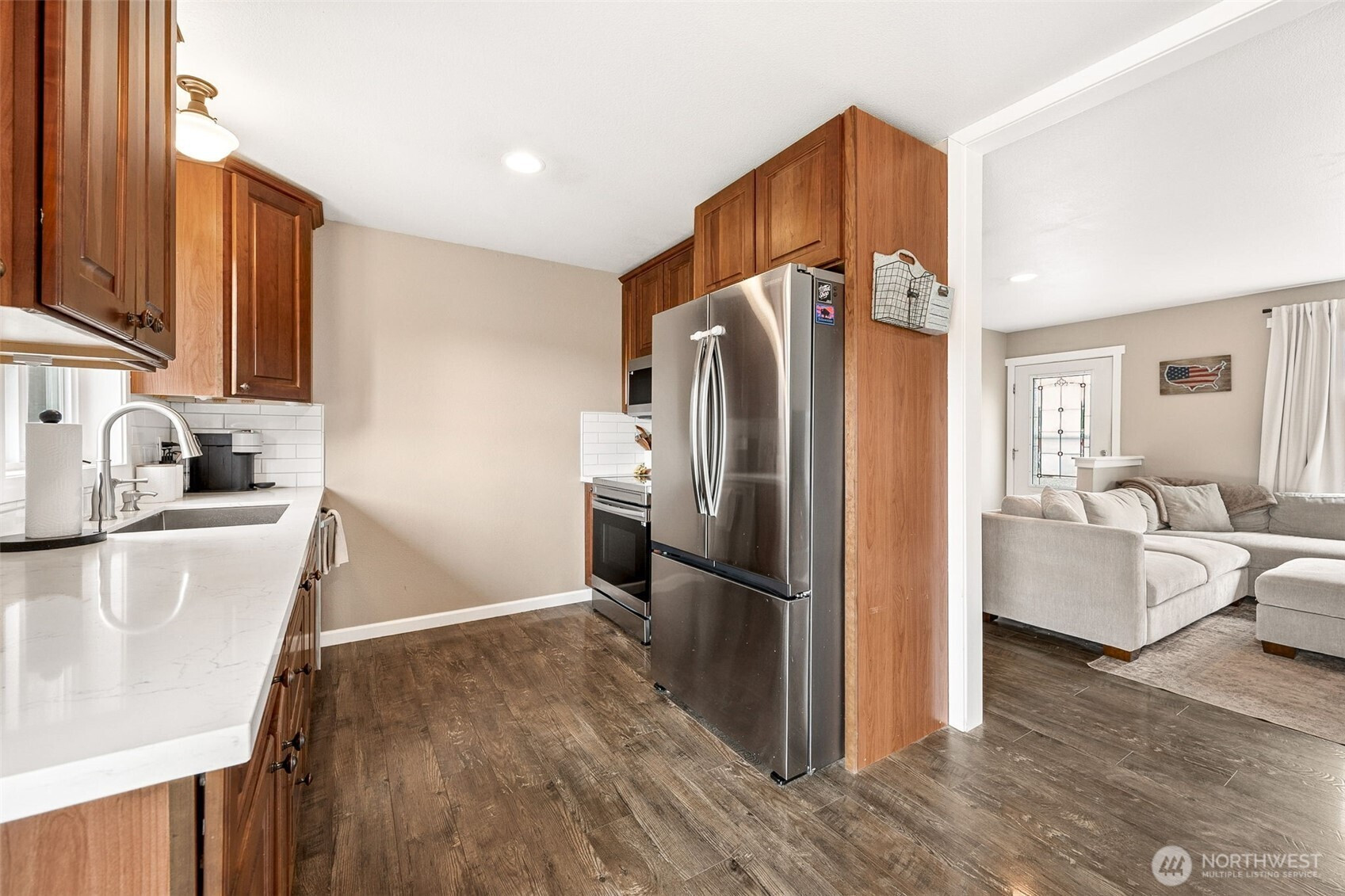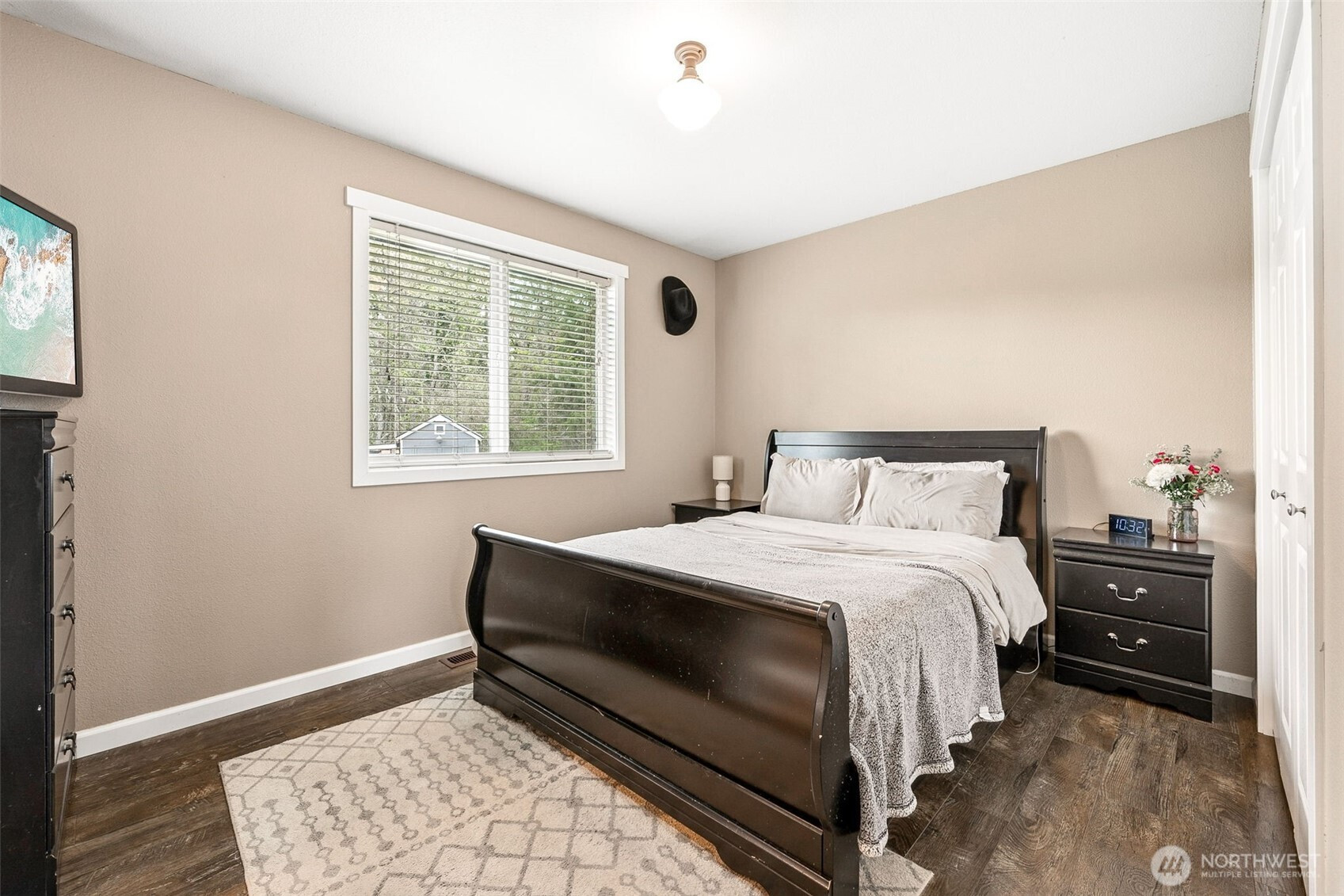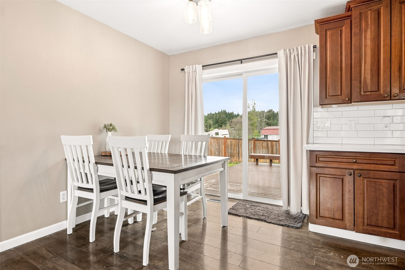 Beautifully updated rambler offering an open floorplan with thoughtfully designed living space. All new for peace of mind: exterior paint, roof, deck, garage door/motor and pressure tank in well house! The bright and inviting living room flows seamlessly into the dining area just off the updated kitchen, complete with quartz countertops, stainless steel appliances, full-height tile backsplash, and a window overlooking the property. The home features 3 generously sized bedrooms and 1.75 updated bathrooms with modern vanities, tile accents, and a beautifully tiled shower in the full bath. Step outside to the huge fenced, park-like backyard featuring a bonfire pit and an entertainment-sized deck with built-in seating—perfect for gatherings. Detached garage/shop 25x25, 625 sq feet, 12 ft tall W/10-foot doors and 100-amp service providing added storage, workspace, or hobby potential and space for RV parking! Centrally located just minutes to shopping, dining and entertainment! Eatonville School District!