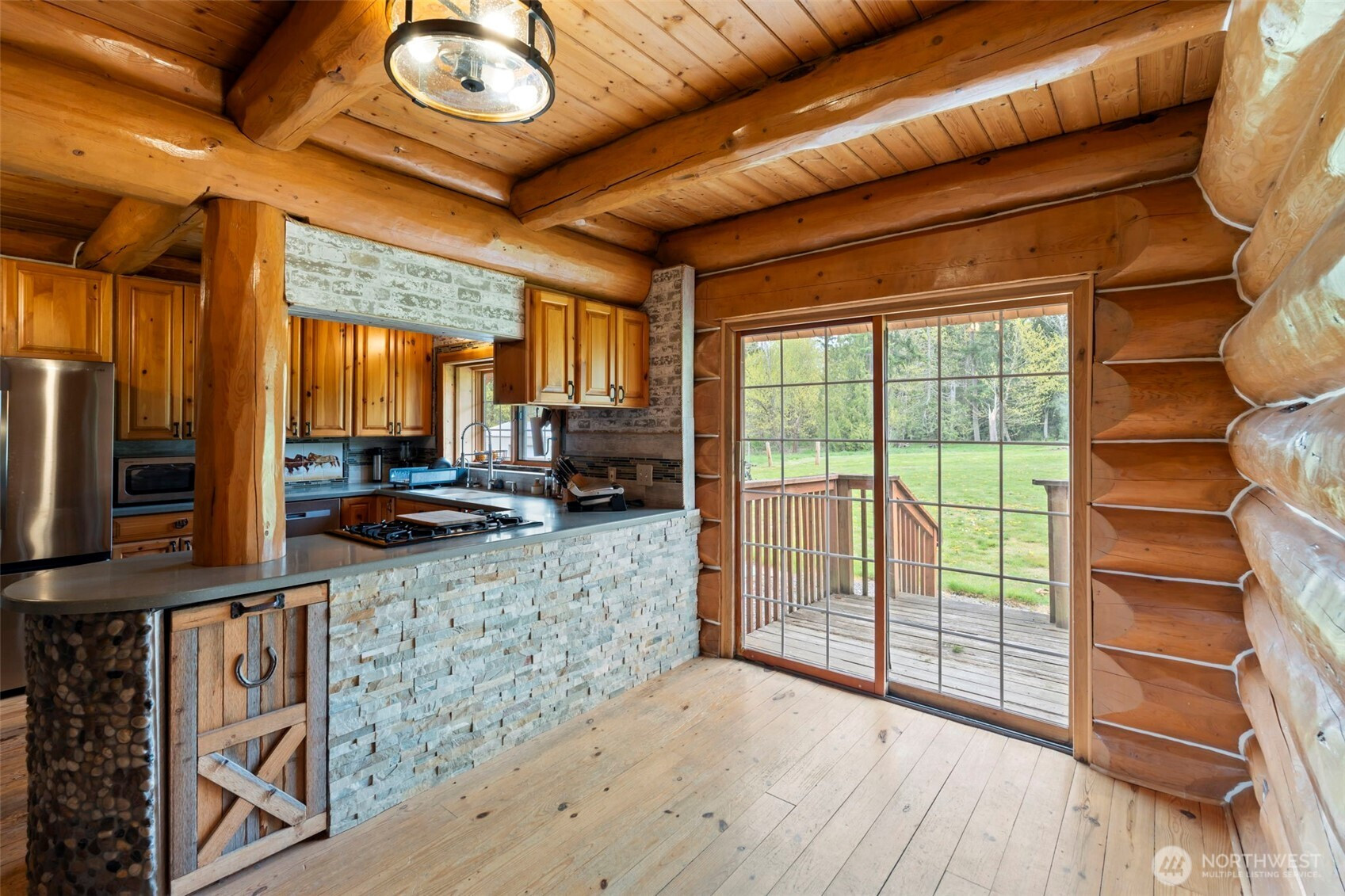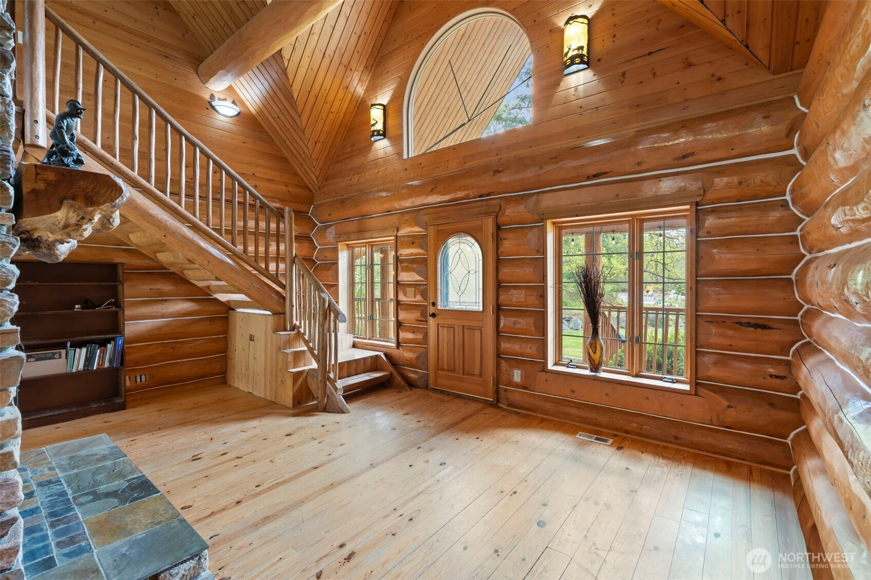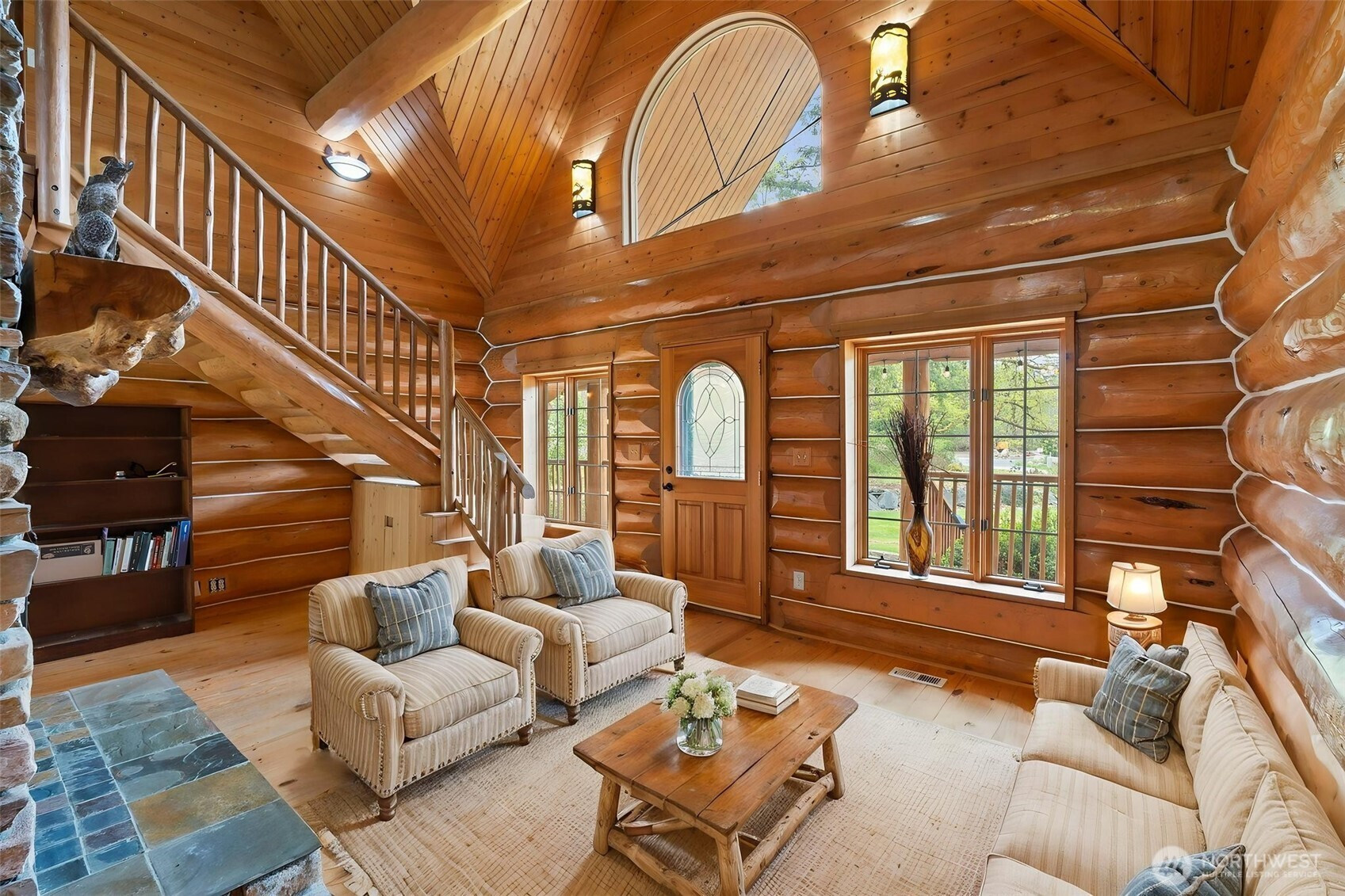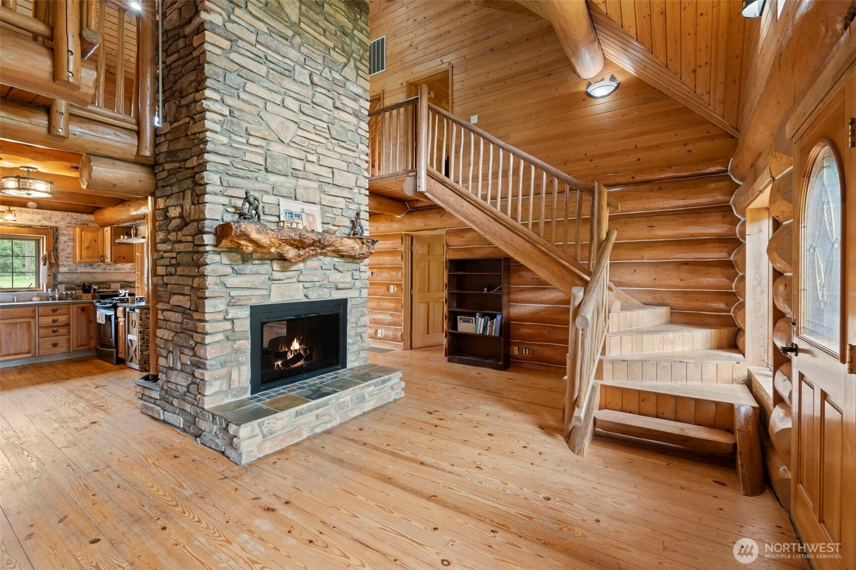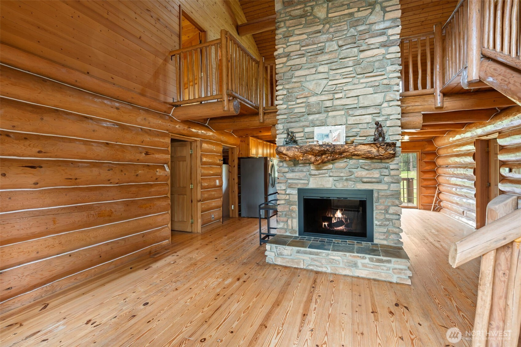 If you've been looking for space, privacy, and a home that actually feels different- this is it. Set on 5+ acres, this log home brings together warmth, character, and functionality in a way that's hard to replicate. Vaulted ceilings, natural wood throughout, and a statement stone fireplace create a space that feels grounded and inviting the moment you walk in. The layout offers room to spread out with multiple living areas and flexible bedrooms, while the land gives you the freedom to actually use it- whether that's animals, gardening, or simply enjoying the quiet. Outbuildings, open ground, and a circular drive make the property as practical as it is peaceful. Country living without being disconnected-privacy, space and a setting that makes you want to stay awhile.