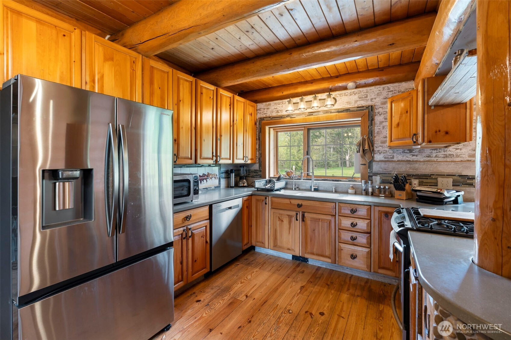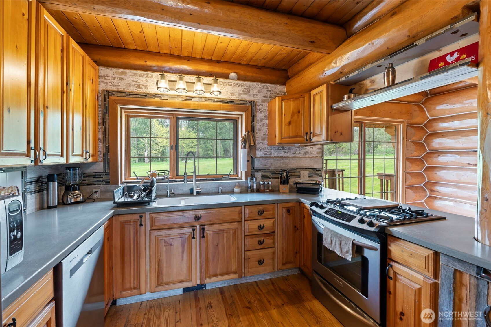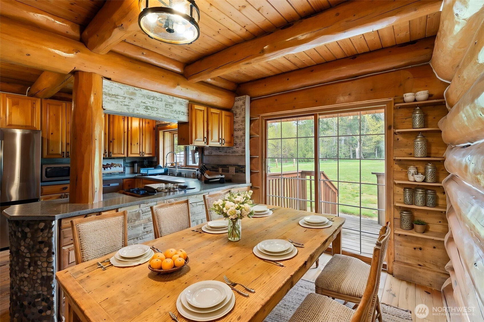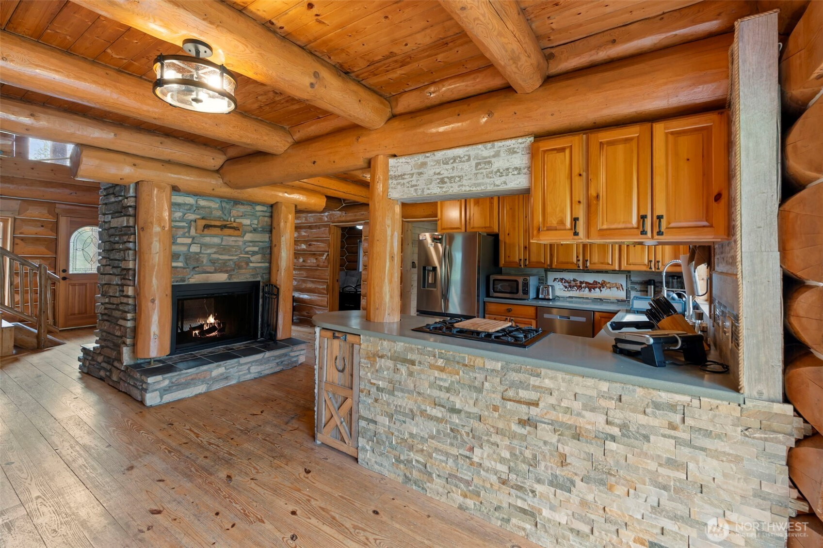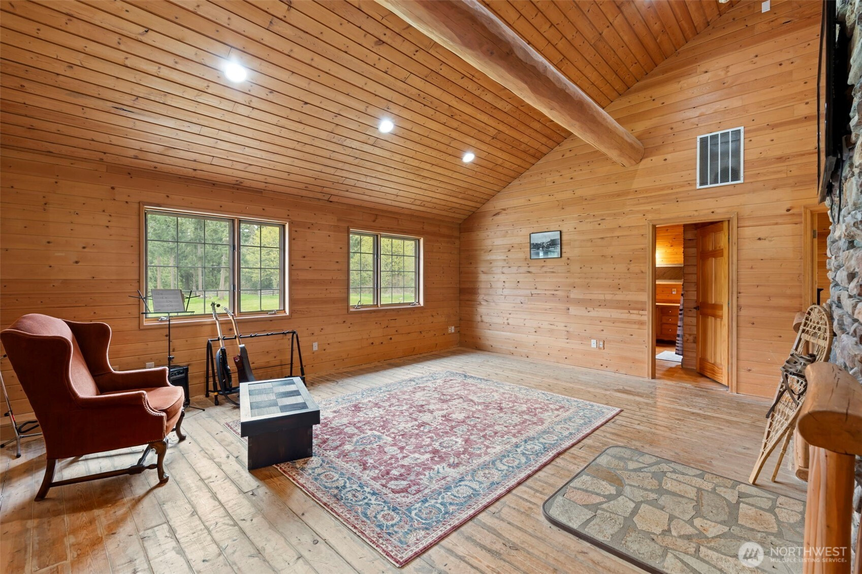 If you've been looking for space, privacy, and a home that actually feels different- this is it. Set on 5+ acres, this log home brings together warmth, character, and functionality in a way that's hard to replicate. Vaulted ceilings, natural wood throughout, and a statement stone fireplace create a space that feels grounded and inviting the moment you walk in. The layout offers room to spread out with multiple living areas and flexible bedrooms, while the land gives you the freedom to actually use it- whether that's animals, gardening, or simply enjoying the quiet. Outbuildings, open ground, and a circular drive make the property as practical as it is peaceful. Country living without being disconnected-privacy, space and a setting that makes you want to stay awhile.