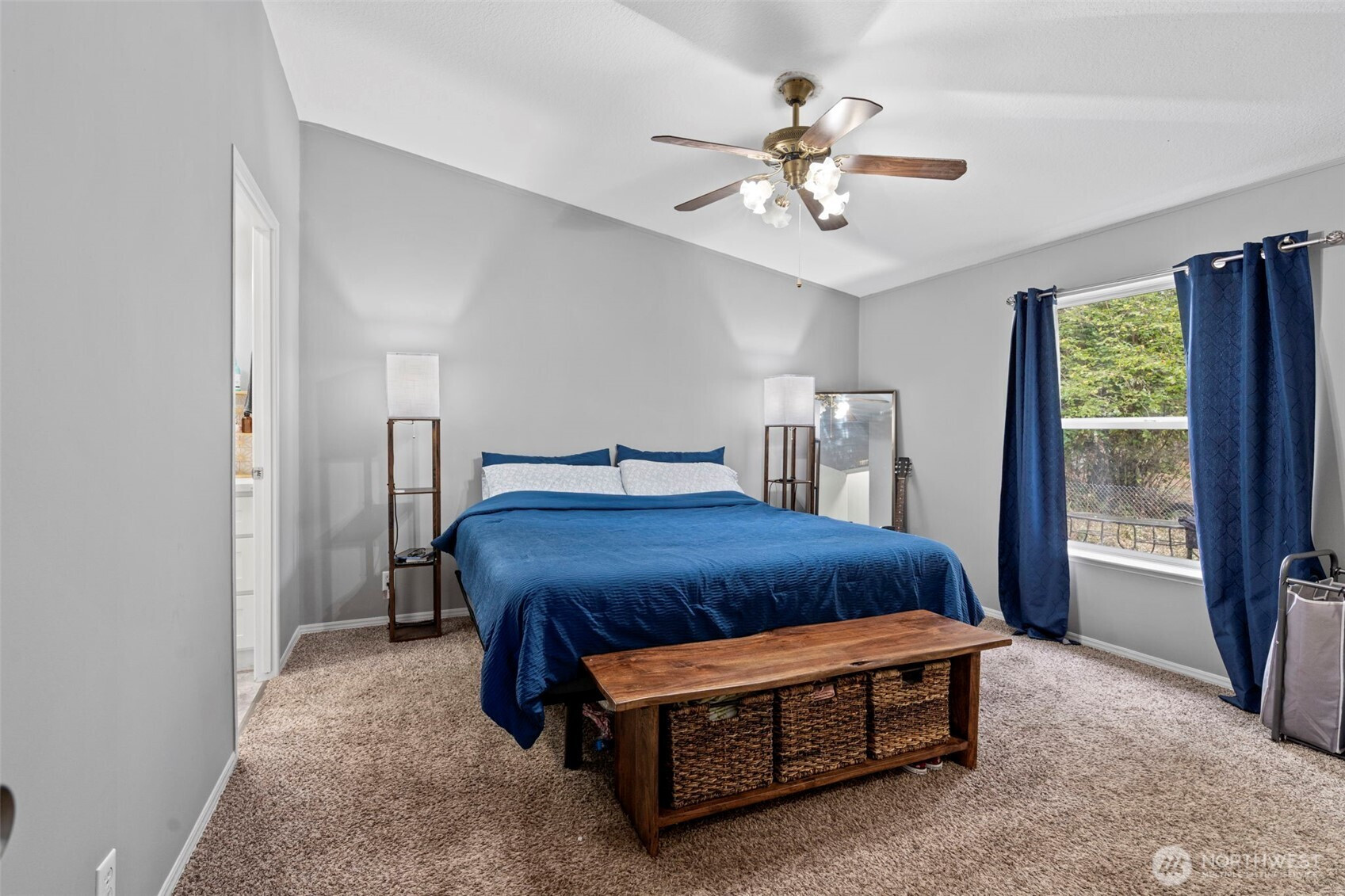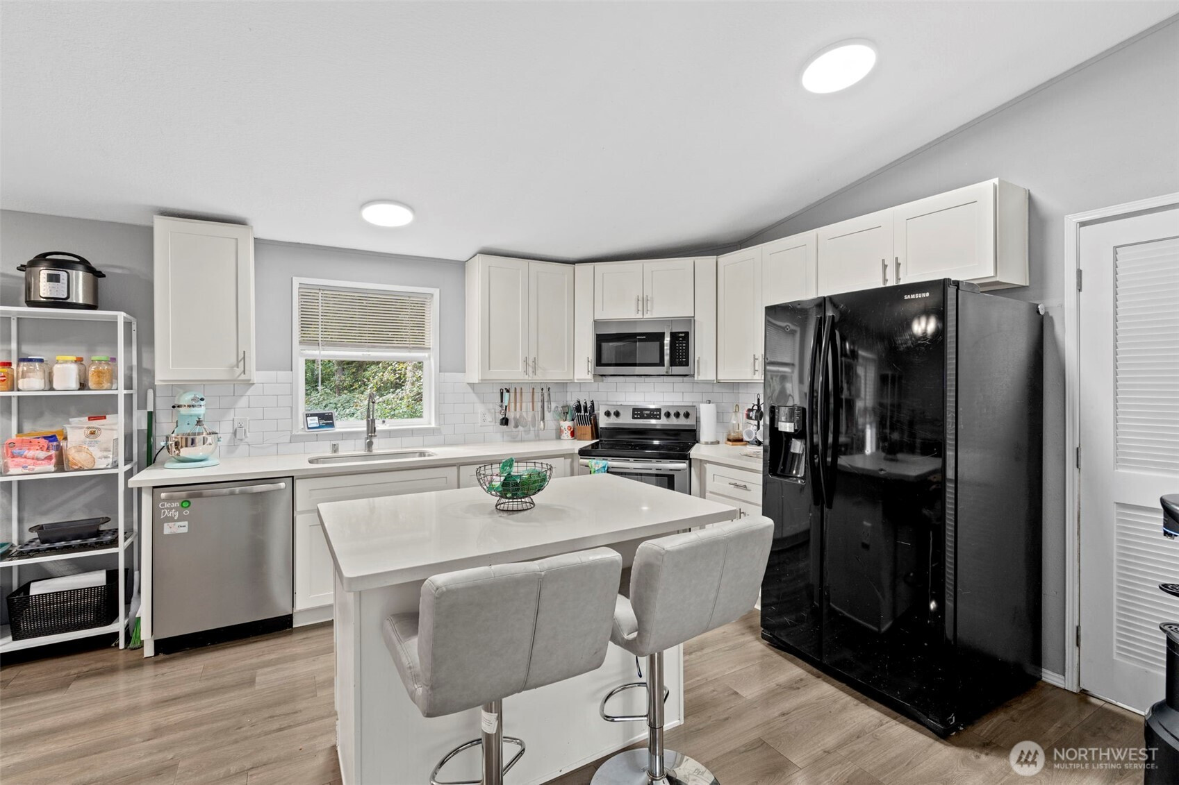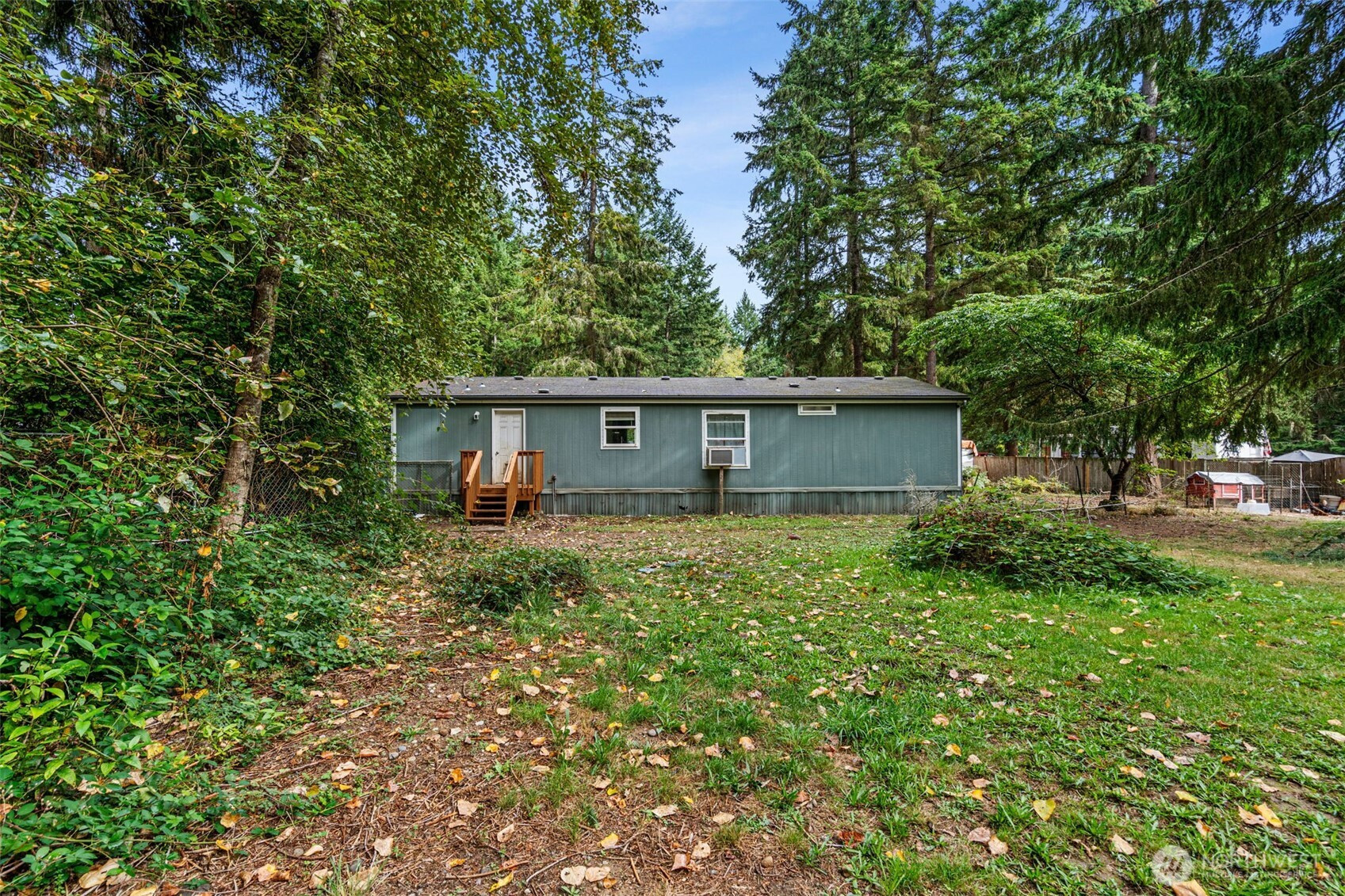 Beautifully updated 3 bed, 2 bath home on a full acre! Features include an open floor plan with vaulted ceilings, fresh interior paint, new LED lighting, and walk-in closets in every bedroom. Renovated bathrooms and an updated kitchen with stainless steel appliances and granite countertops. Enjoy a variety of fruit trees including apple, peach, and cherry. Property includes a permitted 404 sq ft detached studio unit with its own kitchen and bath—perfect for rental income or multigenerational living. Spacious detached 2-car garage, small shed, and newly built deck. Just 30 minutes to JBLM!