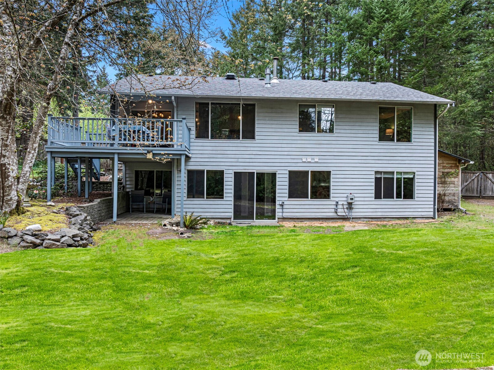 A very well cared for home on 1.2 private acres, just minutes to downtown Gig Harbor. Great outdoor space includes a new upper deck, perfect for quiet meals/evening cocktails, yard has a firepit, full fencing, and a nice outlook & secluded feel. Primary bedroom on main. The walkout daylight basement adds a full bath and spacious family room — perfect for guests, a rec room, or whatever you need. Comfortable living here with easy access to shopping, dining, schools and highway.