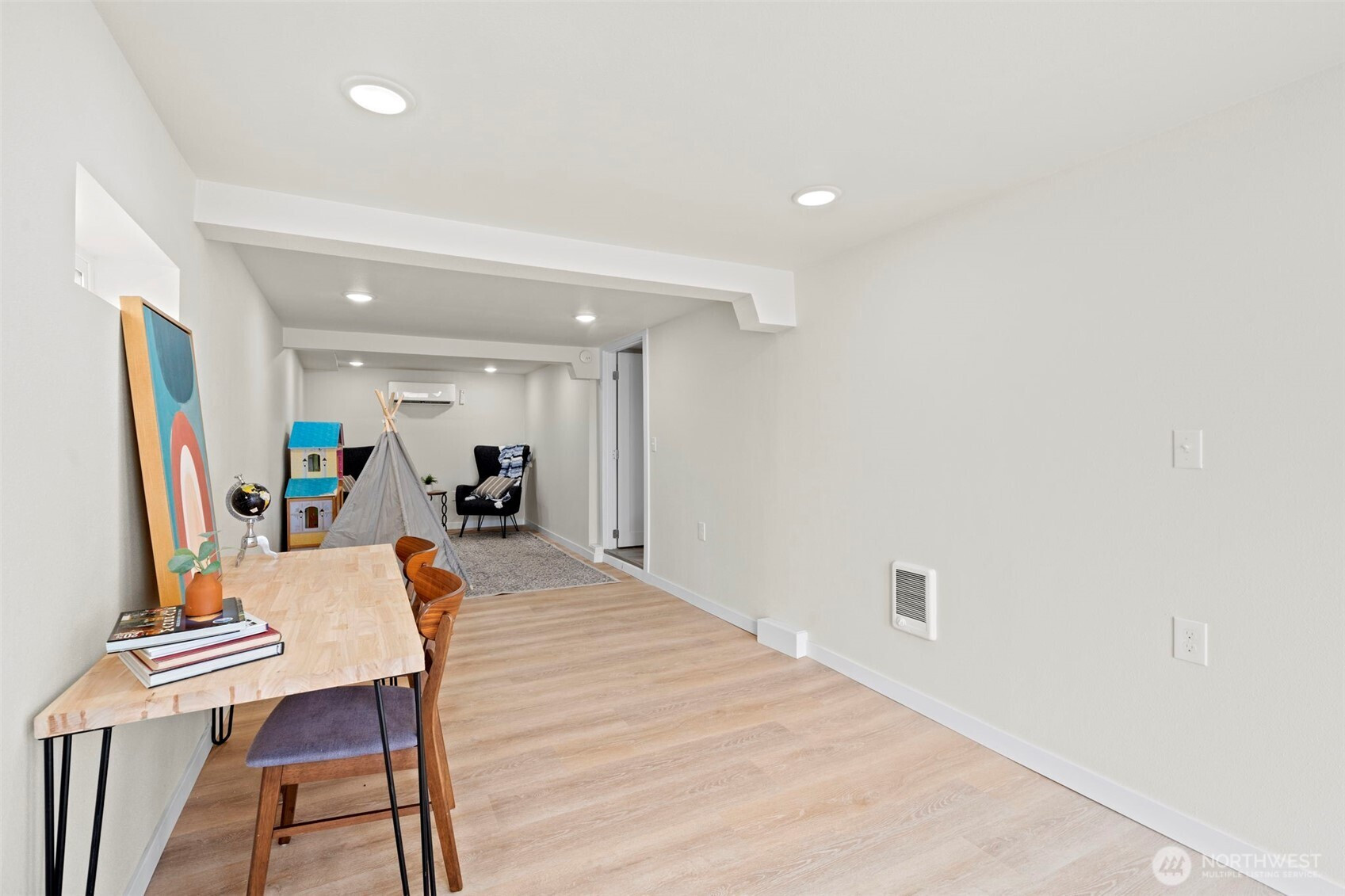 Welcome home to this tastefully updated home that’s truly move-in ready. Enjoy new flooring, custom light fixtures, and thoughtfully designed built-ins throughout the entry, living room, and kitchen. The stunning kitchen features quartz countertops, soft-close cabinetry, high-end appliances, and a large eat-at island. The main level includes a primary bedroom with a spa-inspired en-suite and oversized shower, guest bedroom and half bath. The lower level offers a spacious family room, full bath, laundry room, a large bedroom with walk-in closet, and a 4th bedroom or bonus space. Major upgrades include a new roof, electrical, plumbing, and HVAC. A brand-new, low-maintenance Trex deck This rare gem won’t last!