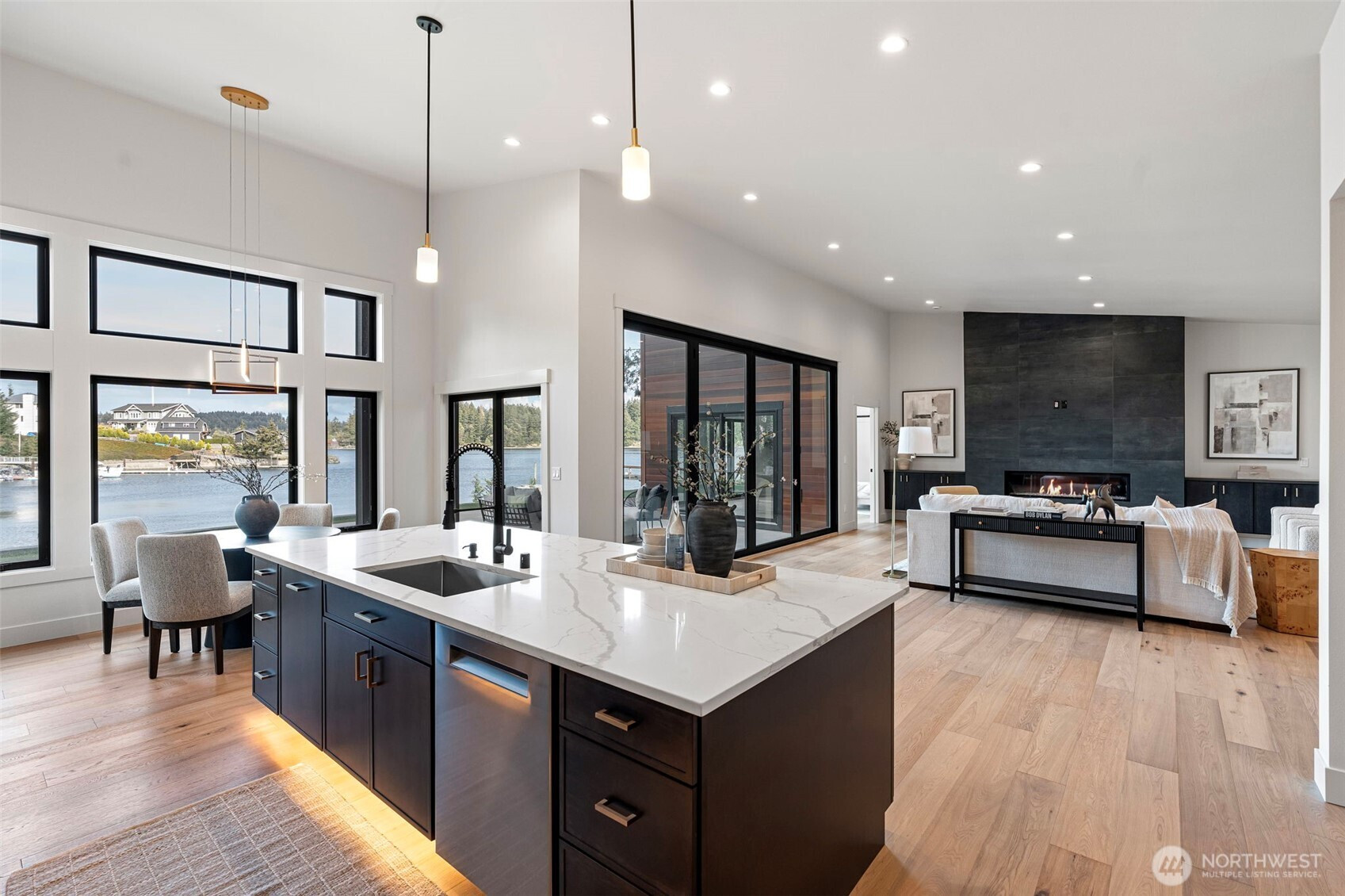 With views of the shimmering Puget Sound & the Pacific Northwest’s natural beauty waiting to be admired at every turn, this one-level Fox Island masterpiece is a true work of modern art. Just shy of an acre, this property is perfectly positioned with a sprawling lawn that unfolds to low-bank waterfront. Seamless access to the beach & your private dock makes it easy to enjoy the water whenever the mood strikes. Epic entertaining, vacation-inspired days, & luxurious relaxation are all on the horizon here! Dramatic architecture meets intentional design, & resort-worthy amenities offer a grand backdrop for all that life brings your way. Walls of windows invite the outside in, built-ins enhance functionality & character, & rich textures complement high-end finishes throughout. The pristine, chef-ready kitchen features a walk-in pantry, while expansive dining shows off room to host a crowd. Unwind in the sumptuous primary suite, indulge in the serene ensuite bath, & don’t miss the absolutely enviable walk-in closet. Discover flexibility galore—create the home office & dedicated hobby space you’ve been dreaming about! Plus, an attached 3-car garage provides even more convenience. Just moments to the Fox Island Bridge with Gig Harbor right next door. No more than 10 minutes to Highway 16, shopping, dining, entertainment & more. Bring your aspirations & embrace the lifestyle you’ve been envisioning!