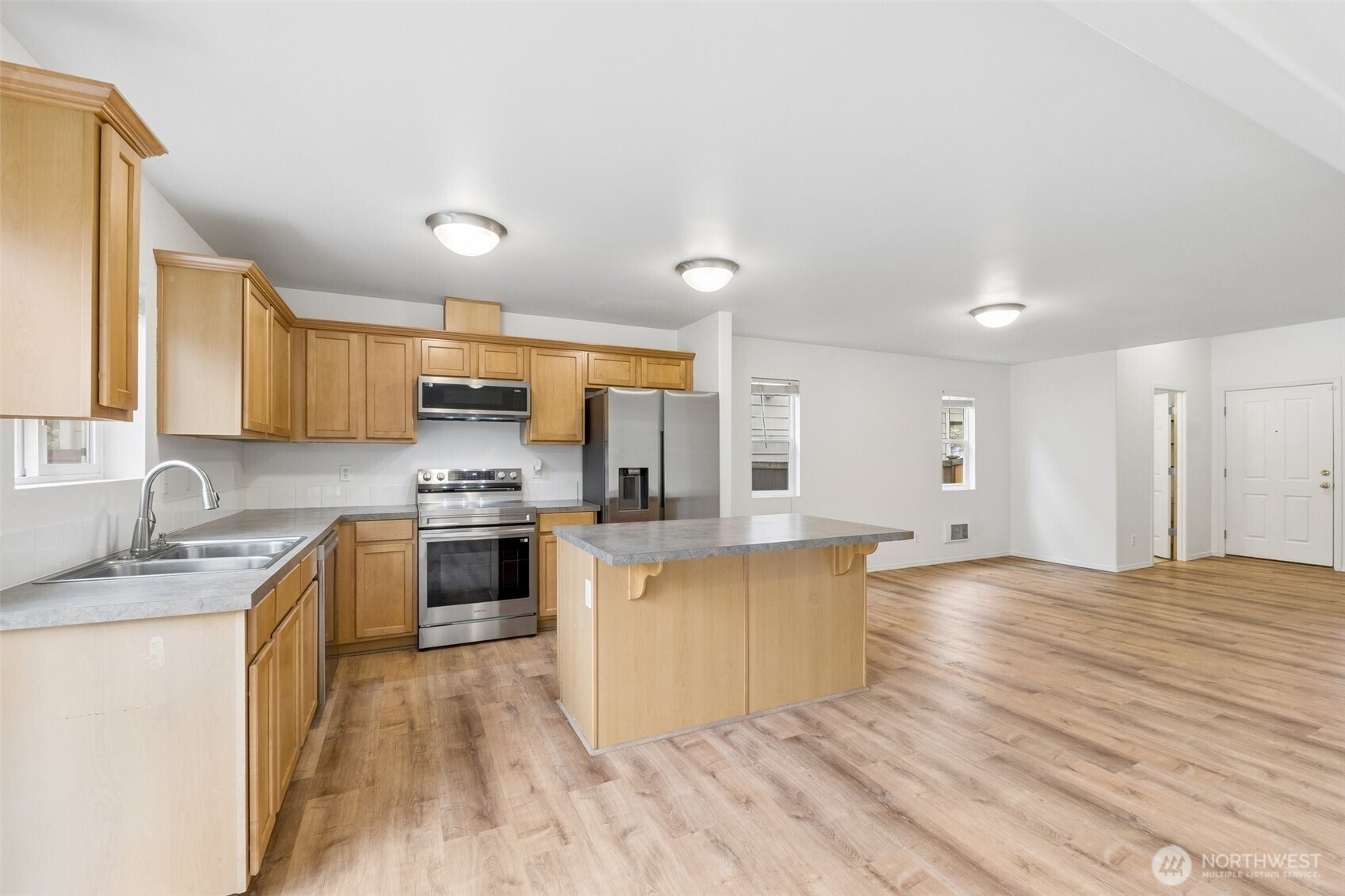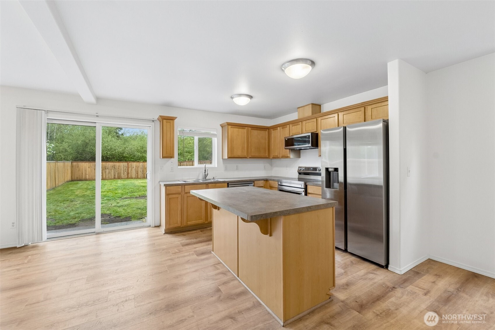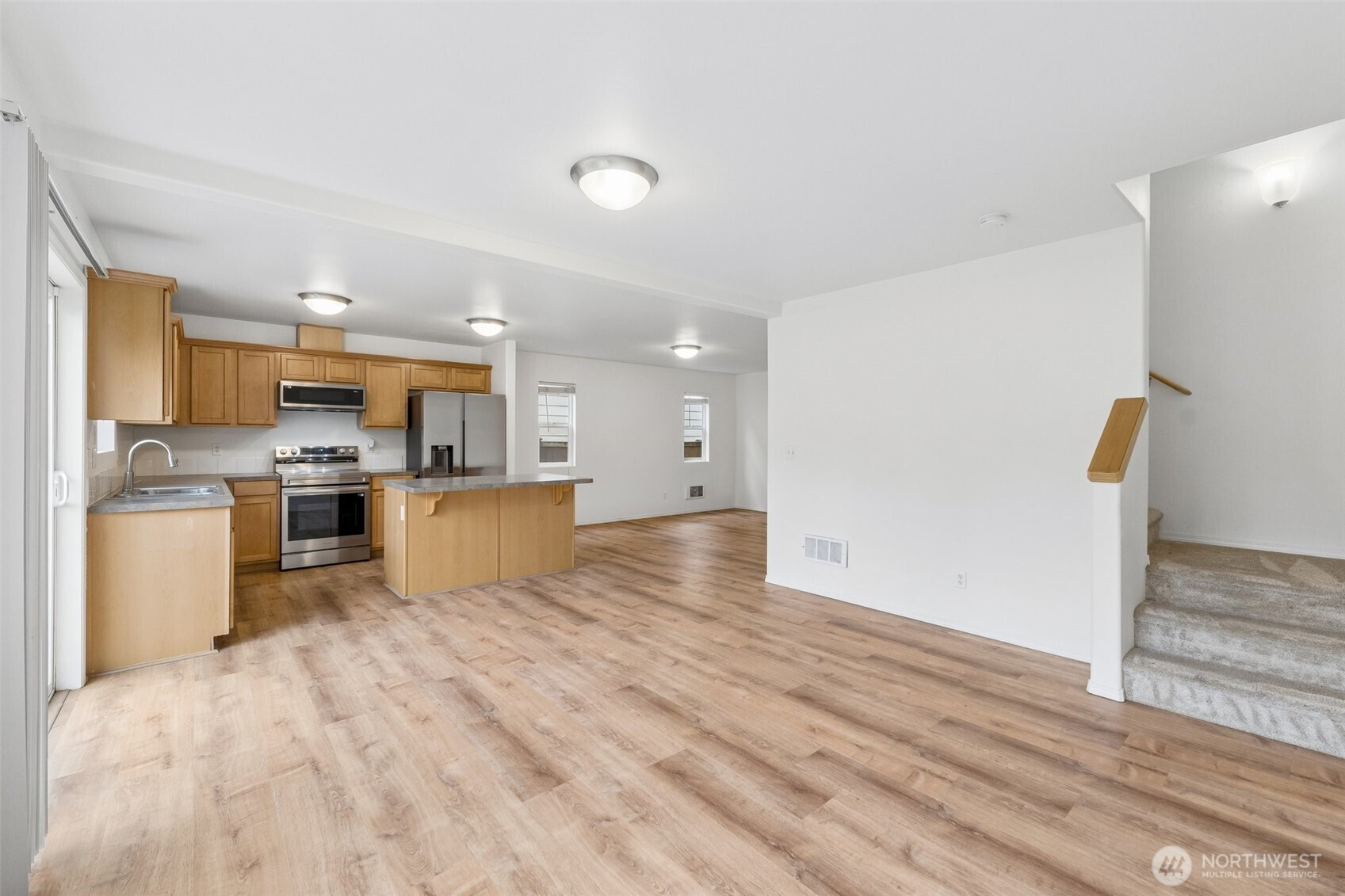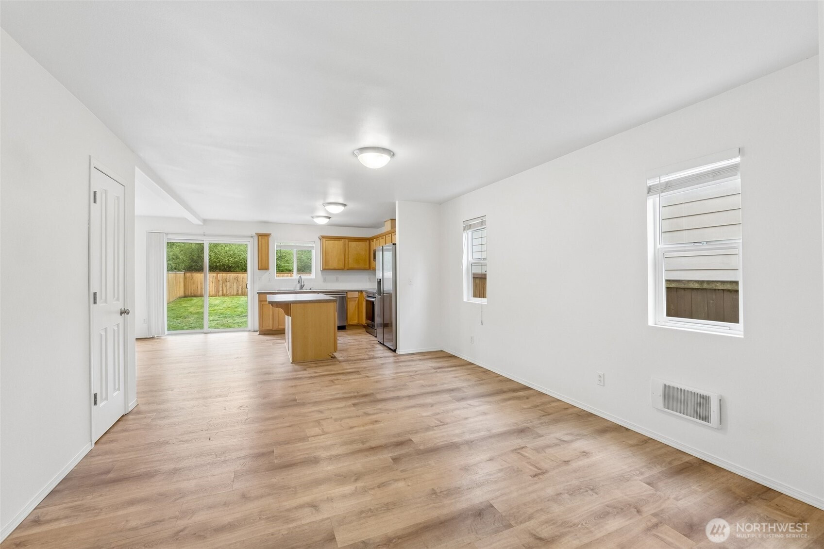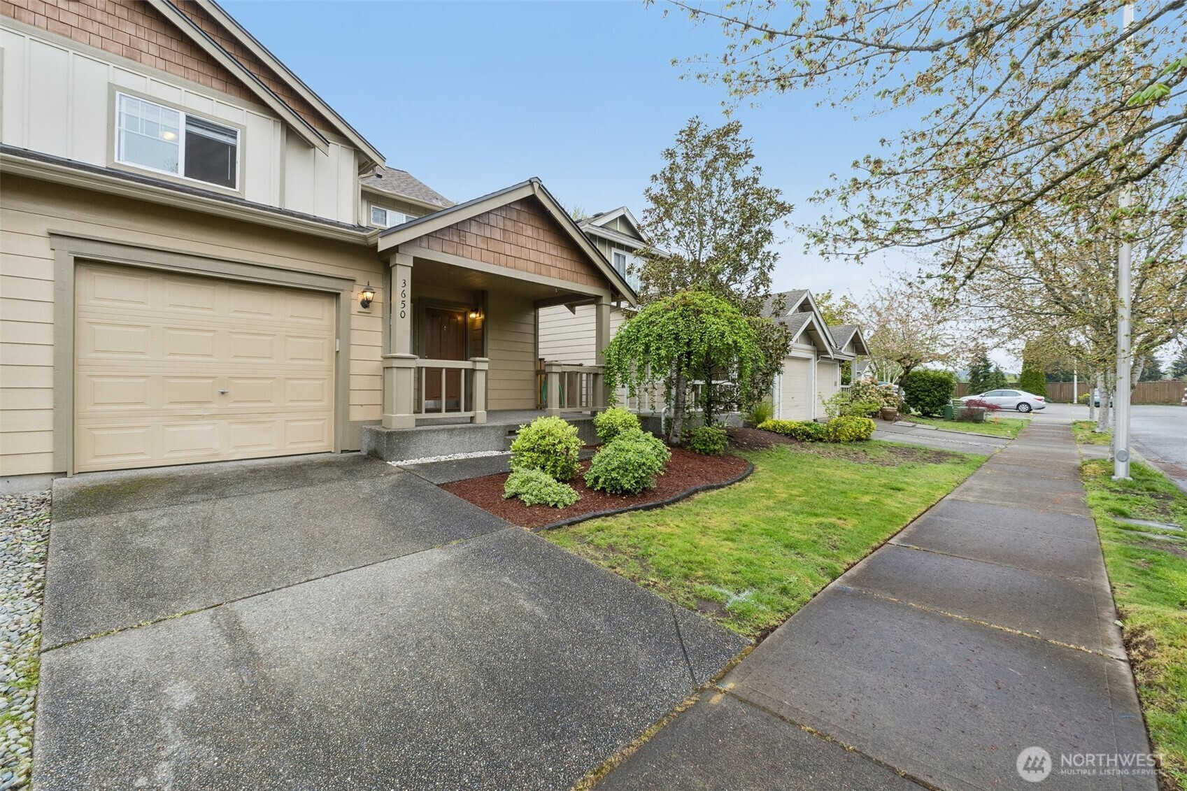 Welcome home to this beautifully maintained retreat perfectly positioned on a quiet dead-end in Radiance Community. The main floor features an expansive, open-concept living and dining area with sleek LVP flooring and a modern kitchen equipped with stainless appliances. Upstairs, you’ll find two spacious bedrooms, each boasting its own private full bath, alongside a convenient laundry room. Enjoy the fresh feel of newer carpeting throughout the upper level and stairs. The outdoor space is a true standout, offering a large, level and fully fenced backyard that borders a peaceful green belt for ultimate privacy. With a private garage, additional off-street parking, easy I-5 access and a stunning mountain view right from your front porch, this home offers the perfect balance of serenity and accessibility. Welcome Home!