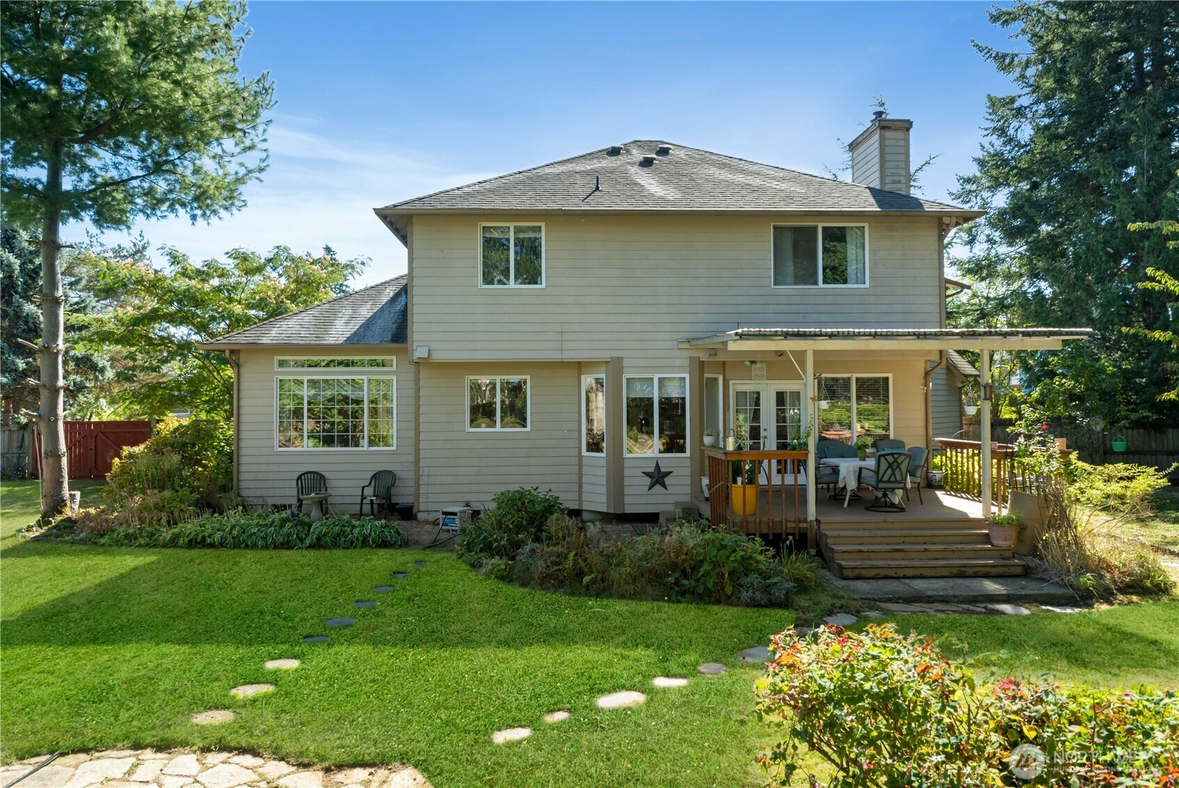 Come enjoy all this estate has to offer! This is a gardener's Paradise! 1+ ac beautifully landscaped, RV parking, shed, fire pit, fruit trees, grape arbors, vegetable garden, chicken coop & more! Inside you'll find a bright vaulted entry, formal living & dining room, updated kitchen w/granite counters that opens up to the family room w/wood burning stove & French doors that open to the back covered deck. Downstairs office. Upstairs you'll find 3 bedrooms PLUS huge bonus room over the garage. Large master w/walk-in closet. This was the neighborhood model home and loaded with upgrades including crown molding throughout! Heat pump keeps you warm in the winter and cool in the summer while saving you $$!