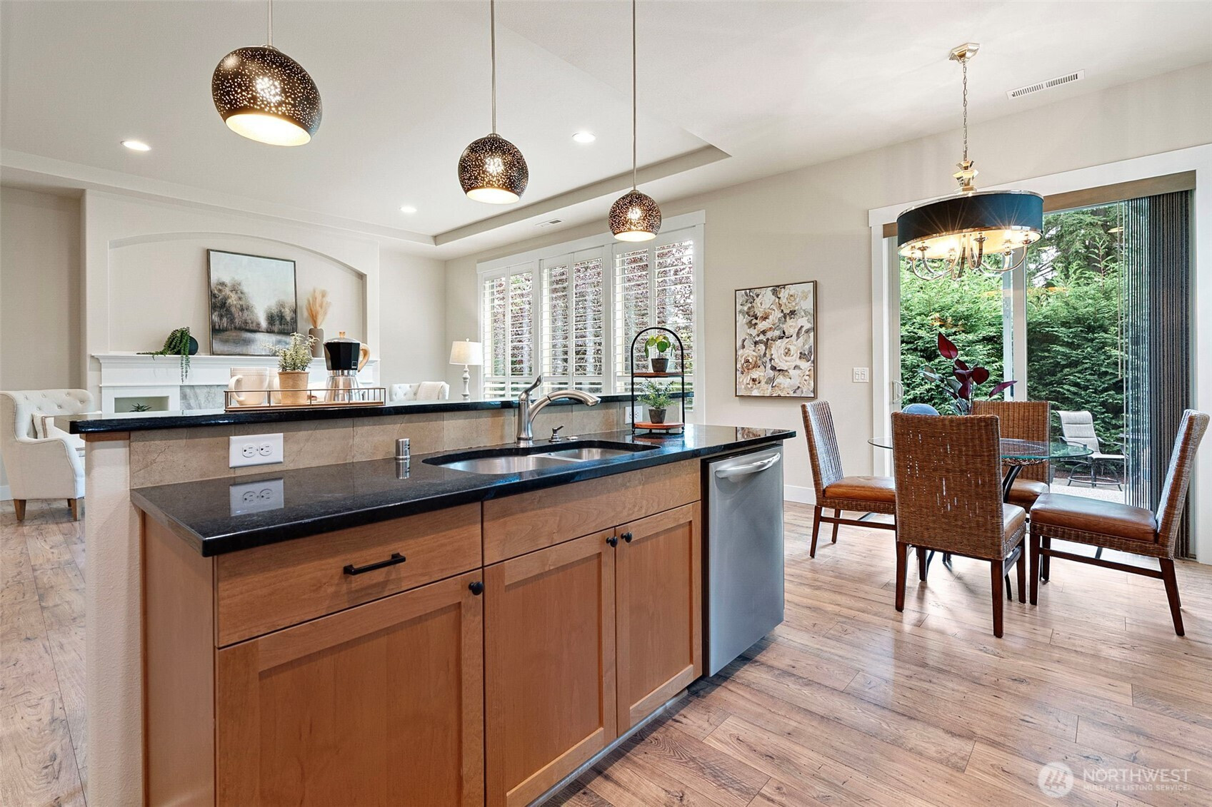 Come home to this sophisticated single-level beauty! Set in the newer Fox Run neighborhood, you are within minutes of downtown Gig Harbor and Uptown shopping/dining. This home features a layout that is spacious in all the right places. From the inviting living/dining room with eye-catching fireplace, to the gourmet kitchen with double oven and island perfect for entertaining, from the airy primary suite with gracious walk-in closet and luxurious soaking tub, to the fully-fenced yard with patio, it's creature comforts galore. Two guest bedrooms, guest bath, and den off entry ensure plenty of space! Garage is equipped with electric car charger. This house comes with a complimentary one-year home warranty. See yourself here!