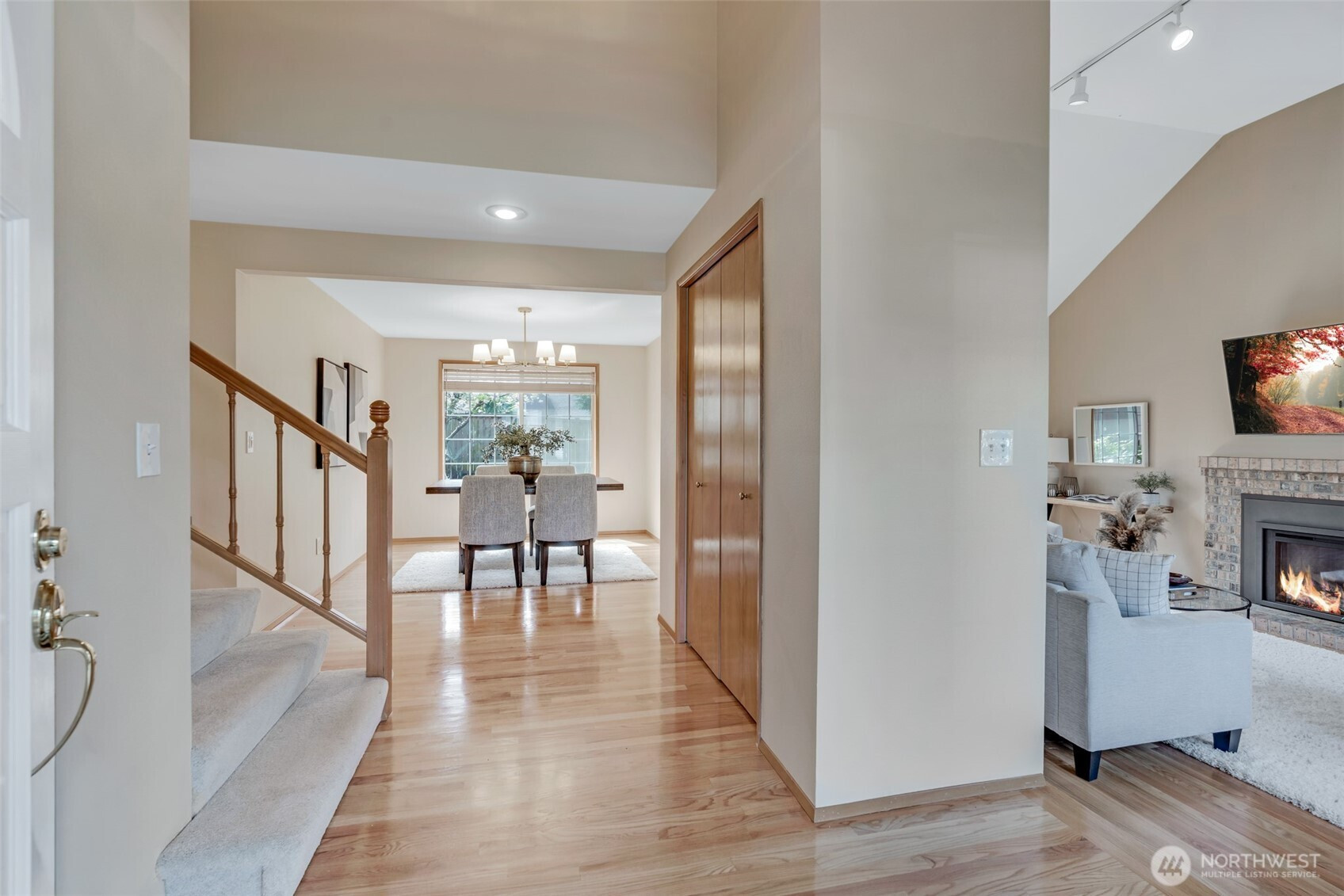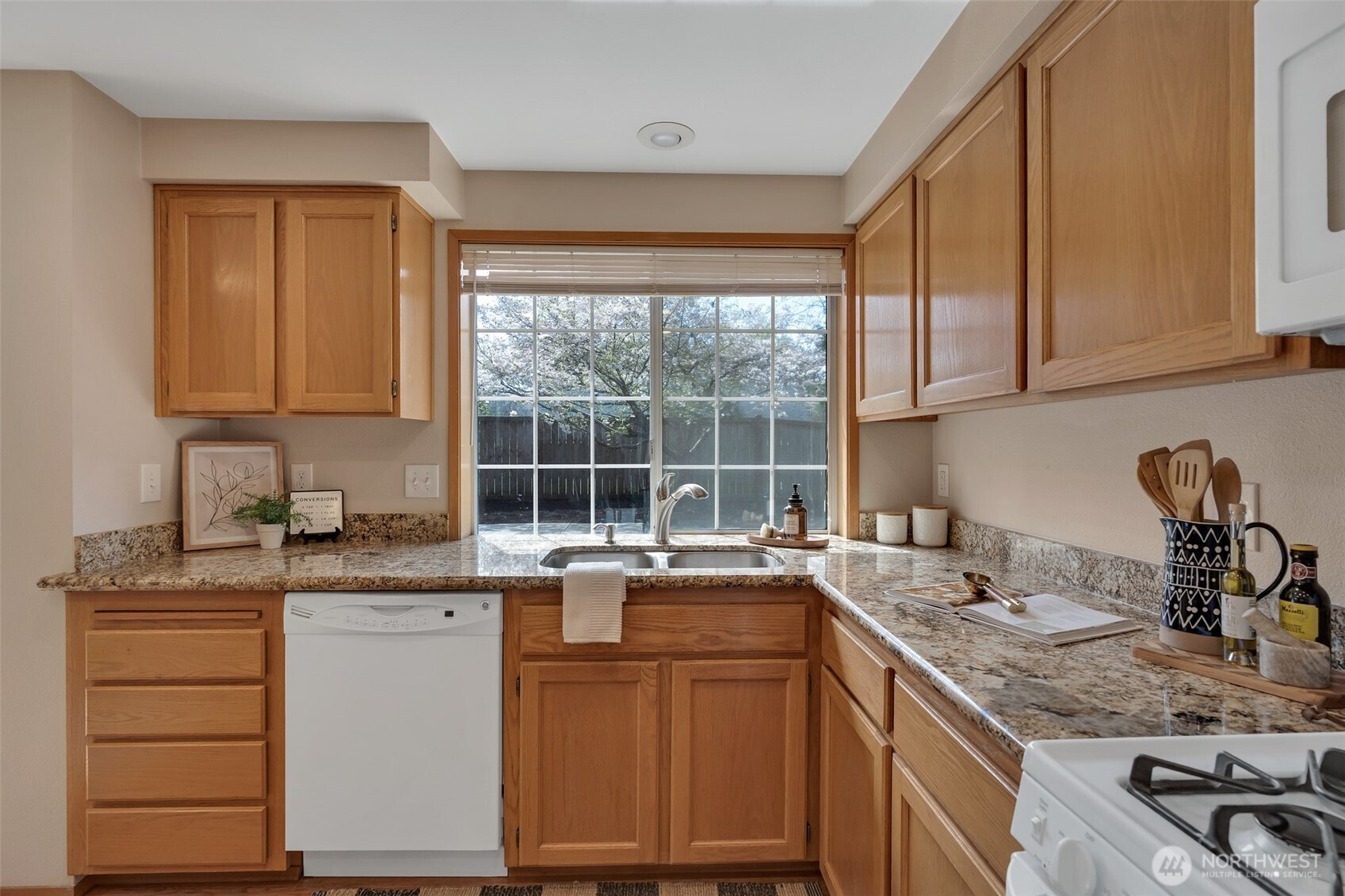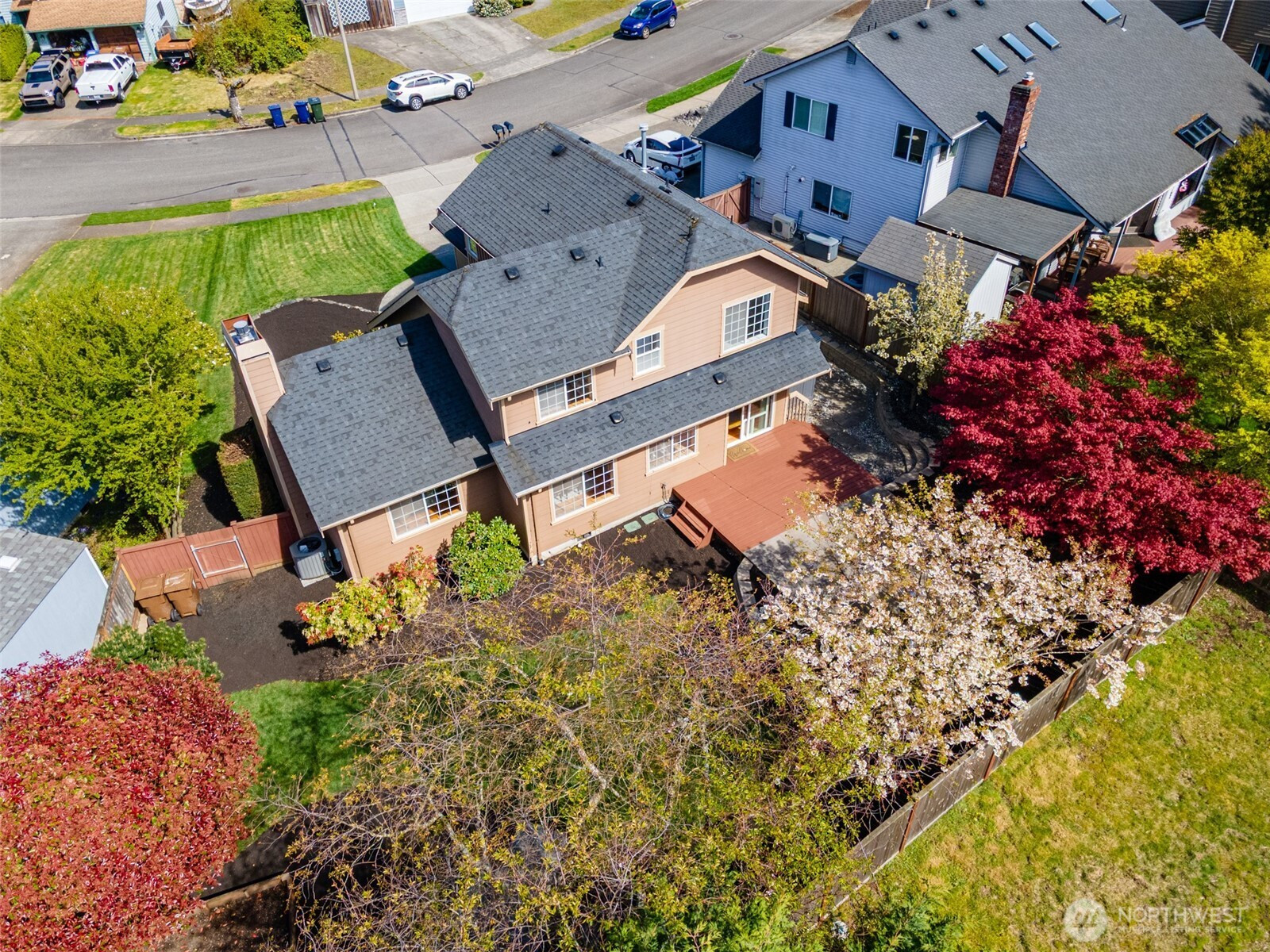 Beautiful two-story home in sought-after Browns Point! A manicured front lawn and lush garden create a warm, welcoming first impression. Inside, gleaming hardwood floors span the main level, leading to a light-filled formal living room with vaulted ceilings, expansive windows, and a cozy brick-surround fireplace.Just steps away, the formal dining room sits off the kitchen-ideal for entertaining. The spacious kitchen features slab granite countertops, warm oak cabinetry, a large garden window, and a peninsula with an eating bar. An eat-in area opens to the back deck for seamless indoor-outdoor living, while the adjacent family room offers a comfortable gathering space.The utility room includes extra cabinetry for added storage. Upstairs, the primary suite offers a generous walk-in closet and private ensuite bath with dual sinks and a shower/tub combo. Two additional bedrooms and a full bath complete the upper level.Enjoy the fully fenced, private backyard with an expansive deck, patio, two storage sheds, sprinkler system, and dedicated garden space. Lovingly maintained, this home also features newer A/C and a hot water heater for added comfort and peace of mind.