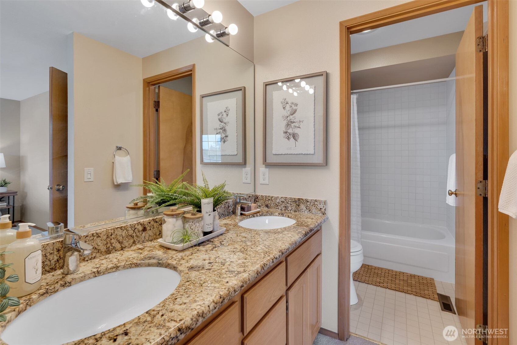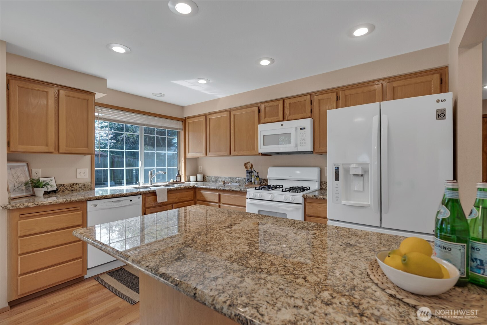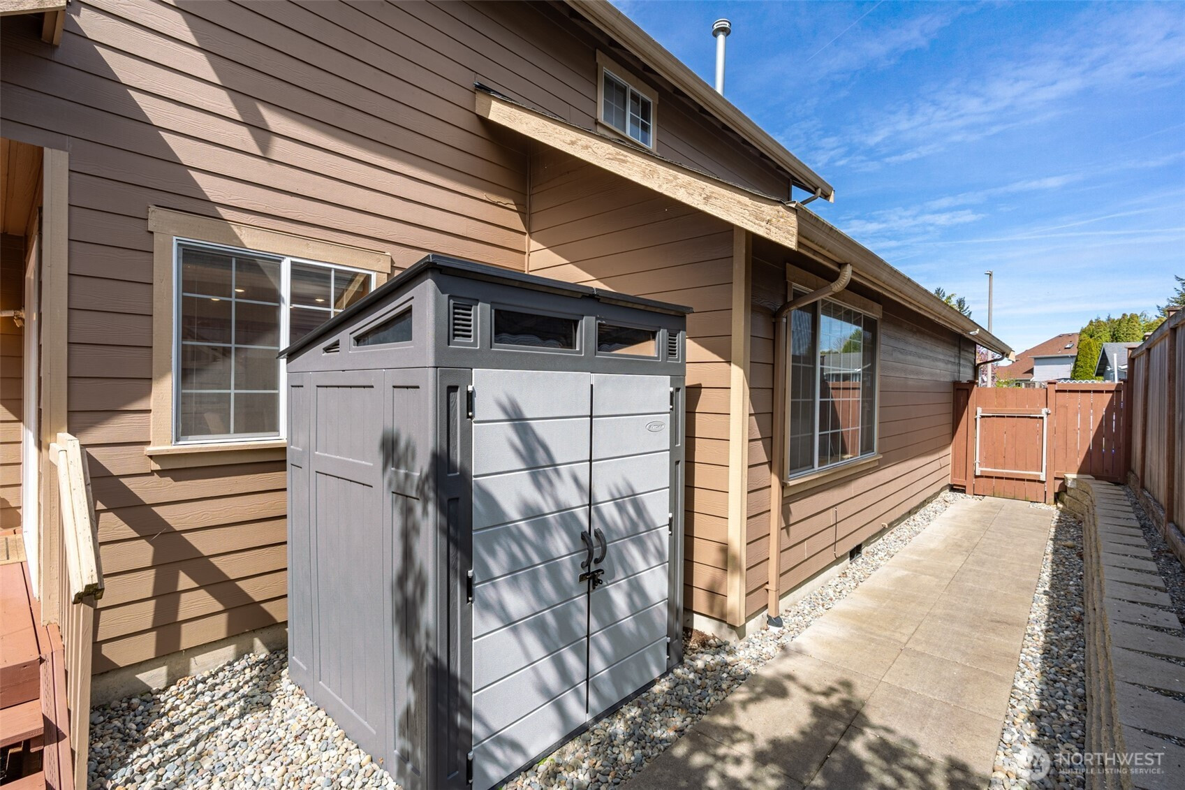 Beautiful two-story home in sought-after Browns Point! A manicured front lawn and lush garden create a warm, welcoming first impression. Inside, gleaming hardwood floors span the main level, leading to a light-filled formal living room with vaulted ceilings, expansive windows, and a cozy brick-surround fireplace.Just steps away, the formal dining room sits off the kitchen-ideal for entertaining. The spacious kitchen features slab granite countertops, warm oak cabinetry, a large garden window, and a peninsula with an eating bar. An eat-in area opens to the back deck for seamless indoor-outdoor living, while the adjacent family room offers a comfortable gathering space.The utility room includes extra cabinetry for added storage. Upstairs, the primary suite offers a generous walk-in closet and private ensuite bath with dual sinks and a shower/tub combo. Two additional bedrooms and a full bath complete the upper level.Enjoy the fully fenced, private backyard with an expansive deck, patio, two storage sheds, sprinkler system, and dedicated garden space. Lovingly maintained, this home also features newer A/C and a hot water heater for added comfort and peace of mind.