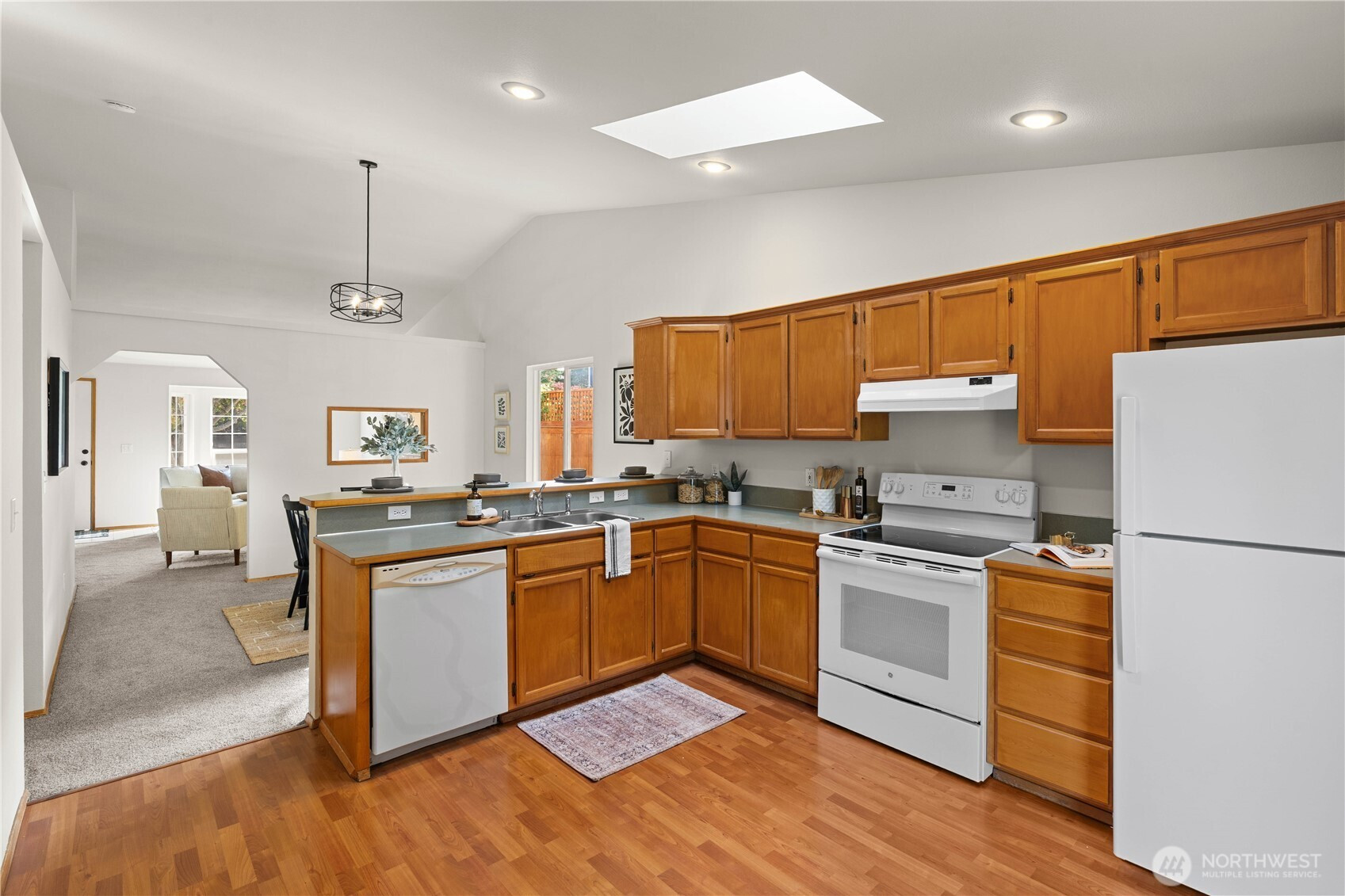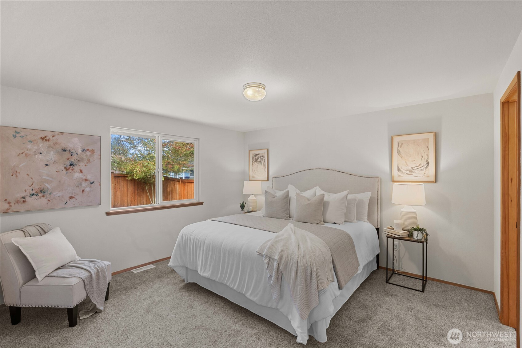 Move-in ready rambler nestled in a peaceful community! Step inside to a welcoming living room with bay windows and cozy gas fireplace, a separate dining room, and a spacious kitchen with ample counter space. Recent upgrades include new carpet, fresh interior and exterior paint, new laminate flooring in the bathrooms, and updated light fixtures in the dining room and baths. The primary suite offers its own private bath, while the fully fenced yard provides plenty of room to play, relax, and enjoy the outdoors in privacy. Ideally located near shopping, freeway access, parks, golf, and hiking trails—come discover all that NE Tacoma has to offer!