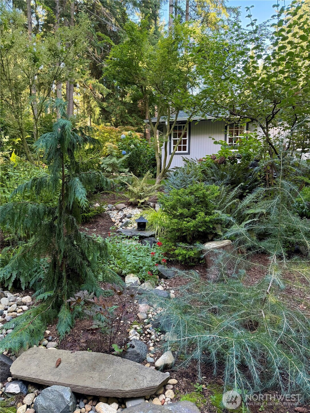 A Gardener's Dream Come True! Large Private Professionally Landscaped Lot w/Lush Lawns, Gorgeous Flowers/Bushes in Every Color Thoughtfully Planned Out to See Color All Year Long w/Large Deck to Enjoy it All, Backed to Greenbelt Forest w/Trail System leading all the way down to the Park. Large Lovely Updated 3 Bedroom Rambler Does Not Disappoint Inside Either w/Remodeled Chef's Gourmet Kitchen w/Granite Counters, Custom Cabinets, Breakfast Bar & Stainless Steel Appl's, Fabulous New Bathrooms, Huge Open Floor Plan Filled w/Light from Several Picture Windows & Skylights, Stunning Rustic Wood Trim & Beams w/Family Room w/Woodstove & Living Room w/Fireplace for Economical Heating, Air Conditioning for Warm Summer Days, Big Primary Suite w/Private Bath & Double Closets, New Roof, New Paint & Carpet, Huge Utility Rm & Oversized Garage.