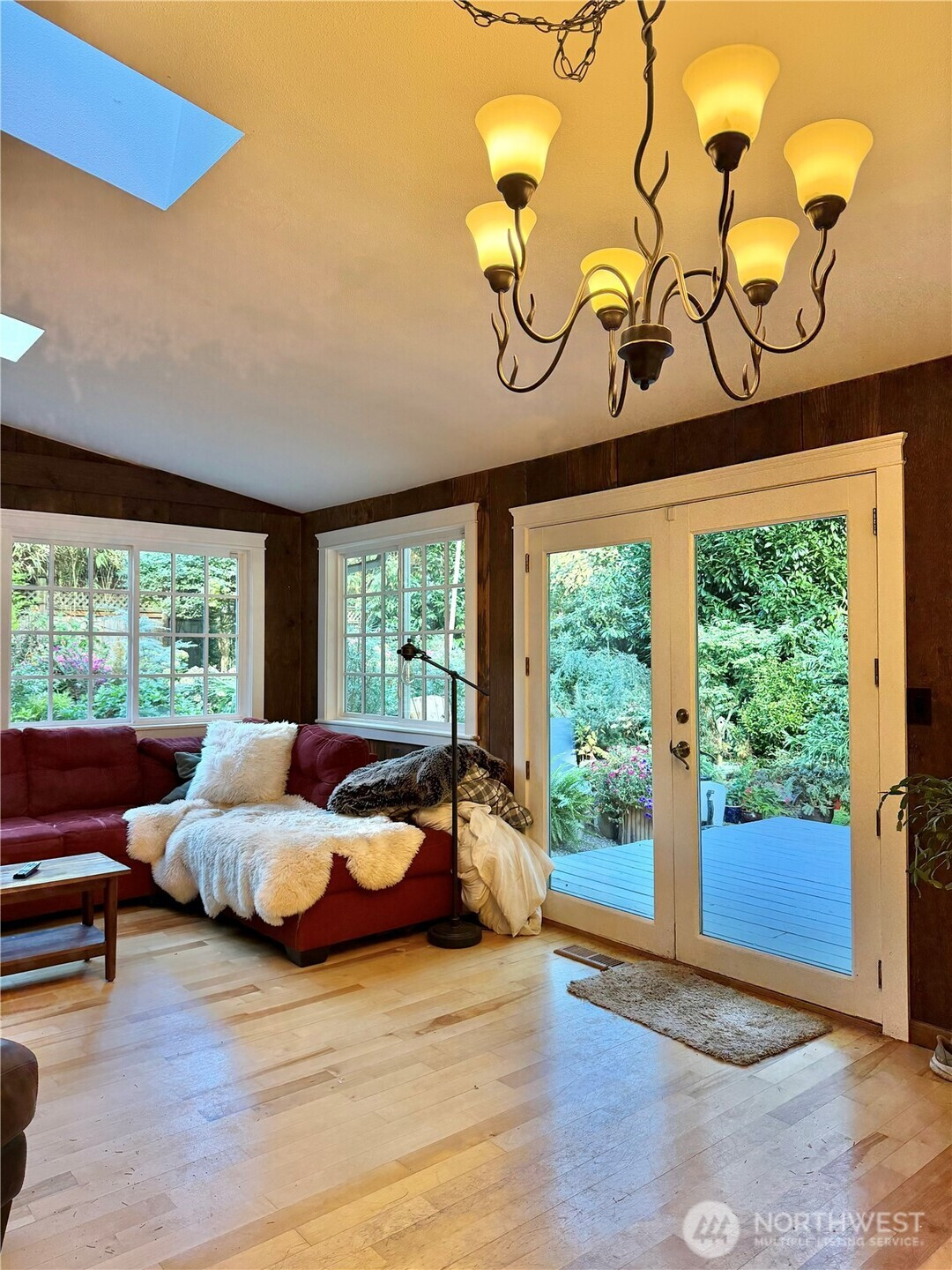 Bath Off Primary, Ceiling Fan(s), Dining Room, Fireplace, French Doors, Skylight(s), Vaulted Ceiling