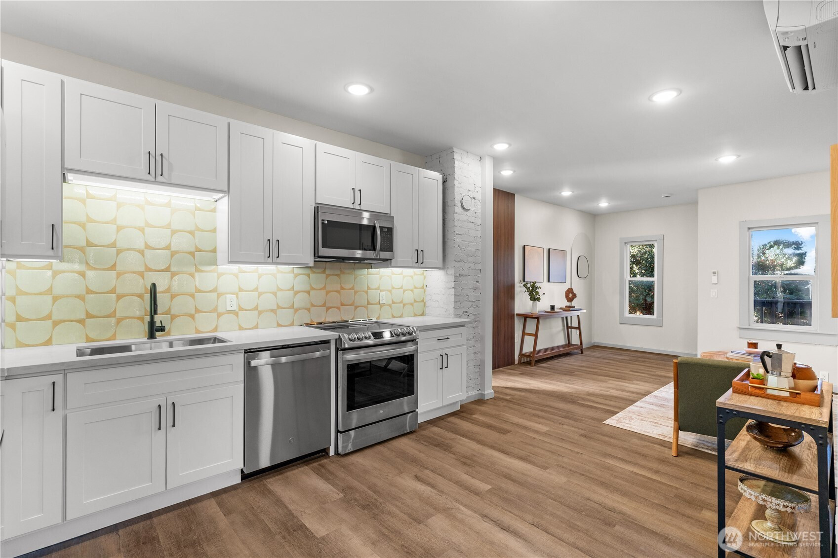 Turn-Key 3 unit triplex could be used as short/mid-term rental as all staging items can be written into any offers, and it is just a block away from Lincoln district shopping and restaurants. All units remodeled middle and lower units 2 bed / 1 bath, upper unit 1 bed / 1 bath, all units have separate in unit laundry, high end kitchens and bathrooms, plus extra design features unique to each unit. Newer electrical, plumbing, insulation, roof, windows, ductless mini splits provide heat and AC to middle and upper units. Brand new quartz counters, solid soft close cabinets, LVP flooring, vanities, custom light fixtures, no maintenance issues for a long time, fully separated electric and gas meters, 4 off street parking spots and a detached 2 card garage!
