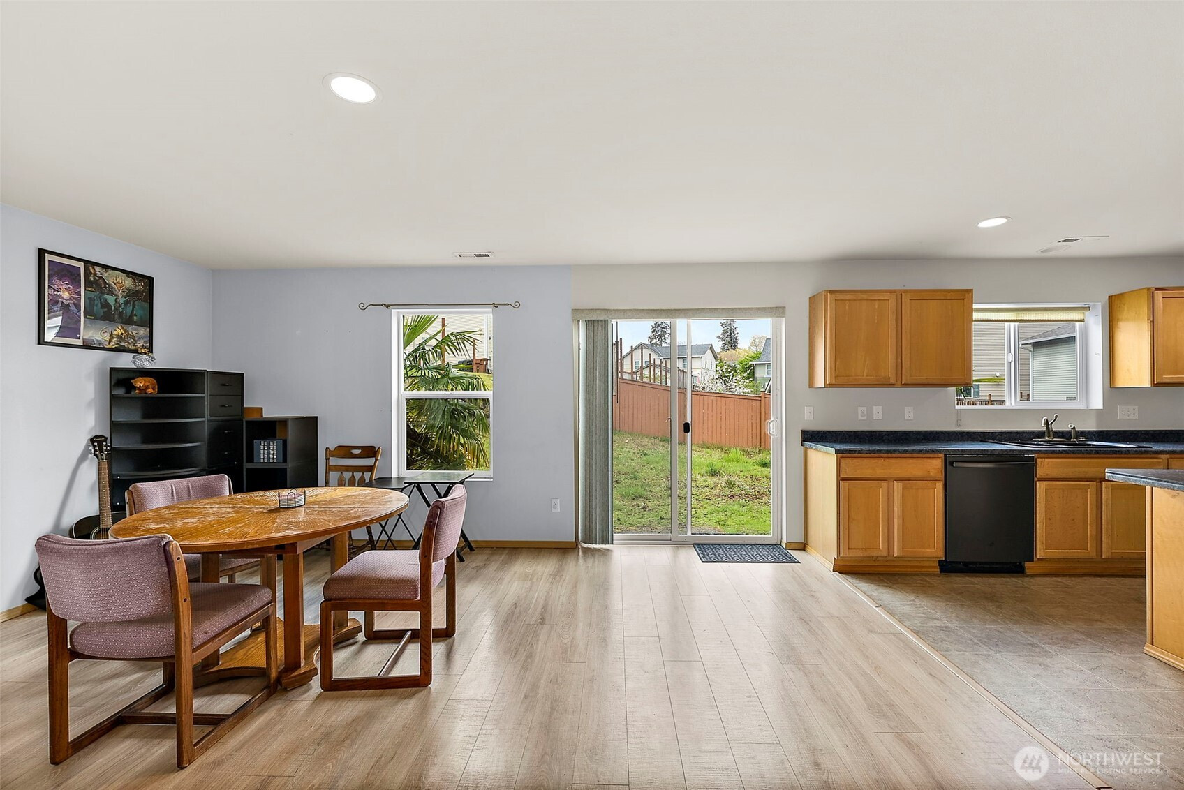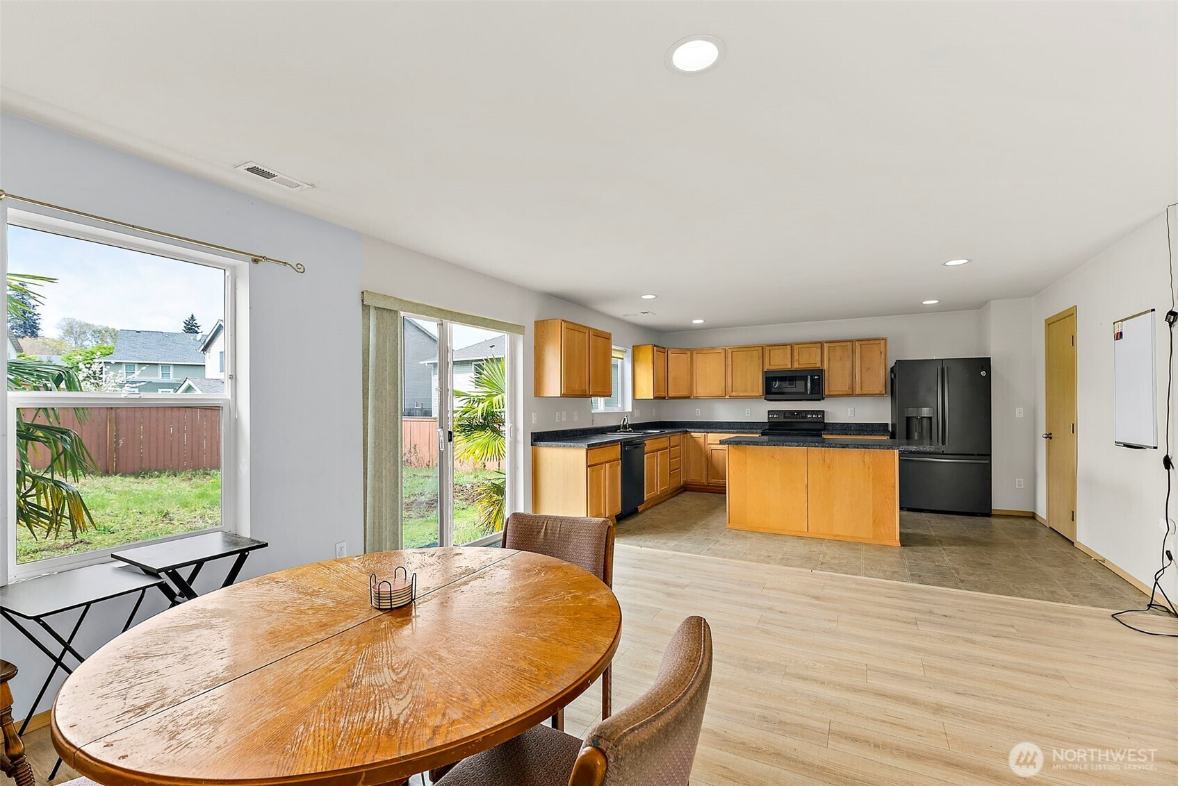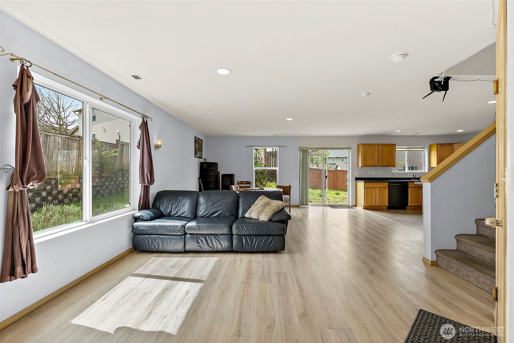 Quiet, move-in ready, and spacious, this 3-bedroom, 2.5-bath home has it all. The open-concept main floor is perfect for entertaining, featuring durable luxury vinyl plank flooring and a bright, inviting layout. The large kitchen offers a generous island, updated appliances, and a brand-new dishwasher. Step outside through the sliding door to a huge, sunny backyard, ideal for BBQs, gatherings, and everyday enjoyment. Upstairs, you’ll find a versatile loft space, convenient laundry closet, and three spacious bedrooms. The west-facing primary suite captures beautiful sunset views and features a large ensuite bath and an oversized closet. Additional highlights include a new furnace and a 1-year home warranty (up to a $400 value). Conveniently located with easy access to I-5, parks, and dining. Price Correction coming to $499,999 Don’t miss this opportunity!
