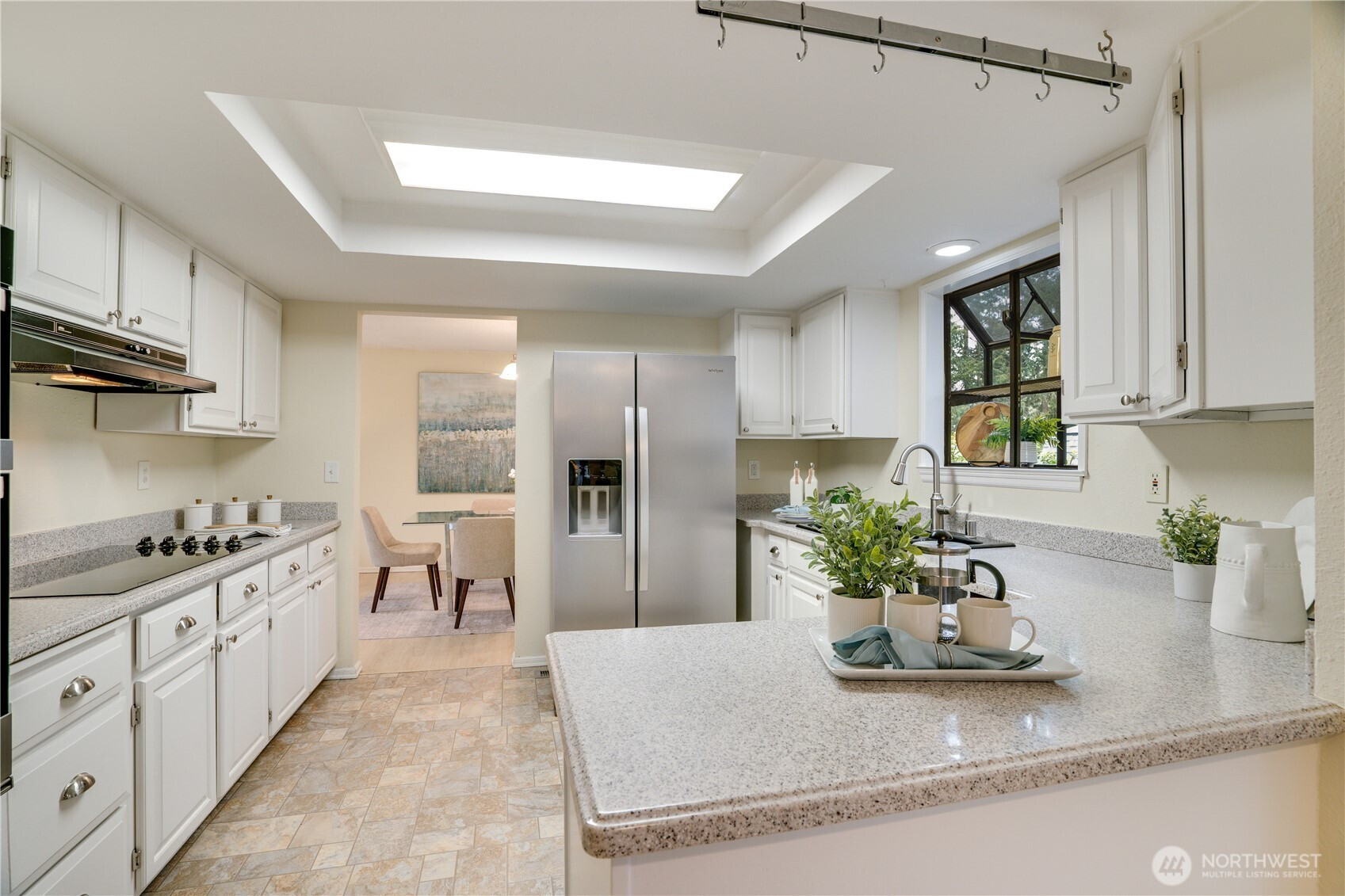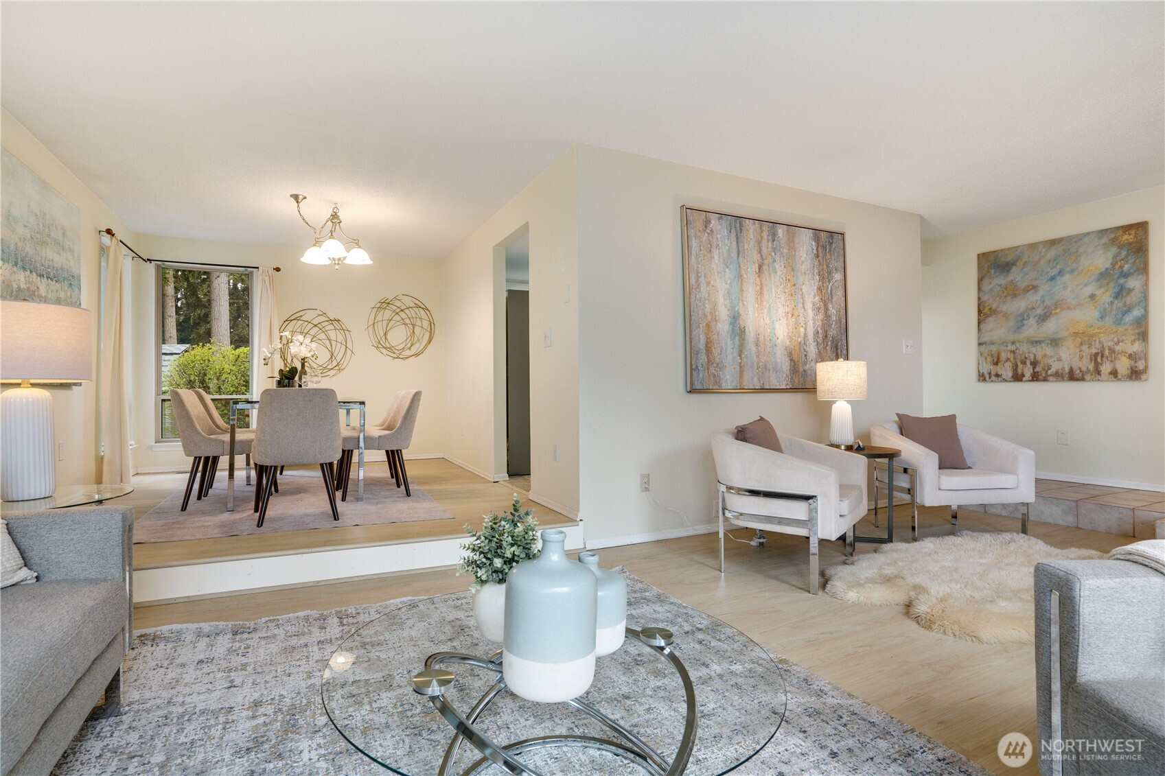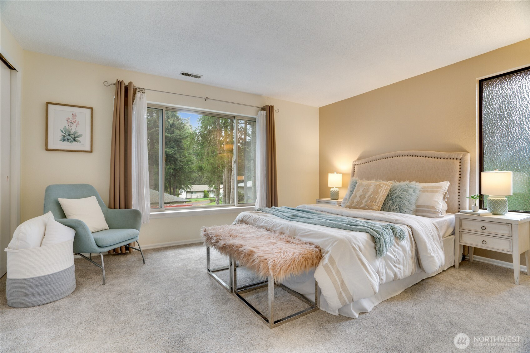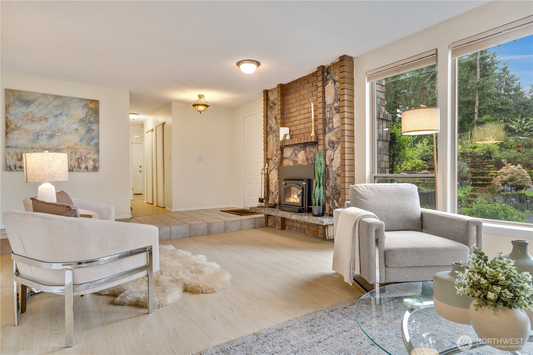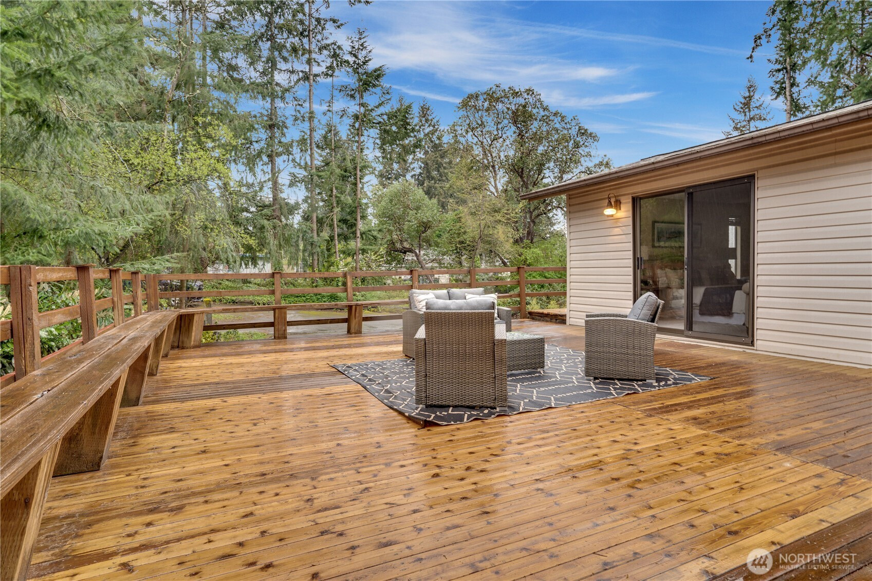 Immaculate and truly turn-key 3-bedroom, 2 bath home in a private setting within the highly sought-after University Place School District. Ideally located with easy access to Trader Joe’s, Whole Foods, Chamber's Bay Golf Course & Park, and everyday conveniences, this home offers both comfort & convenience. Thoughtfully updated throughout, providing peace of mind for years to come, including a newer furnace & heat pump, roof, hot water tank, fireplace insert, appliances, and more. The kitchen has been beautifully refreshed with refinished cabinets, & updated flooring, while fresh interior paint and new carpet create a clean, inviting feel. The functional floor plan offers multiple living spaces, including a welcoming living room, formal dining area, & additional living space off the kitchen eating area to fit your needs. Upstairs, the primary bedroom opens to an expansive ~700 sq ft deck with built-in seating, perfect for entertaining or relaxing while enjoying the privacy of the setting. Enjoy the perfect blend of privacy, convenience, and lifestyle, just moments from top-rated schools, local amenities, and the best of University Place living. Home warranty included.