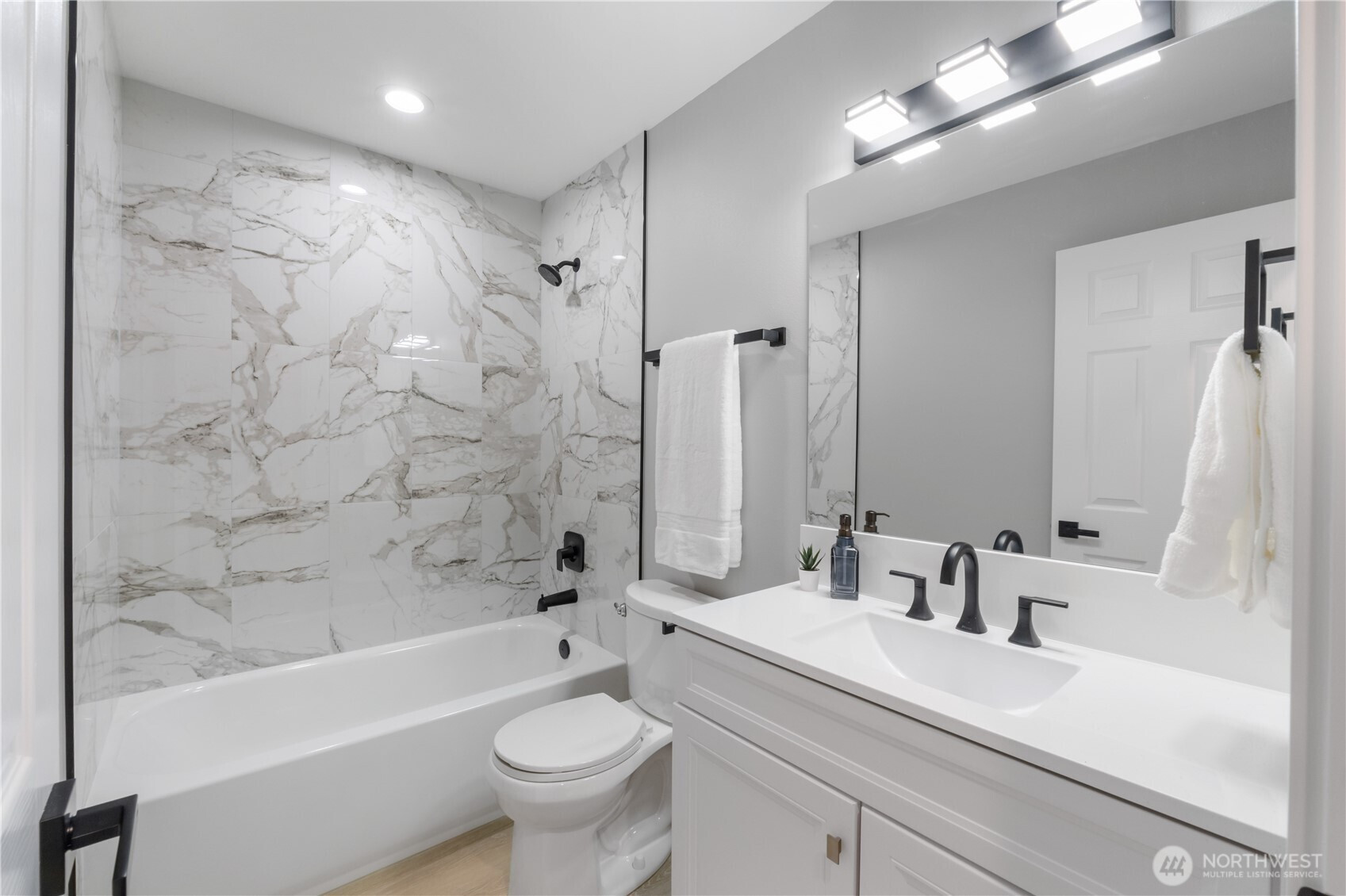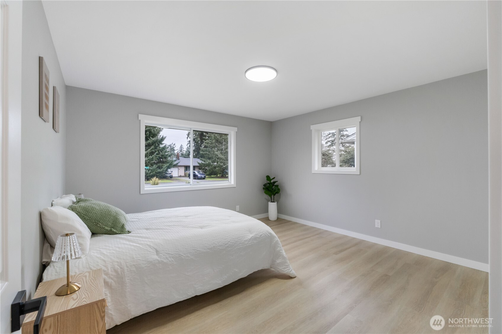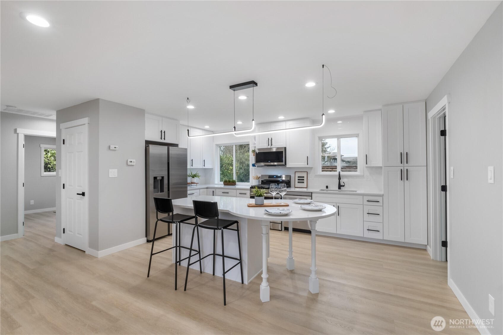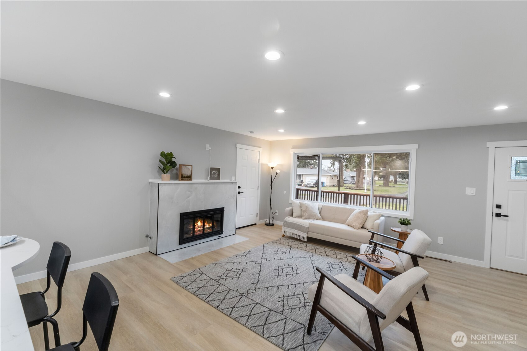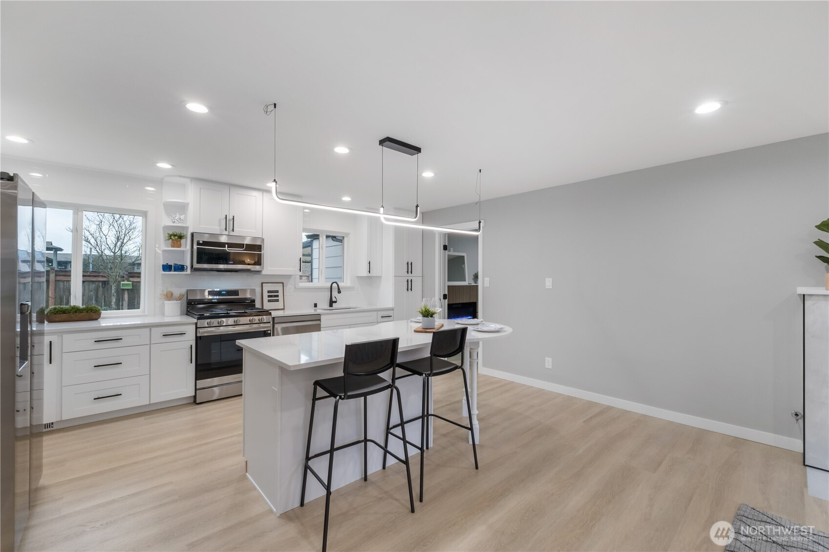 Welcome to this beautifully renovated home offering modern updates, thoughtful design, and everyday comfort. The open floor plan creates a bright and inviting living space that flows seamlessly into the updated kitchen, featuring shaker-style cabinets, quartz countertops, stainless steel appliances, and new waterproof luxury flooring throughout. The home includes three bedrooms, highlighted by a spacious primary suite, along with two fully updated bathrooms showcasing tile shower walls and quality finishes. Recent upgrades provide peace of mind and efficiency, including new plumbing, an updated electrical panel, top-quality interior paint, a tankless water heater, whole-house air conditioning, and an EV charger. Outside, enjoy a fully fenced and beautifully landscaped backyard complete with a tranquil water feature—ideal for relaxing or entertaining. Parking is convenient with a one-car garage plus a covered carport that can also be used for RV parking. This move-in-ready home combines style, functionality, and modern convenience in a setting designed to be enjoyed year-round.