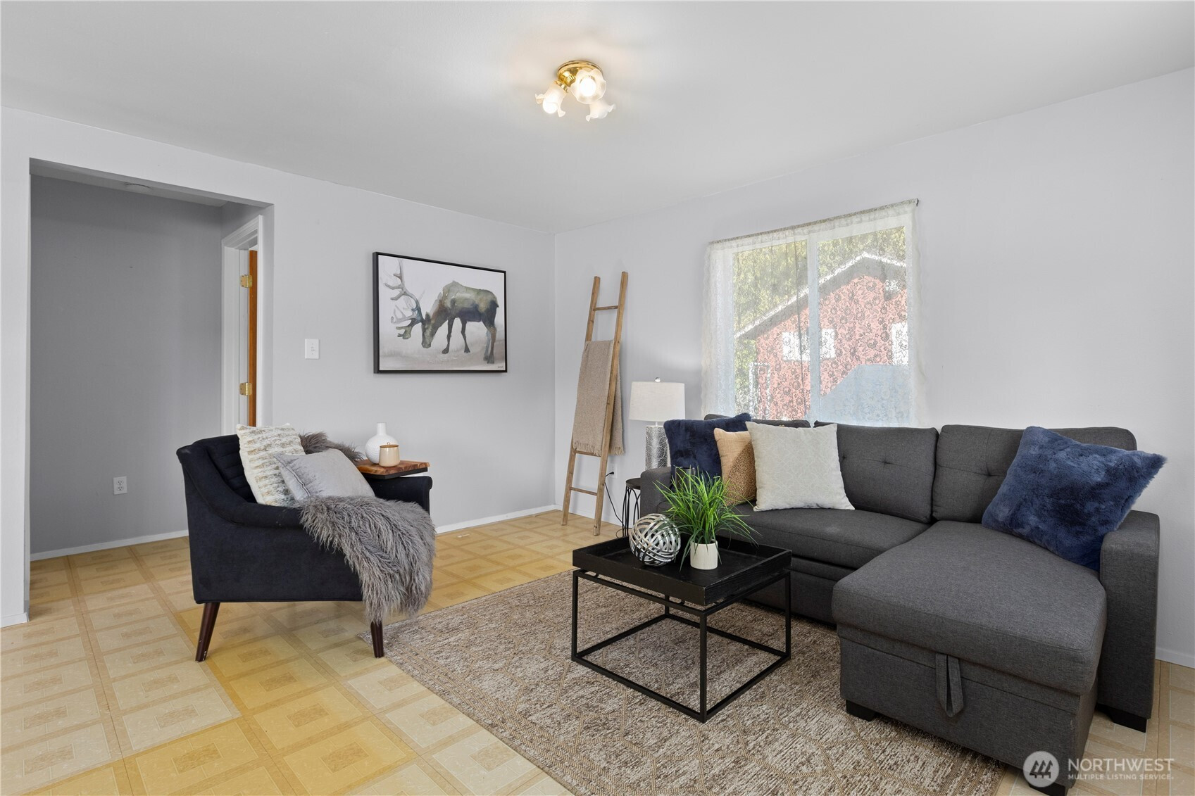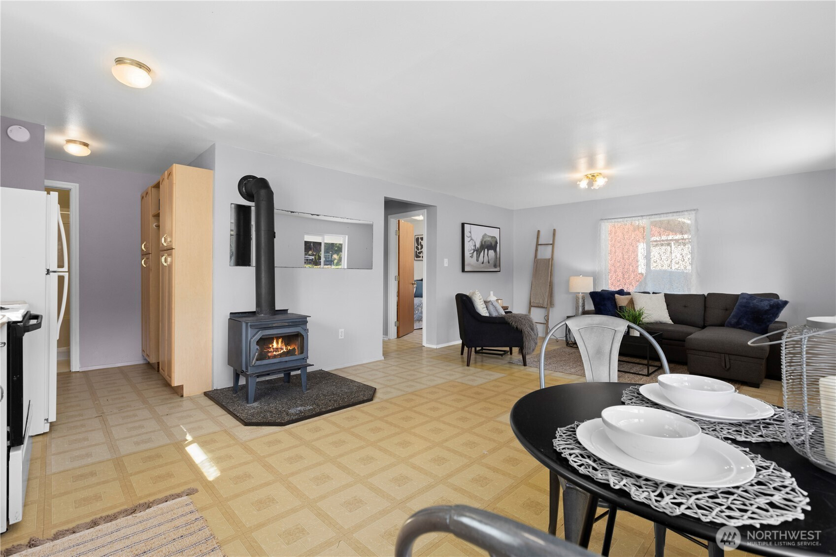 A rare opportunity to own 60 feet of no-bank waterfront on coveted Ohop Lake. This charming 1-story cottage is perfectly positioned to capture wide, panoramic lake views and open green space. Inside, you’ll find a bright, easy layout with an open living and dining area centered around a cozy wood stove. Two bedrooms and a ¾ bath keep things simple and comfortable. Step outside to the east-facing wraparound deck, your front-row seat to sunrise coffee, birdsong and glassy morning water. The expansive dock invites long summer days of boating, paddleboarding, or simply relaxing at the lake’s edge. Thoughtful updates include a newer septic (‘25), hot water tank, private well, and fresh exterior paint (‘23). Just about an hour from Seattle it's the perfect balance of escape and convenience. Low-maintenance living, it’s ideal as a personal getaway or year-round vacation rental income. Ohop Lake’s ski hours (11:00am–3:30pm) bring the fun when you want it, while mornings and evenings are reserved for peaceful cruising at 8mph or less. If you’ve been waiting for a true lakelife, this is it!