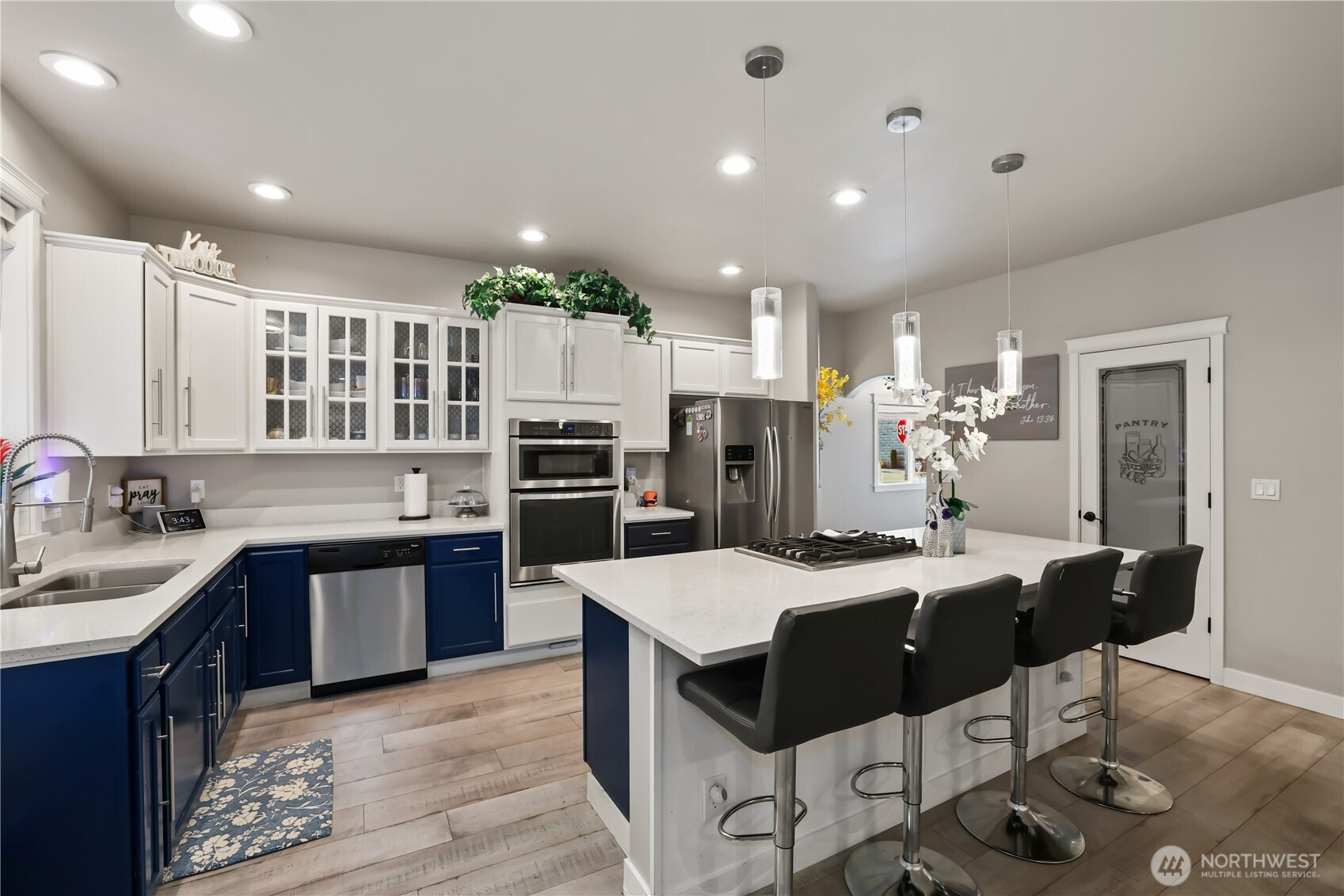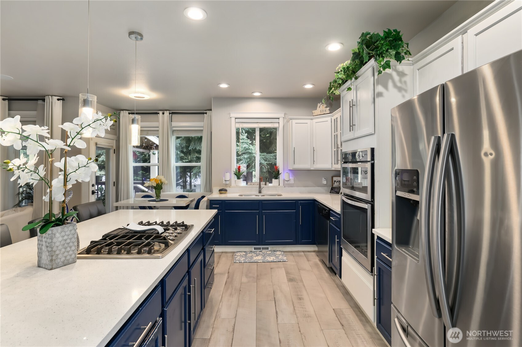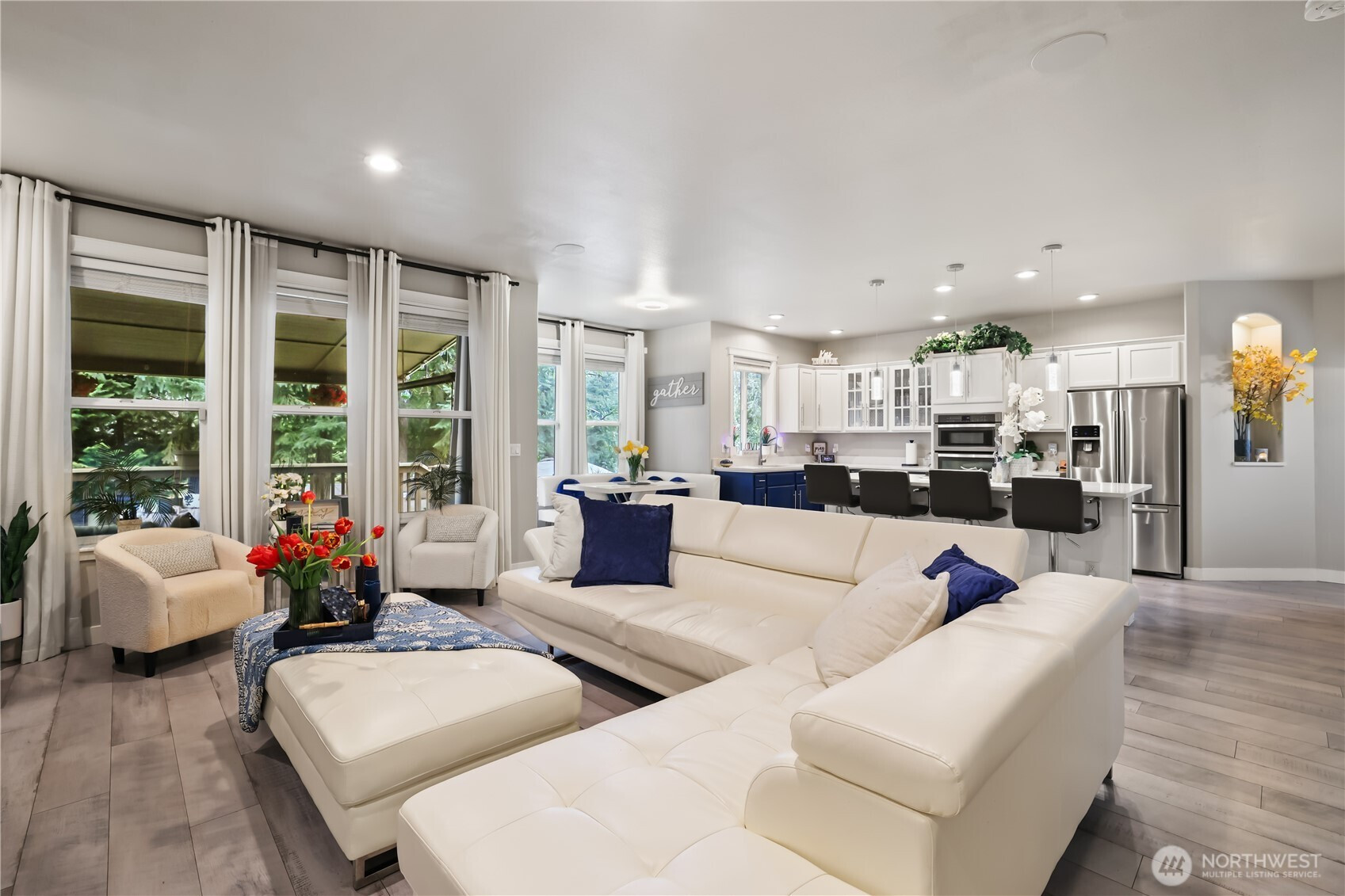 Welcome to this beautifully updated home in the sought-after Villages at South Hill—where space, style, and functionality come together. With 2,688 sq ft, 4 bedrooms, 2.5 baths, and a rare 3-car garage, this home offers the layout and features you have been searching for! The main level is designed for both everyday living and effortless entertaining, featuring open-concept living and dining spaces that flow seamlessly into the stylish kitchen. Enjoy quartz countertops, a gas range, and a rare butler’s pantry complete with a wine fridge. The inviting living room is anchored by a stunning oversized fireplace, while large windows bring in abundant natural light and connect you to the outdoors. Step outside to the covered patio—perfect for year-round hosting—overlooking a fully fenced, generously sized yard with room to relax, play, or garden. Upstairs, you’ll find all bedrooms, a spacious bonus room, and convenient laundry. The primary suite offers a true retreat with a 5-piece bath, soaking tub, and walk-in closet. Additional highlights include newer laminate flooring, A/C, and extensive lighting upgrades. Ideally located near parks, shopping, dining, and schools, this home truly checks all the boxes. Mortgage savings may be available for buyers of this listing.