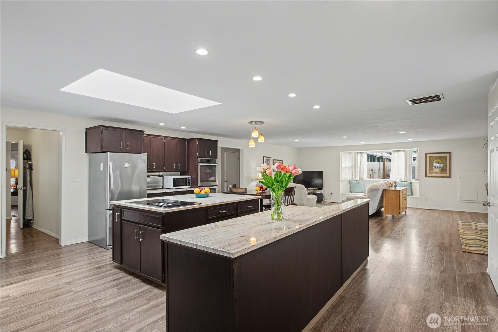 Timeless North Tacoma Rambler. First Time on Market in 34 Years! Expansive 3BR + bonus room (with closet), 1.75BA home offering 2,354 sq ft on a beautifully landscaped, fully fenced lot. Thoughtful updates include kitchen and baths, refinished hardwood floors, and new carpet. Spacious kitchen, with granite countertops, SS appliances, and flexible living area open to a large, covered patio, perfect for year-round entertaining. Lush yard with mature rhododendrons, gardenias, peonies, roses, blueberries, strawberries and more. RV parking, dual driveways, and ample additional parking. Plenty of storage space. Prime North Tacoma location near, 640-acre Point Defiance Park, beaches, Ruston Waterfront, top schools, shopping, and dining, walking distance to Vassault Park. Back door replacement included in listing price. Rare opportunity!