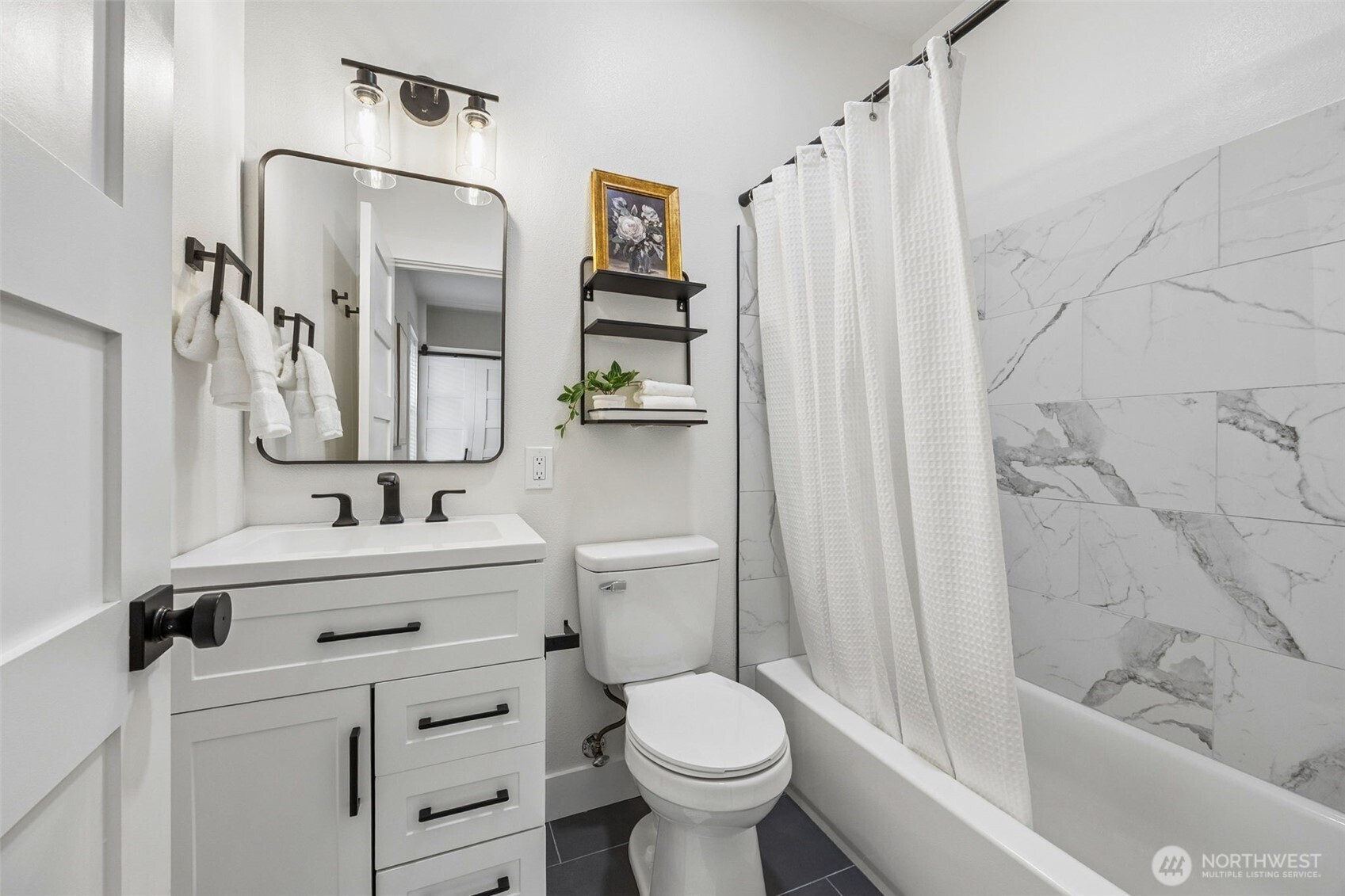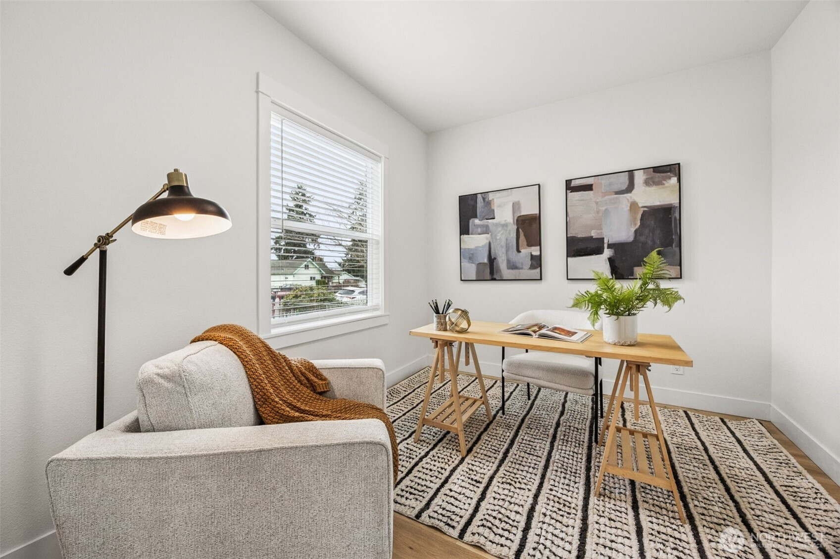 This may be the best TURNKEY home in Tacoma for UNDER $500k! Nestled on a corner lot that’s only minutes away from I-5 North/South & HWY 16, this charming home has been brought back to life w/ modern updates while maintaining its original character. The entry introduces bright, natural lighting coming from the new windows w/ white faux wood blinds paired w/ white oak LVP flooring, classic 5 panel interior doors w/ black matte hardware, fresh interior/exterior paint, the first bedroom is right off the entrance that can be used as a home office/flex space, living room leads to a spacious kitchen w/ soft-close shaker cabinets, Quartz countertops, S/S appliances & a open floor concept, Primary Suite is on the main floor w/ main bathroom across the hall that has been fully updated w/ heated floors, upstairs you will find a spacious, private oasis that can be used as a bonus room or third bedroom, back through the kitchen you will find a utility room w/ a new electric W & D that leads to the backyard, the new 6’ cedar fence brings you privacy & perhaps some running space for your furry friend, along w/ a detached garage w/ newly installed garage door, perfect for extra storage. In addition, the home has a newer roof, Hardie plank siding, new plumbing & has been upgraded to electric energy w/ a new electrical panel, water tank & cadet heaters throughout, centrally located to restaurants, shopping & so much more. Come see today & jump on this opportunity before the busy spring rush!