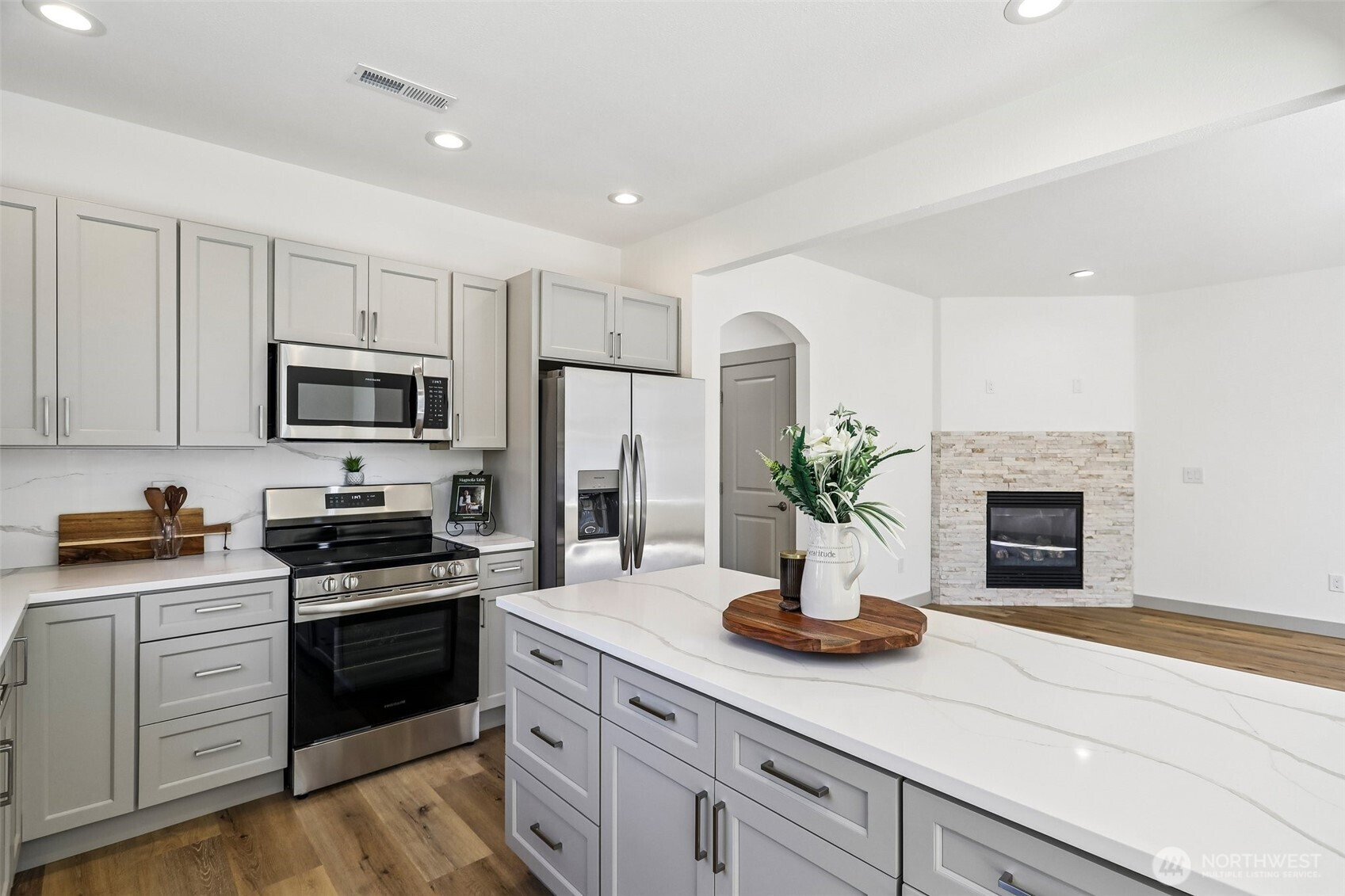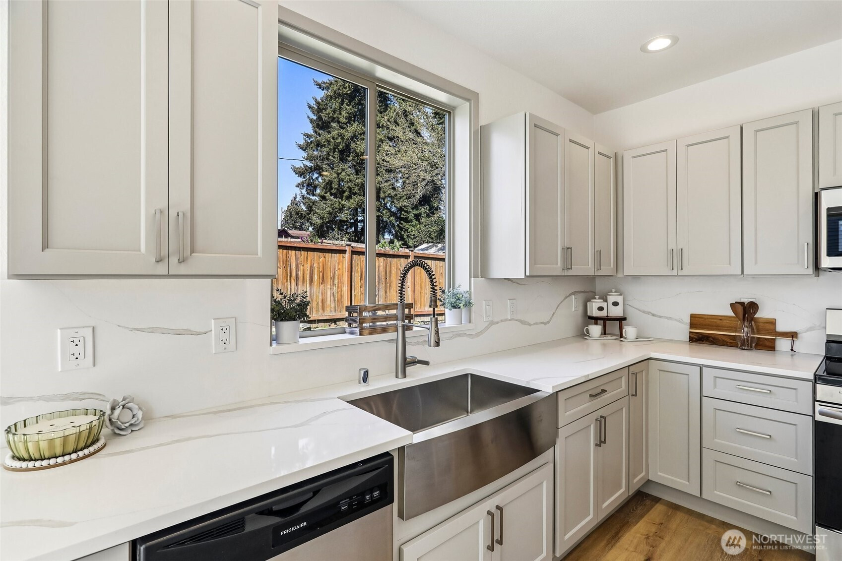 Fully renovated and truly move-in ready, this home offers the perfect blend of modern style, comfort, and flexibility—ideal for both first-time buyers and move-up buyers seeking a turnkey option. Thoughtfully updated throughout, it features 4 bedrooms plus a dedicated office, providing space that adapts to today’s lifestyle needs. Inside, enjoy brand new LVP flooring, fresh interior and exterior paint, updated trim and doors, and a beautifully redesigned kitchen with quartz countertops, new cabinetry, and modern lighting. Sun-filled living spaces create an inviting, open feel that makes the home live larger than expected. Every detail has been carefully upgraded to deliver a like-new construction experience without the wait or cost. The primary bedroom offers peek-a-boo views of Mt. Rainier and the Port of Tacoma, adding a special touch to your everyday routine. Outside, a newly fenced driveway adds privacy and curb appeal, completing the package. Conveniently located near schools, shopping, and more, this home combines comfort, style, and accessibility. A rare opportunity to own a fully refreshed home that feels brand new—stylish, functional, and ready for immediate enjoyment.