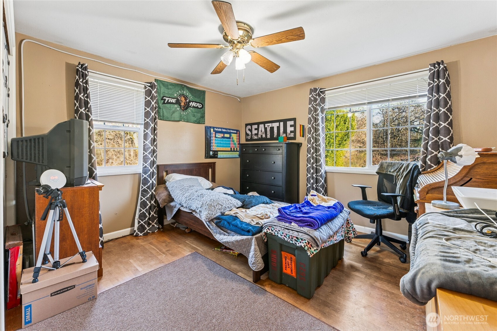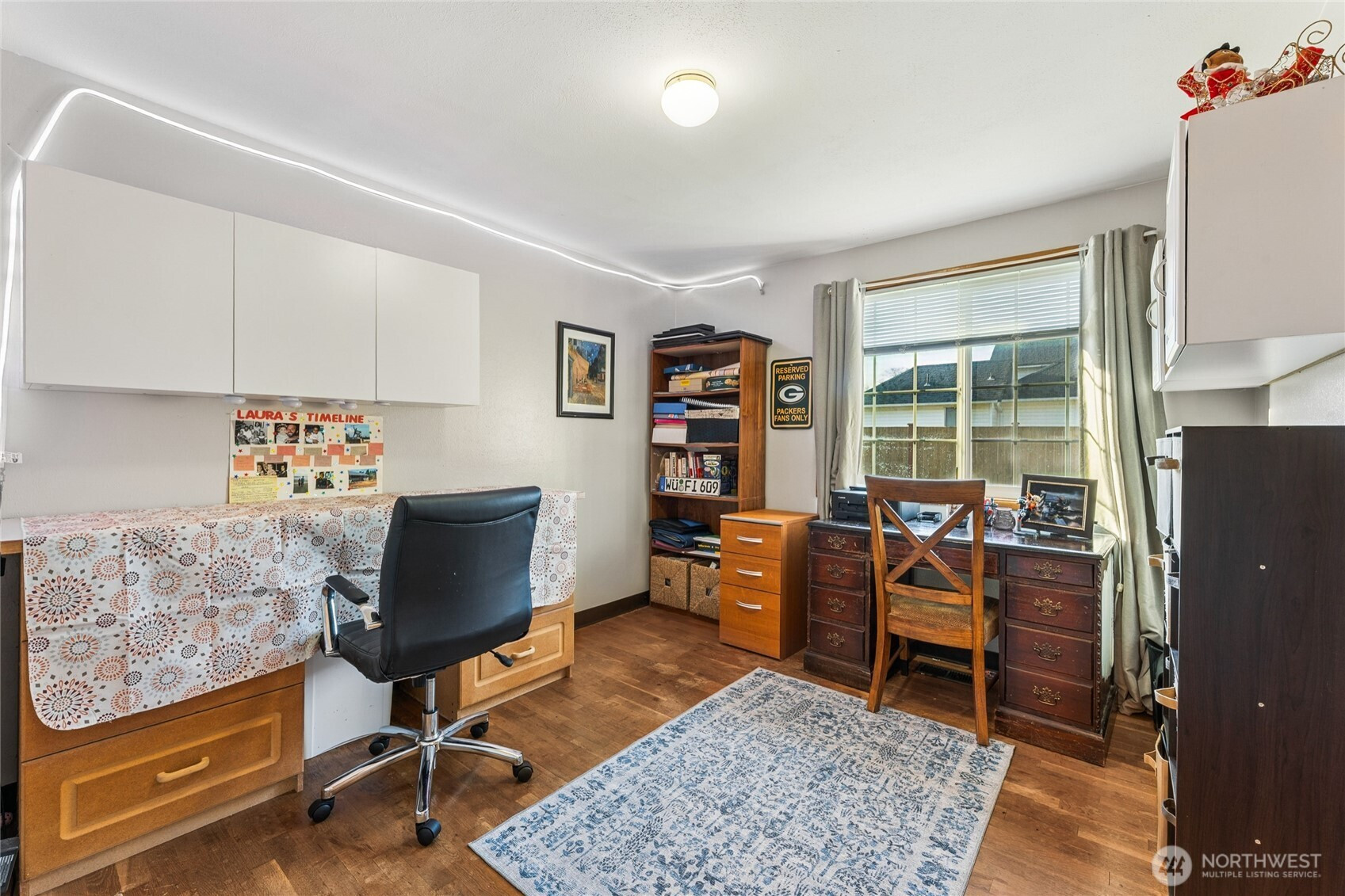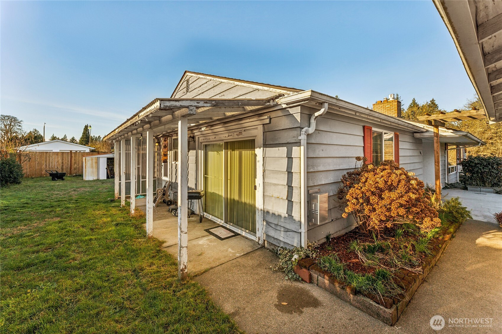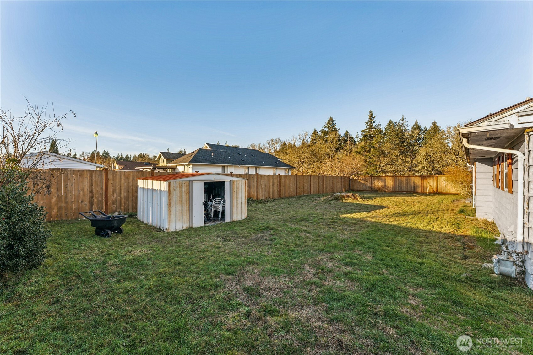 Charming one-story 4BR, 1.5BA home on a generous 1/3-acre lot in the heart of historic DuPont, directly across from the greenbelt! Enjoy peaceful greenbelt views from most windows and a light-filled interior with an oversized picture window, cozy gas fireplace in the living room, and built-in shelving in the dining area. The spacious layout offers comfortable living with defined living and dining spaces, a functional kitchen, and dedicated laundry area. Step outside to a covered patio and fully fenced yard with room to garden, play, or entertain. Detached 2-car garage plus RV parking and plenty of off-street parking. No CC&Rs! All appliances included. Located just minutes to I-5 & JBLM and surrounded by parks, miles of scenic trails, and open green space. Nestled in historic DuPont, known for its small-town charm, walkable streets, and rich character. A wonderful canvas to personalize and make your own!
