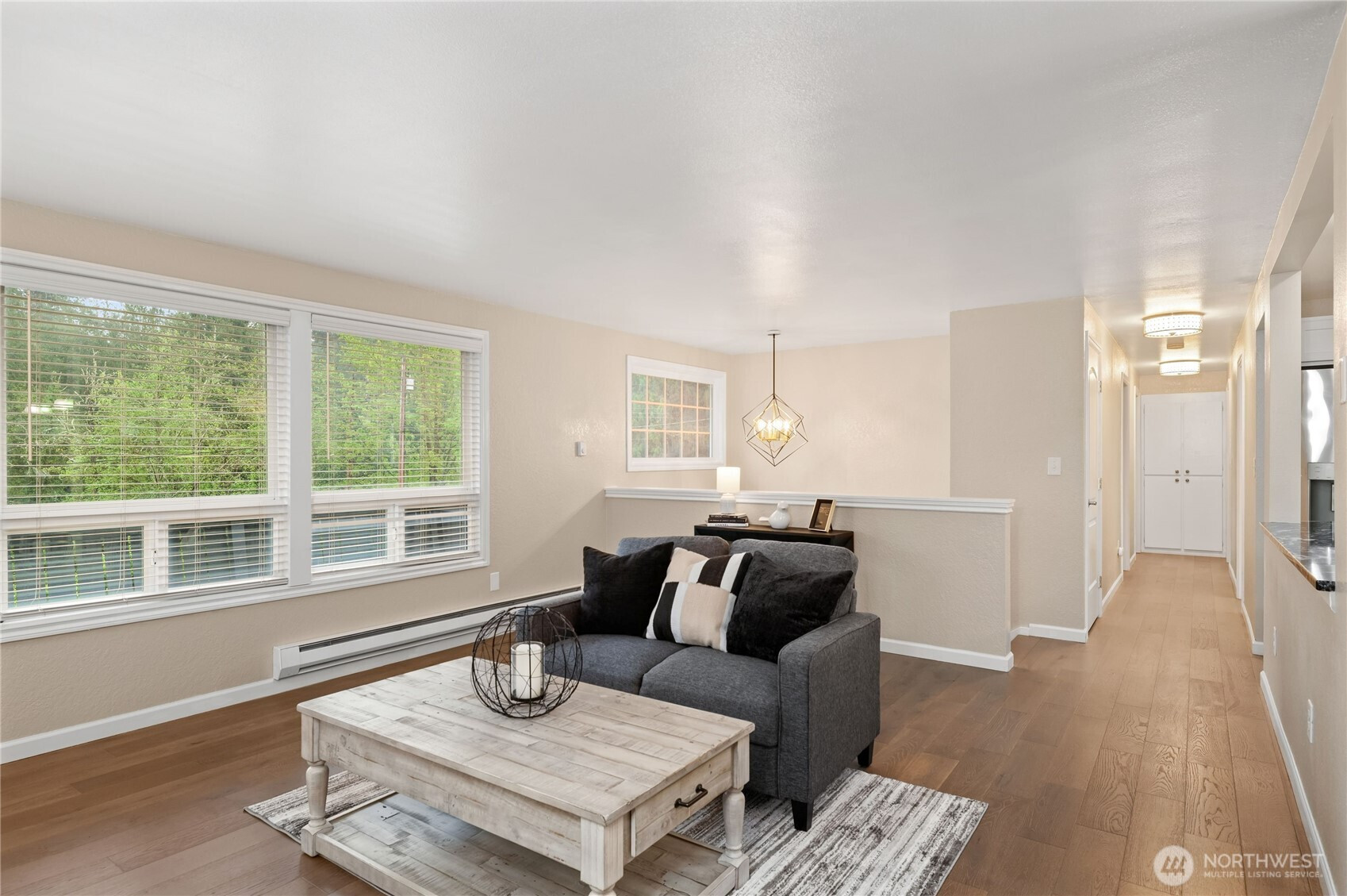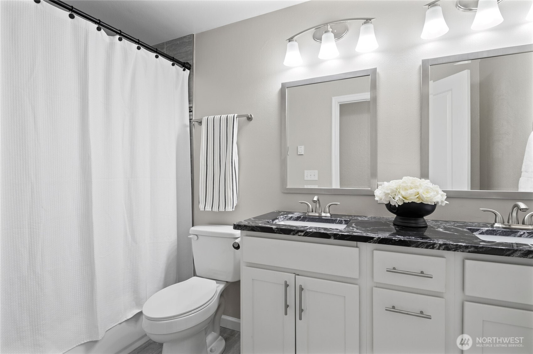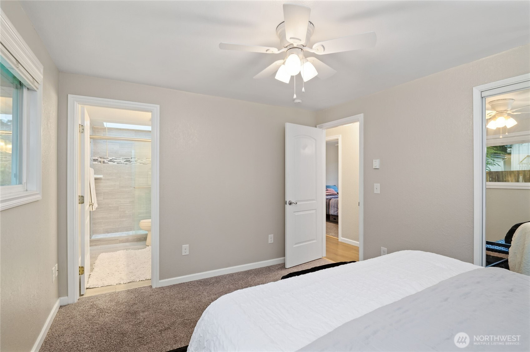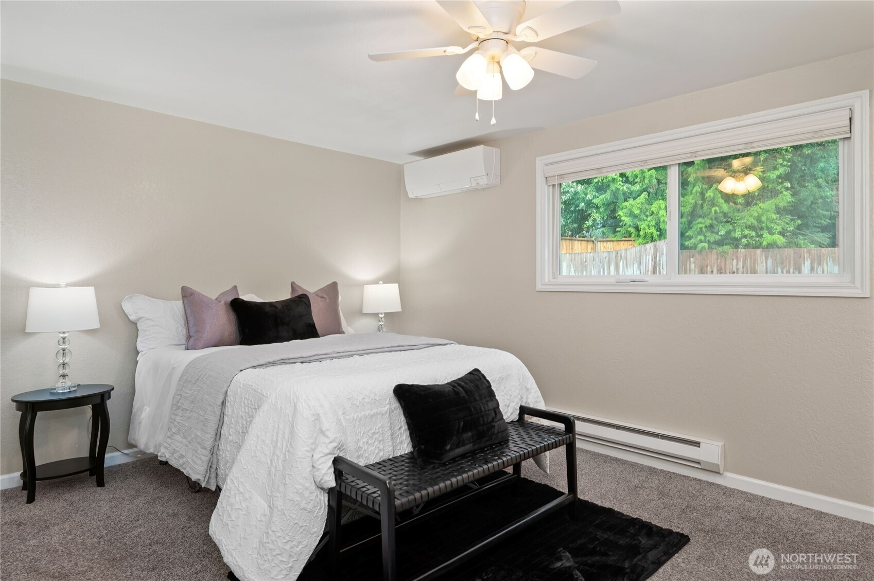 Modern split entry 3-bedroom, 3 full bath home is truly one of a kind located in desirable city of Edgewood. This home offers 1,950 square feet of living space and sits on a fenced lot larger than a quarter acre, providing ample room for gardening. The upper level boasts a stunningly renovated open-concept kitchen equipped with stainless steel appliances and striking granite countertops. This kitchen seamlessly connects both the living and dining areas. French doors in the kitchen lead out to an expansive wraparound deck, perfect for hosting barbeques and entertaining friends. The primary bedroom includes a private ensuite bathroom with a granite double vanity. The downstairs features a large family room, bonus room/den, laundry and a full bath. Upgrades include garage flooring, primary bath skylight, 30-year roof (’20) water heater and mini splits upstairs and down. This property's location offers convenient access to schools, Edgewood's shopping amenities, and is ideally situated near major highways I-5 and 167.