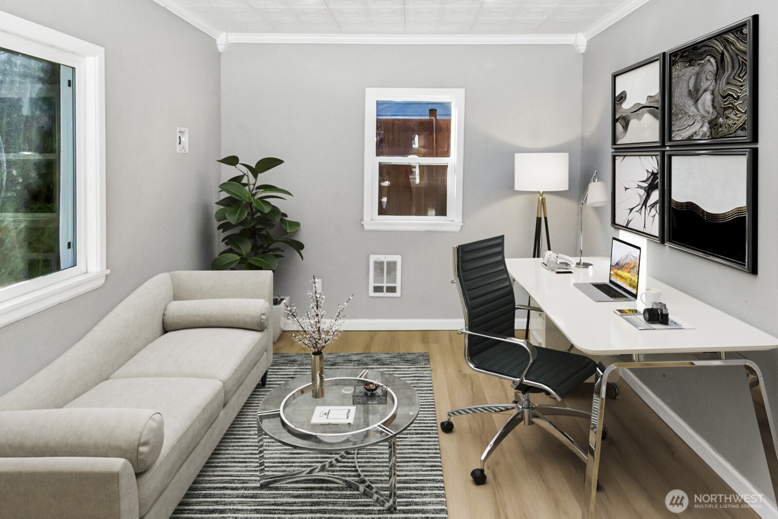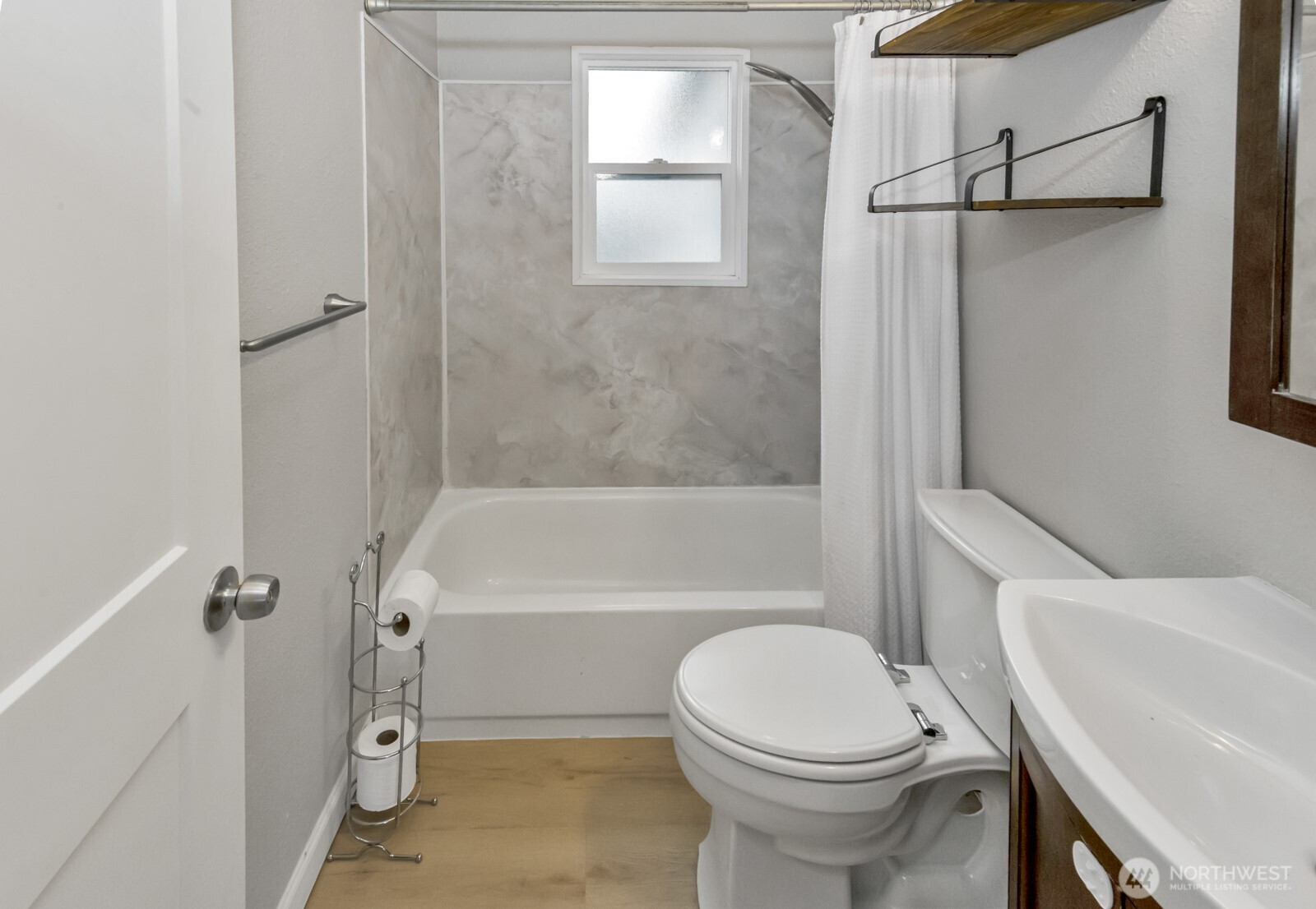 Recently remodeled 1BR Craftsman with potential for expansion! Tons of updates within the last few years such as portico, house and garage roofs, updated wiring with electrical panel, and energy-efficient vinyl windows. Kitchen features newer cabinetry, quartz counters, and stainless sink. Stainless steel kitchen appliances and W/D included. Interior upgrades include newer paint inside and out and brand new vinyl plank flooring throughout. Fully fenced yard with mature trees offers great space for outdoor enjoyment. Detached oversized 1-car garage provides ample room for shop or storage. Convenient location with quick access to parks, shopping, and freeways. This beautifully updated home is move-in ready—come see all it has to offer.