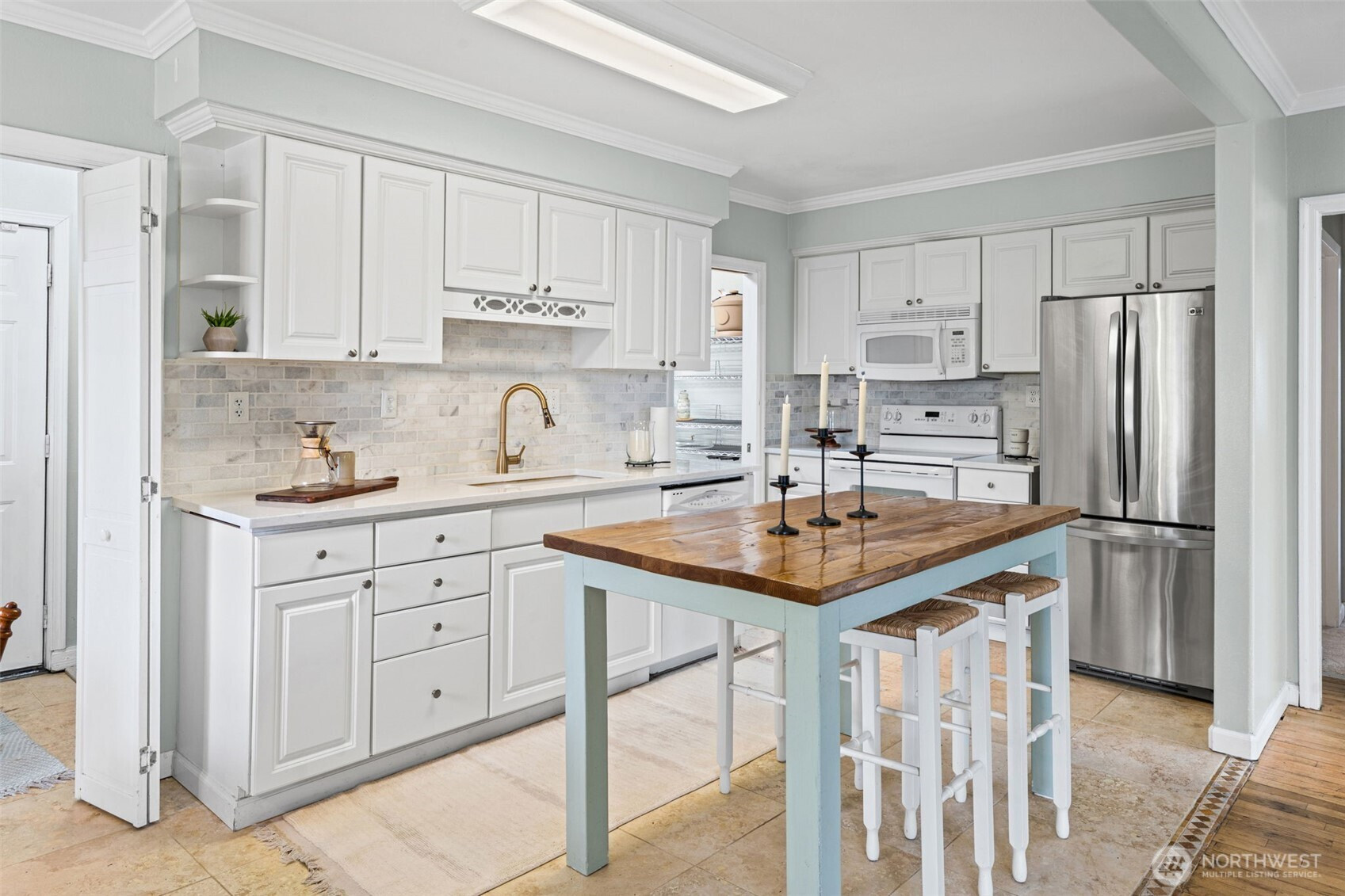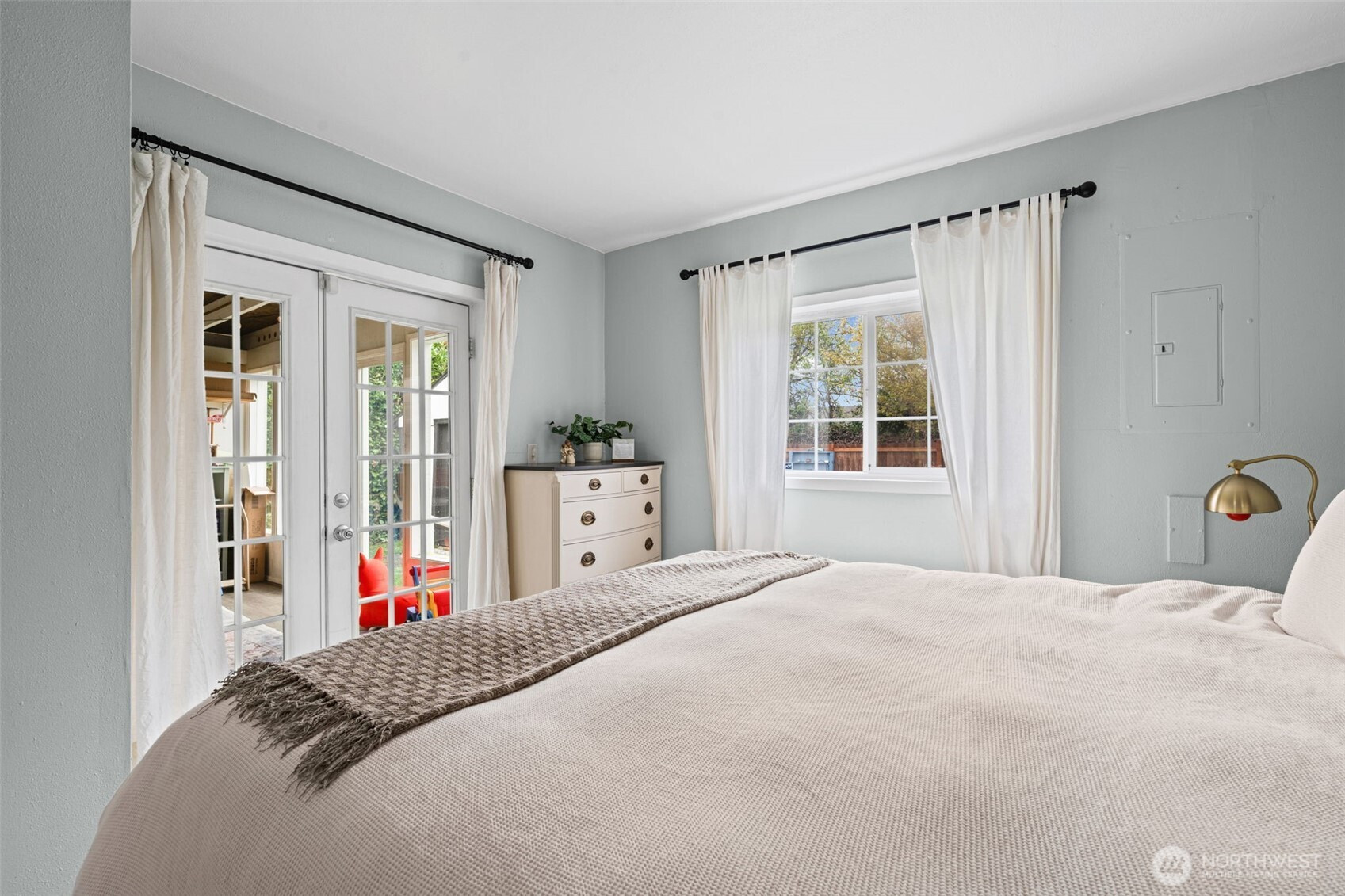 Charming North Tacoma home that perfectly blends timeless character with thoughtful updates. This 2-bedroom, 2-bath residence showcases classic details throughout, including original hardwoods, crown moulding and a stunning claw foot tub. The updated kitchen features quartz countertops, updated hardware, and travertine stone floors, while large, updated windows throughout fill the home with beautiful natural light. The extra-large primary bedroom with 3/4 bath offers a peaceful retreat, complete with French doors that open to a bright sunroom—an ideal flex space not included in the home’s square footage. Step outside to enjoy a spacious, fully fenced yard with mature trees, a convenient storage shed with electricity, and plenty of room for gardening or entertaining. Ideally located just around the block from Jefferson Park and within walking distance to Proctor and a variety of local amenities. You won't want to miss this home that has been tastefully updated while preserving its original charm. .