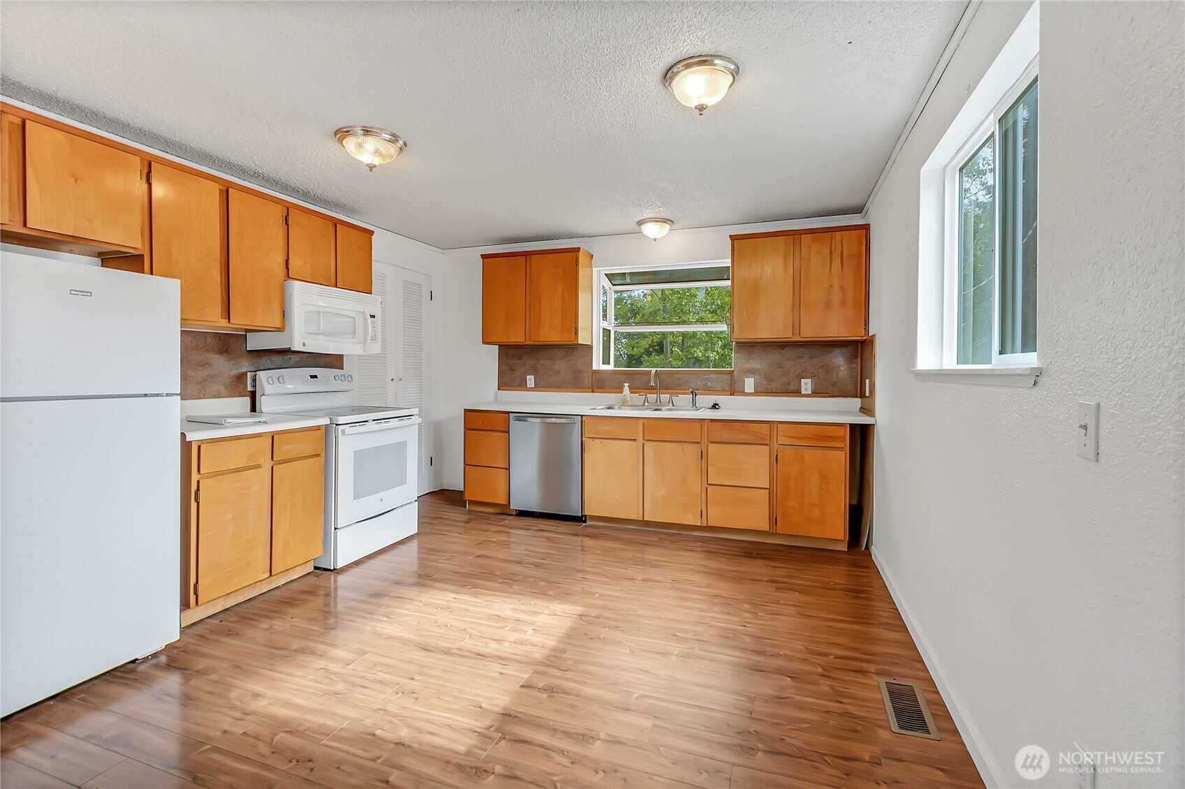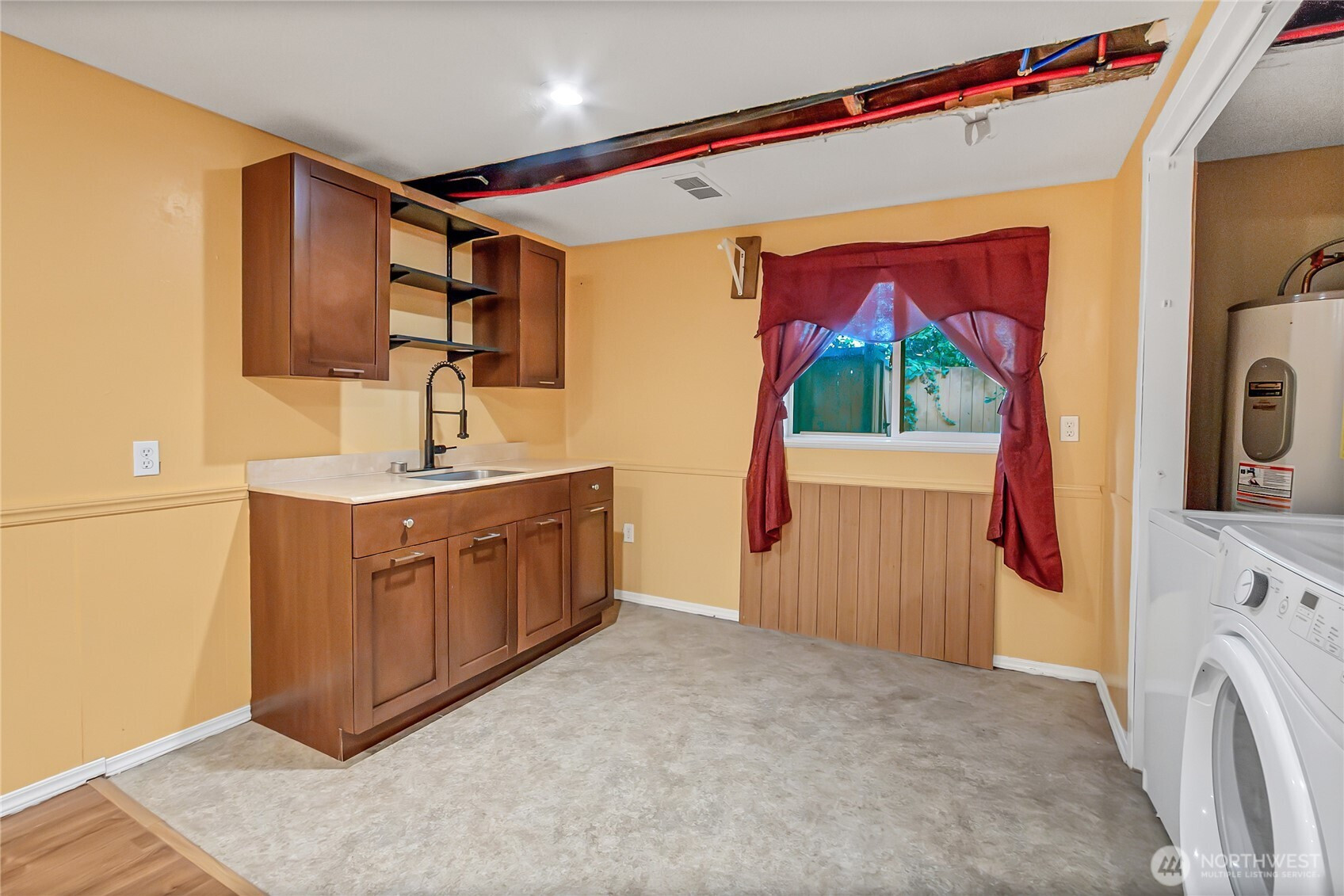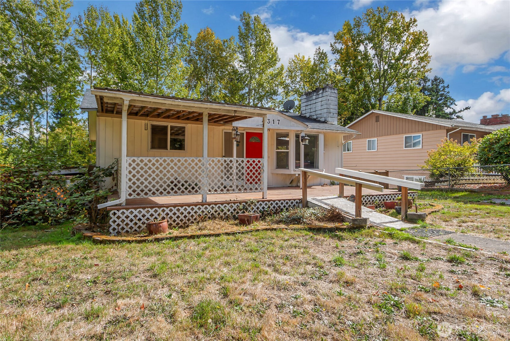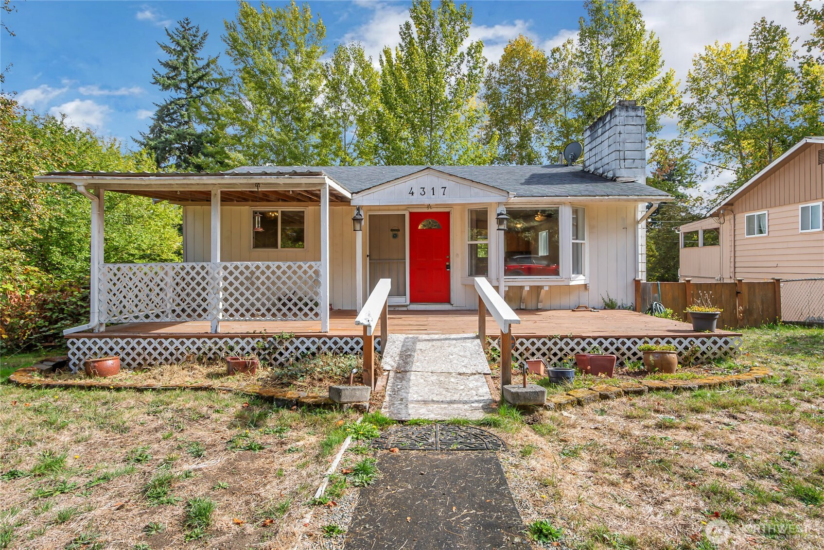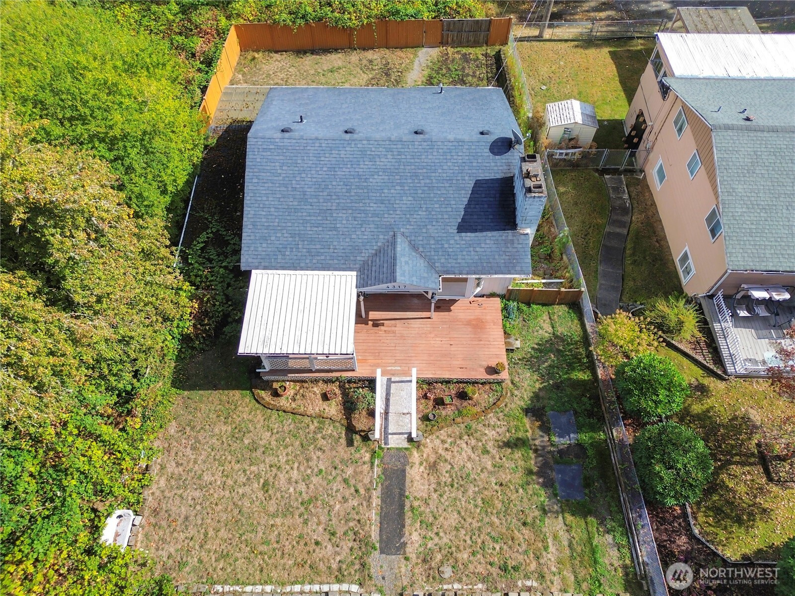WELCOME HOME to this hidden Tacoma retreat, tucked away at the end of a quite dead-end street. A greenbelt to the north adds privacy, while alley access to the east provides options for RV parking or a private basement entry. Expansive covered patios in the backyard create the perfect setting for year-round outdoor living and entertaining. Step inside to a main floor with a living room featuring a bay window and fireplace, plus a spacious kitchen that includes all appliances, nearby primary bedroom and full bathroom. Downstairs, the daylight basement offers a family room, wet bar, 3/4 bath, and two bedrooms-flexible space with future rental potential. Priced to reflect opportunity, this home is ready for its next chapter!