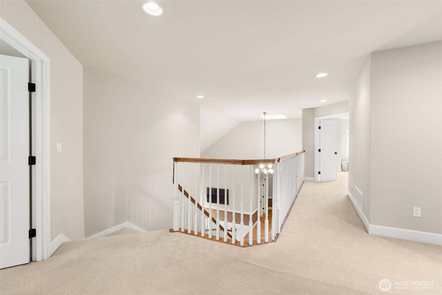 Welcome home! This 5BR, 3.5BA home sits on a corner lot in the lovely Ketcham Knoll neighborhood. Enjoy morning coffee or visit with neighbors on the covered front porch. Vaulted ceilings and hardwood floors welcome you into the grand entry. French Doors lead into the den/office on the main level. Visit with friends around the cozy gas fireplace in the formal living room. Open to the kitchen and featuring a gas fireplace and built-ins, the family room located at the back of the house is the perfect spot to relax. The granite & stainless chef's kitchen includes a gas cooktop, double ovens, breakfast bar island, built-in desk, pantry, and informal eating area. Sneak out the sliding glass door to the covered deck in the fenced backyard. The butler's pantry leads into the formal dining room for easy serving and cleanup. Comfortable guest suite on the main level includes a private bath and walk-in closet. Convenient 1/2 bath on the main level too. On the upper level, double doors lead into the gracious primary suite w/ private bath featuring soaking tub, dual sinks, stand-up shower and large walk-in closet. 3 additional bedrooms and the main full bath upstairs provide plenty of space for everyone. Huge multi-purpose bonus room on the upper level makes a perfect tv room, playroom, home gym, etc. Separate laundry room with sink & storage on main level. 3-Car garage + driveway & EZ street parking. Great UP location near shopping, dining, & more! Shortcut to the Elem School & markets