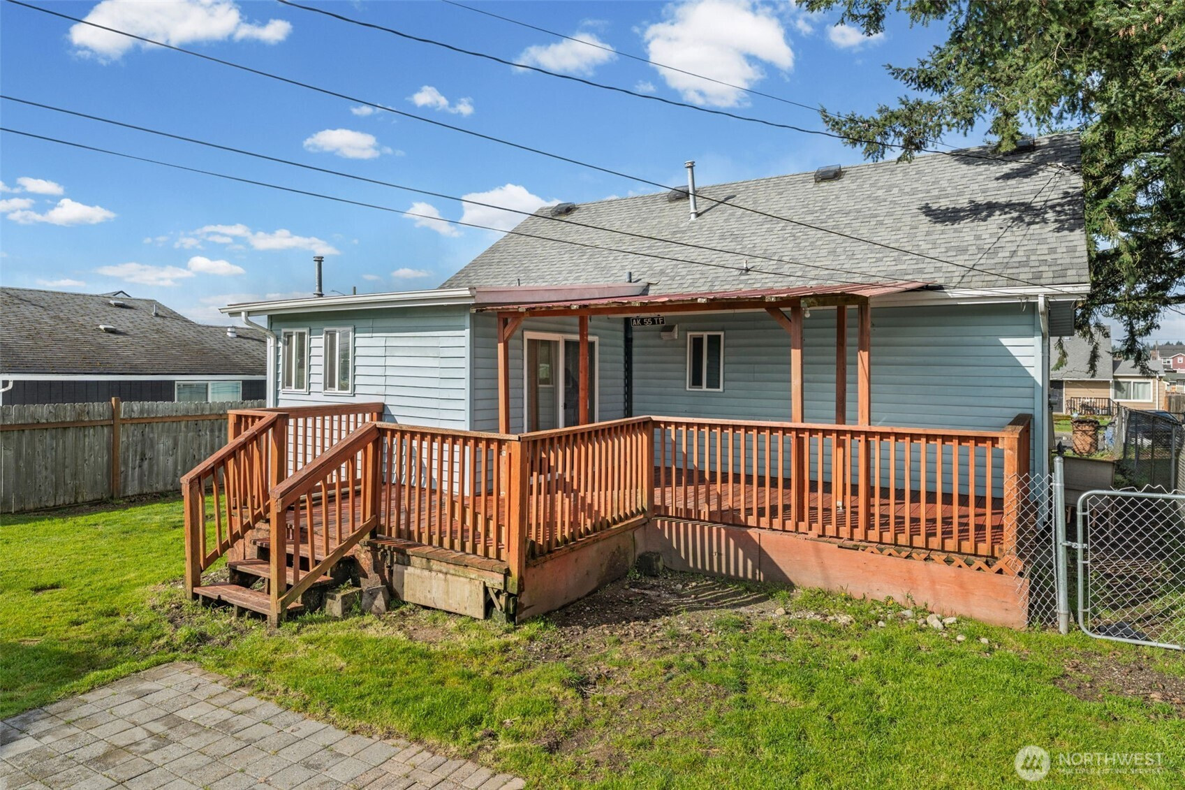 Welcome to this classic Tacoma home, where timeless charm meets modern updates. Step inside to find thoughtful updates throughout, including fresh paint, new carpet and brand new kitchen cabinets and countertops, creating a move-in ready feel. The open concept layout and spacious kitchen allows entertaining to be a breeze, while flowing seamlessly outside to a large covered deck. Enjoy the functionality of a main-floor bedroom or office, with two additional rooms upstairs, making this home completely customizable to your needs. Situated on a spacious 6,650 sq ft flat and fully fenced lot, this property offers both comfort and convenience in a desirable setting. This home being minutes from I5 gives you easy access to shopping, dining, downtown Tacoma and JBLM.