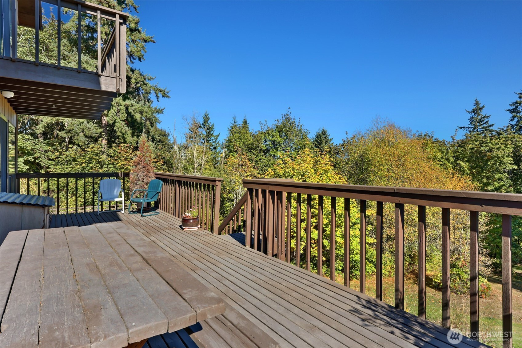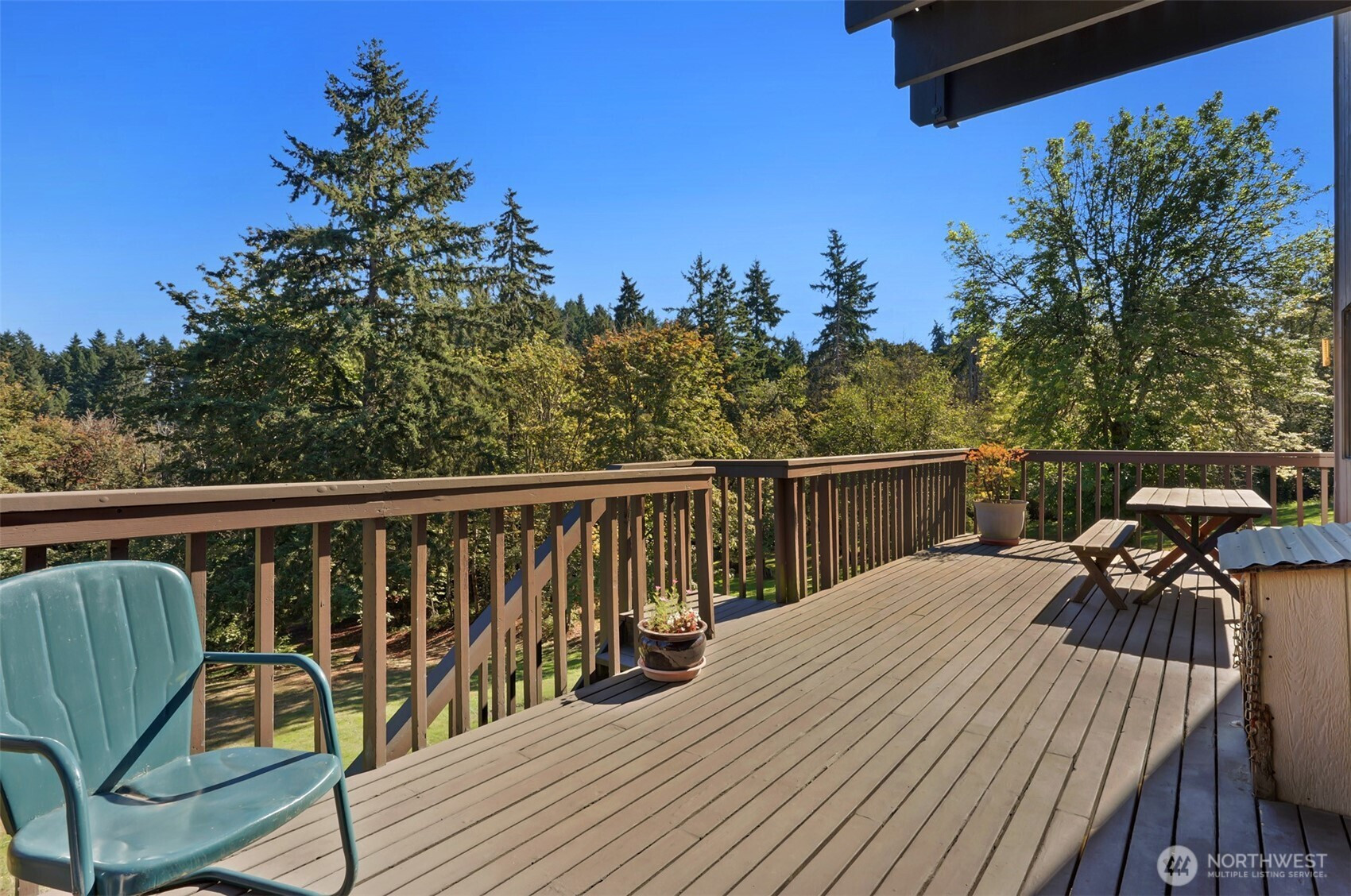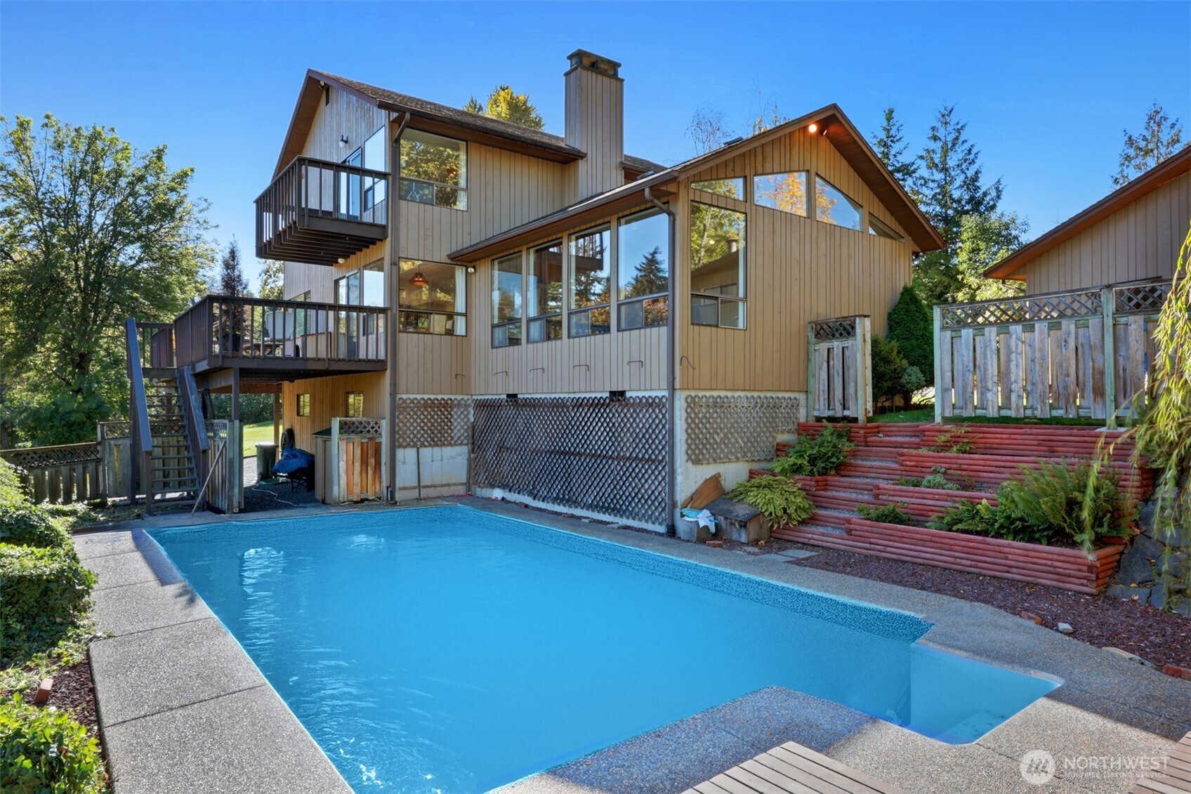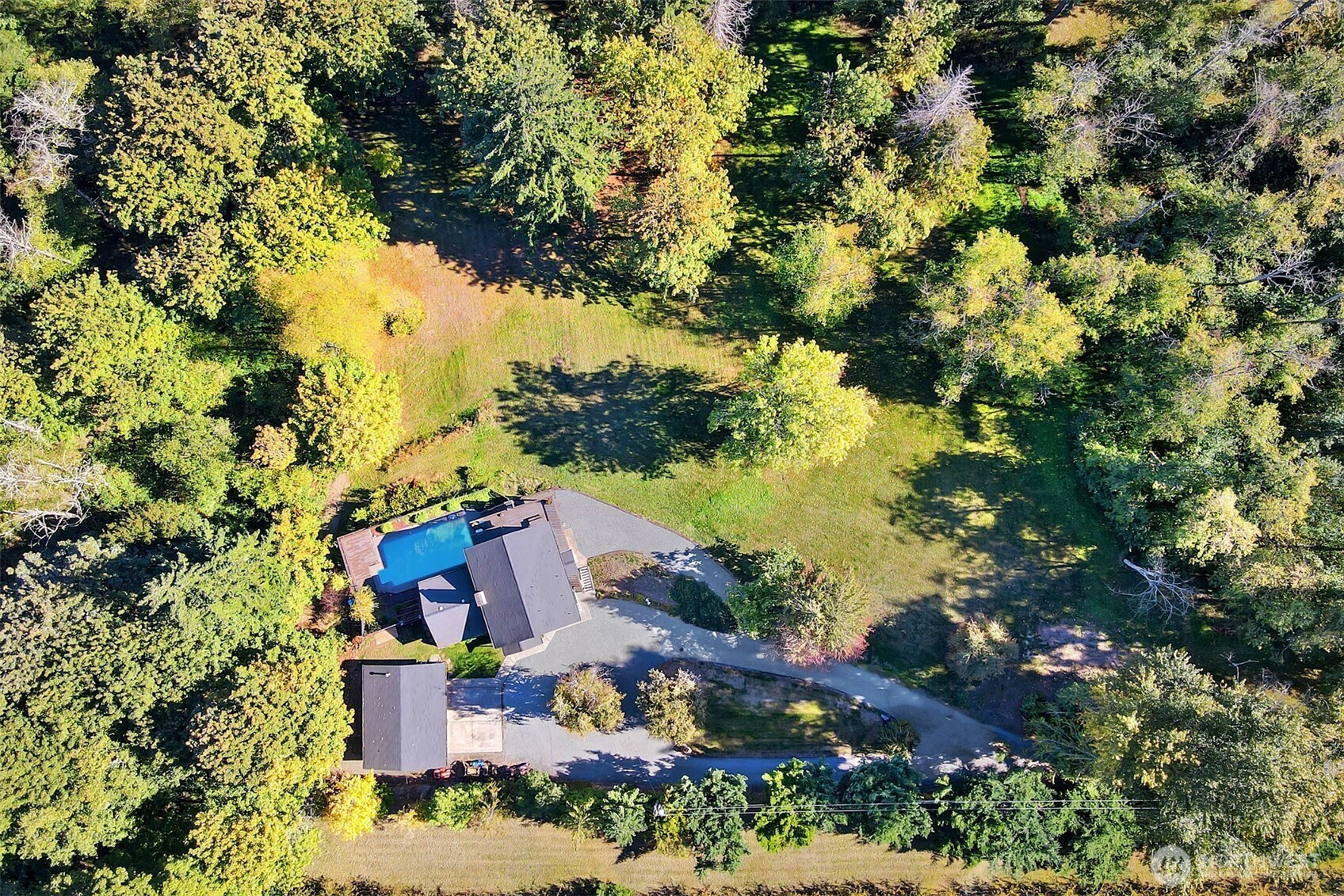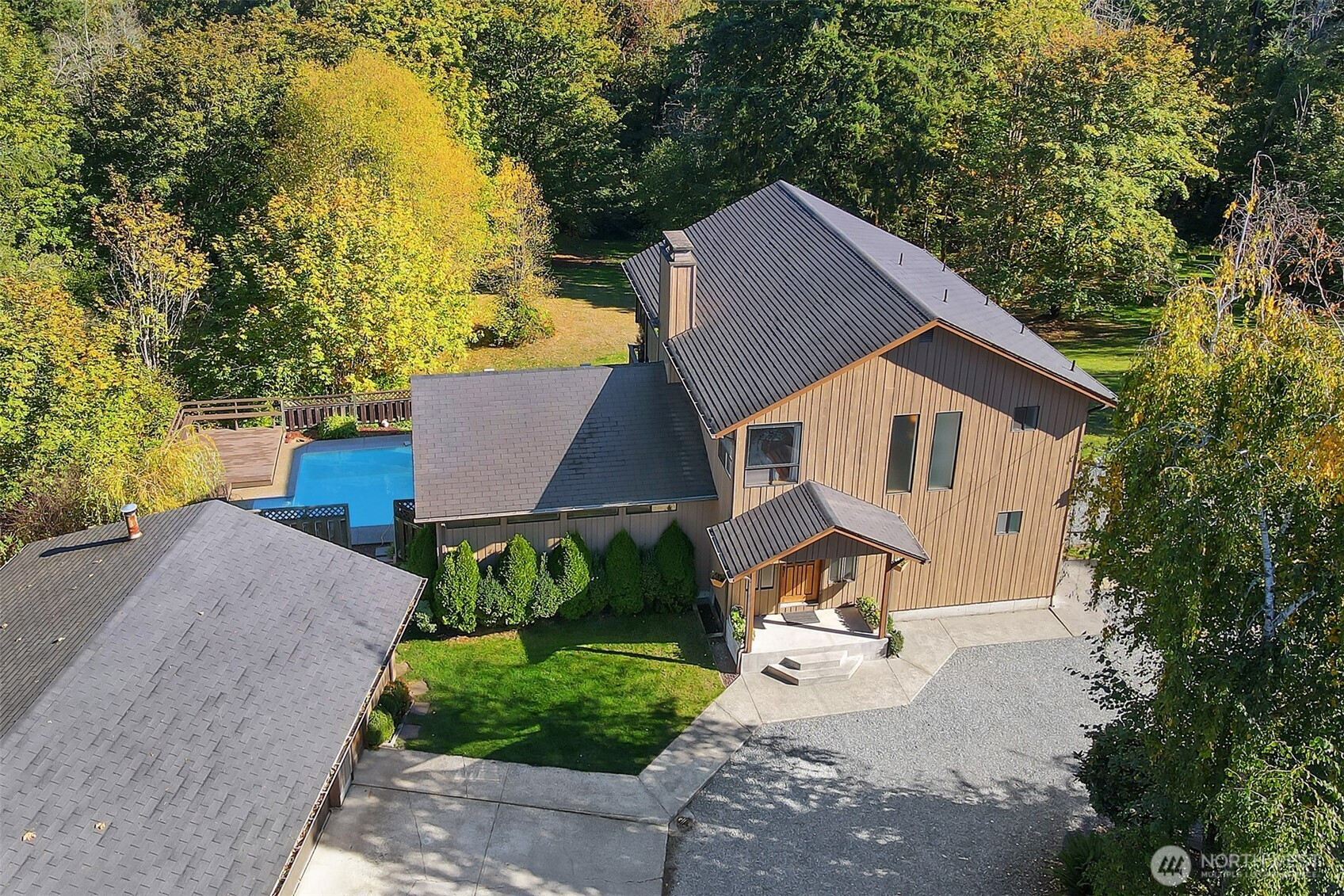 This meticulously cared for custom home was built on 5+ acres of lush landscape, offering privacy & the opportunity to create a dream estate. Natural light spills into the living spaces through large windows along the east side of the home, looking over the seasonally changing trees & valley view. Sliding glass doors lead to a deck just off the dining rm & open concept kitchen w/unique rounded island. Plenty of counter/cabinet space, counter to ceiling windows, large pantry, laundry w/ bthrm on main flr. Upstairs has the spacious primary bdrm w/ a closet, bthrm & deck w/ sunrise views, along w/ a 2nd bdrm & bthrm. 3rd bdrm on lower level. Attached lower garage & detached 2-car garage. Enjoy the pool & pool-deck for those hot summer days!