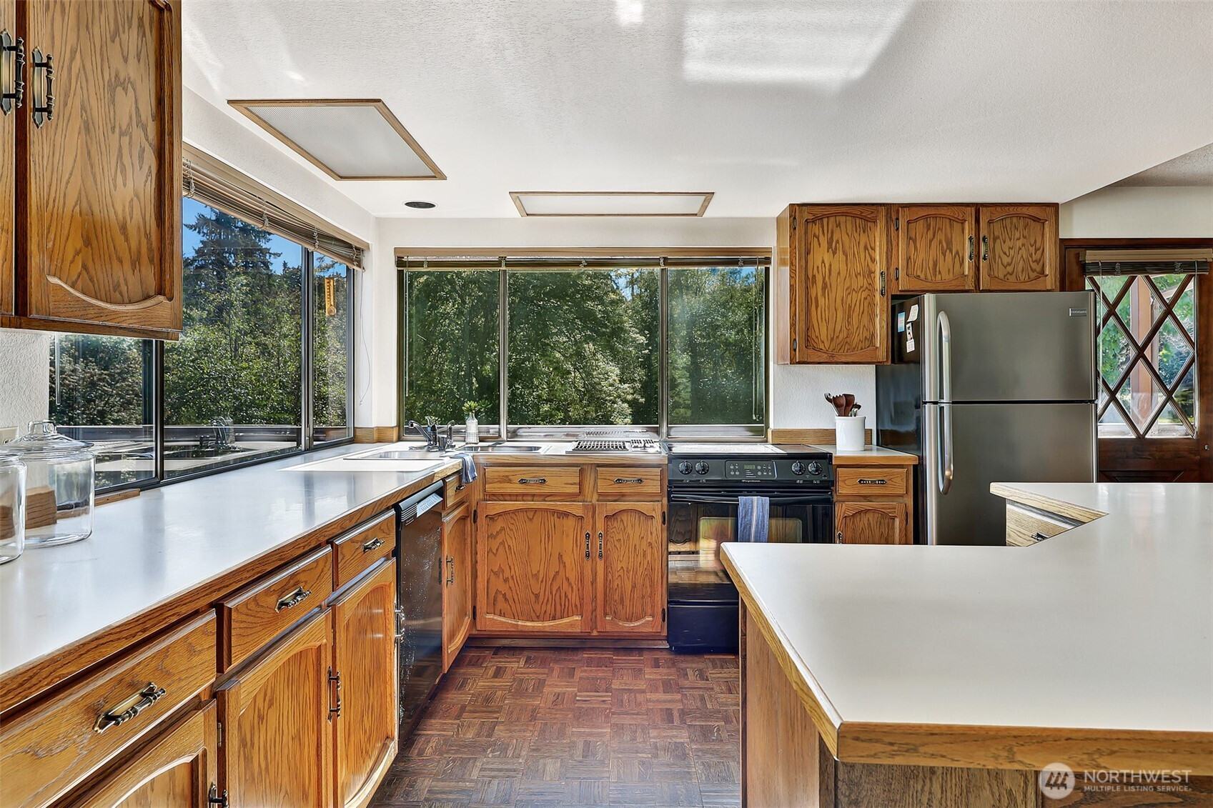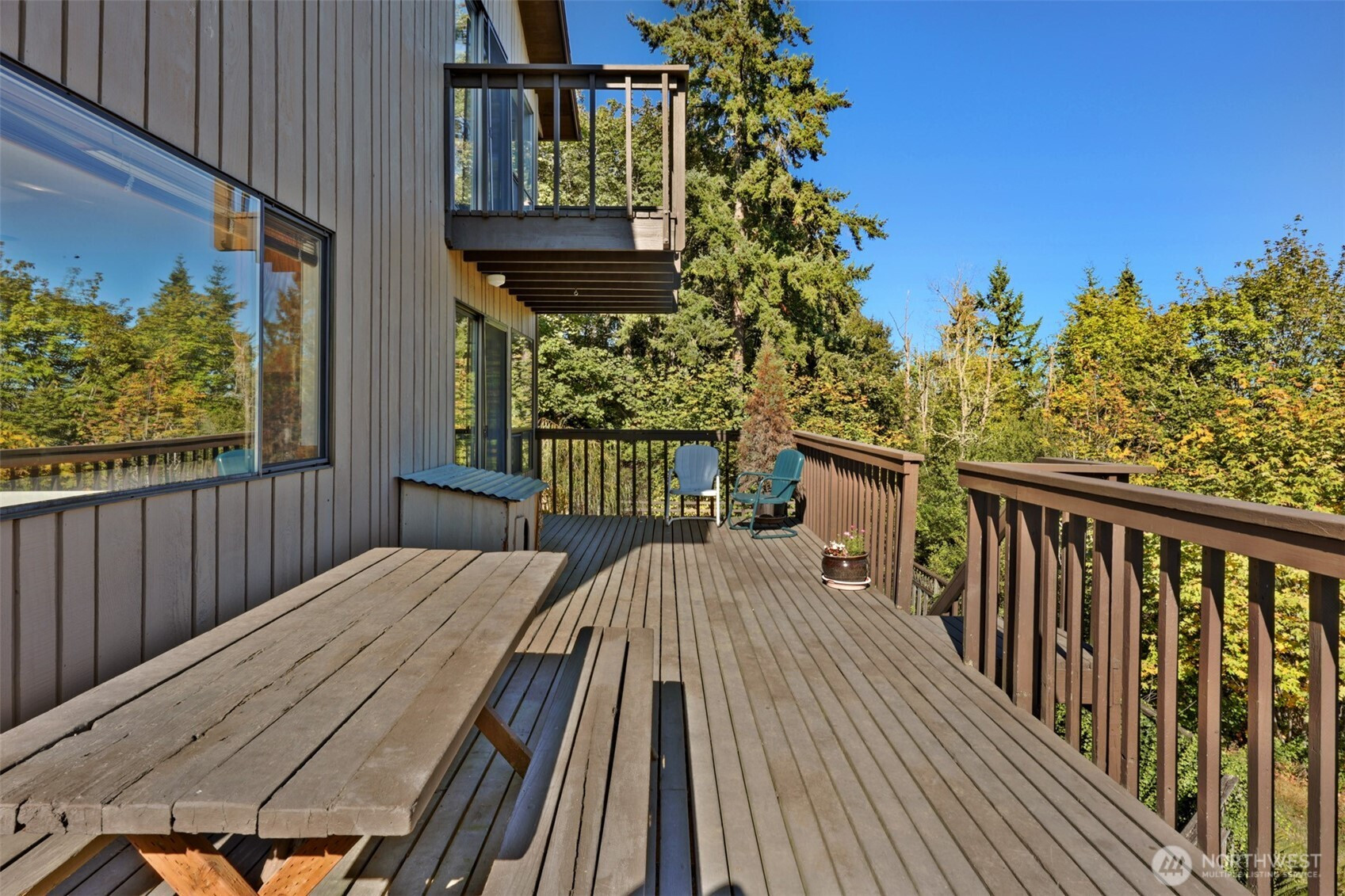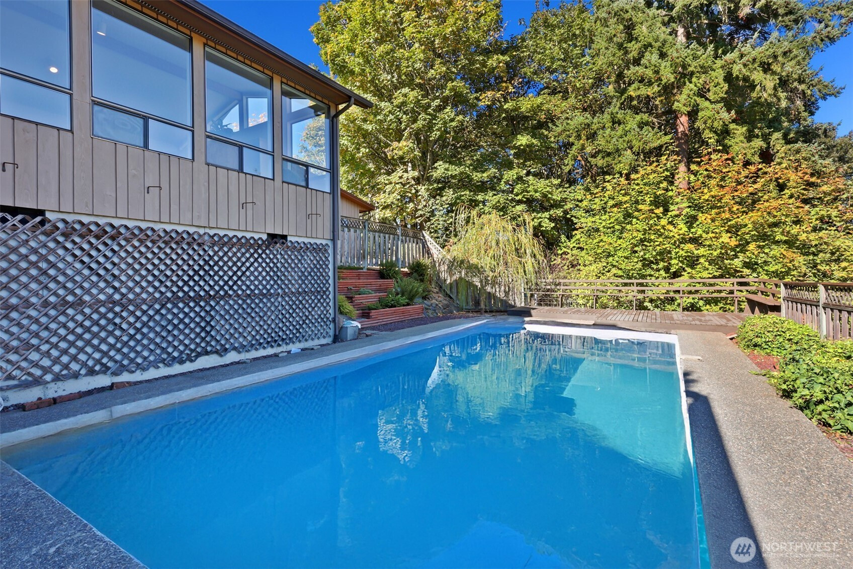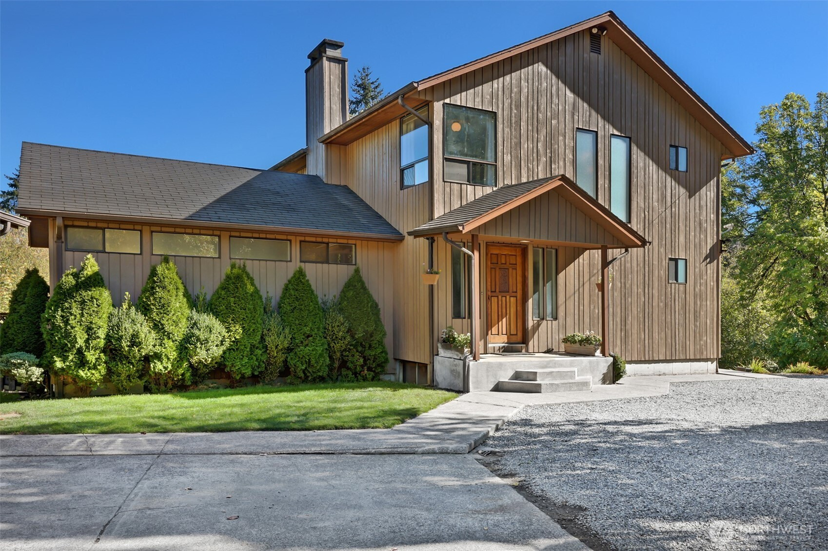 This meticulously cared for custom home was built on 5+ acres of lush landscape, offering privacy & the opportunity to create a dream estate. Natural light spills into the living spaces through large windows along the east side of the home, looking over the seasonally changing trees & valley view. Sliding glass doors lead to a deck just off the dining rm & open concept kitchen w/unique rounded island. Plenty of counter/cabinet space, counter to ceiling windows, large pantry, laundry w/ bthrm on main flr. Upstairs has the spacious primary bdrm w/ a closet, bthrm & deck w/ sunrise views, along w/ a 2nd bdrm & bthrm. 3rd bdrm on lower level. Attached lower garage & detached 2-car garage. Enjoy the pool & pool-deck for those hot summer days!